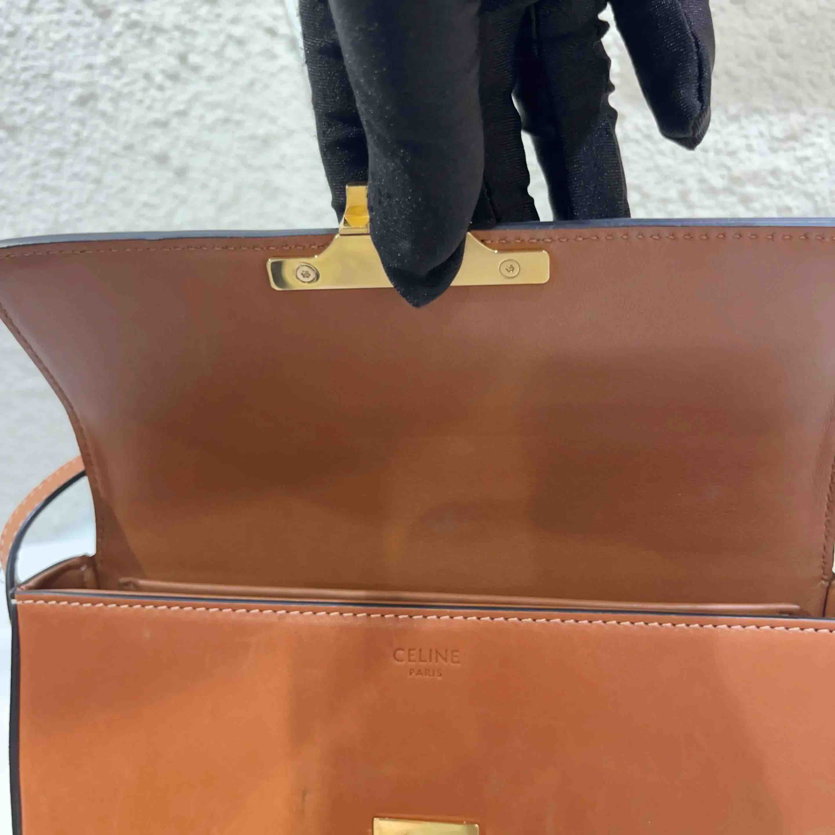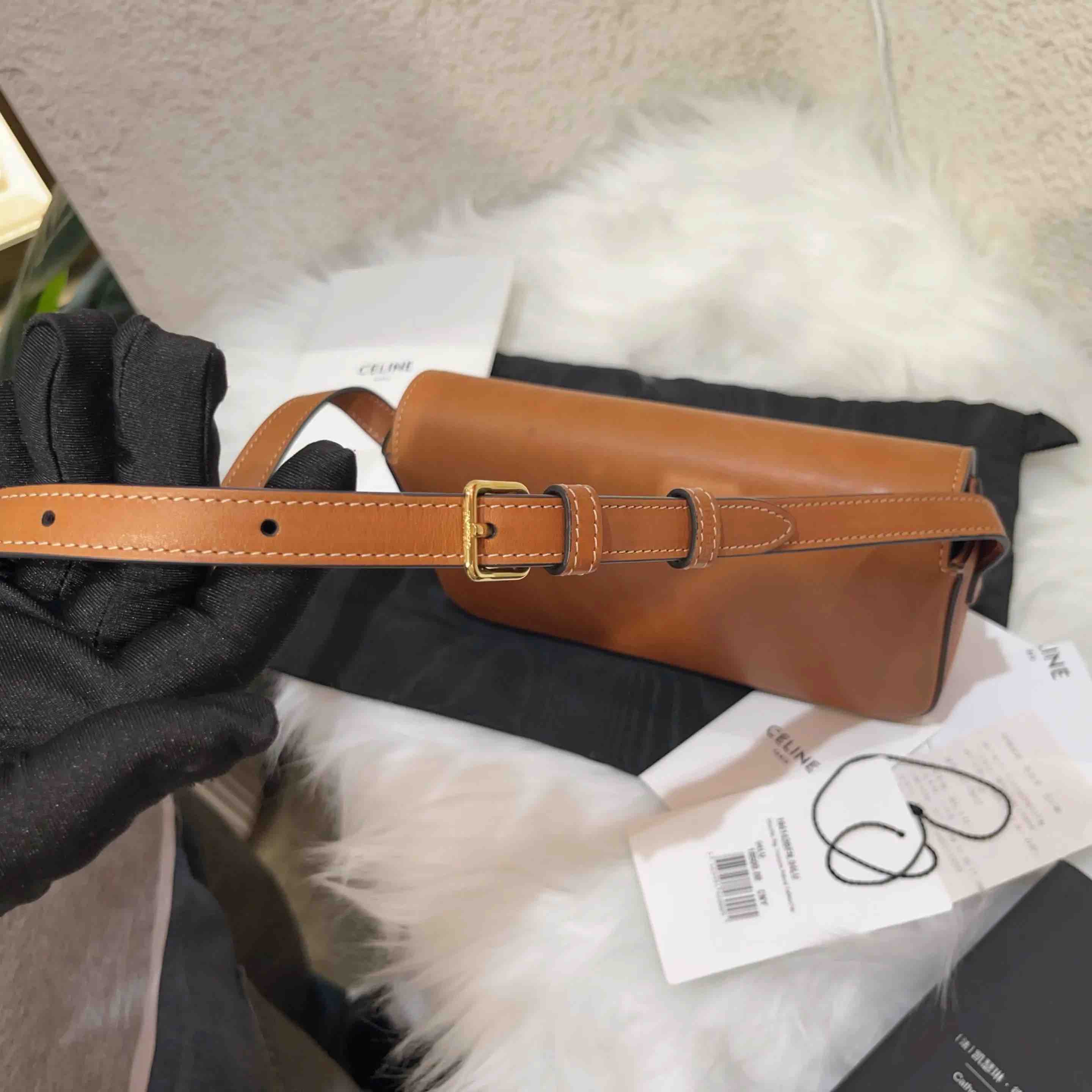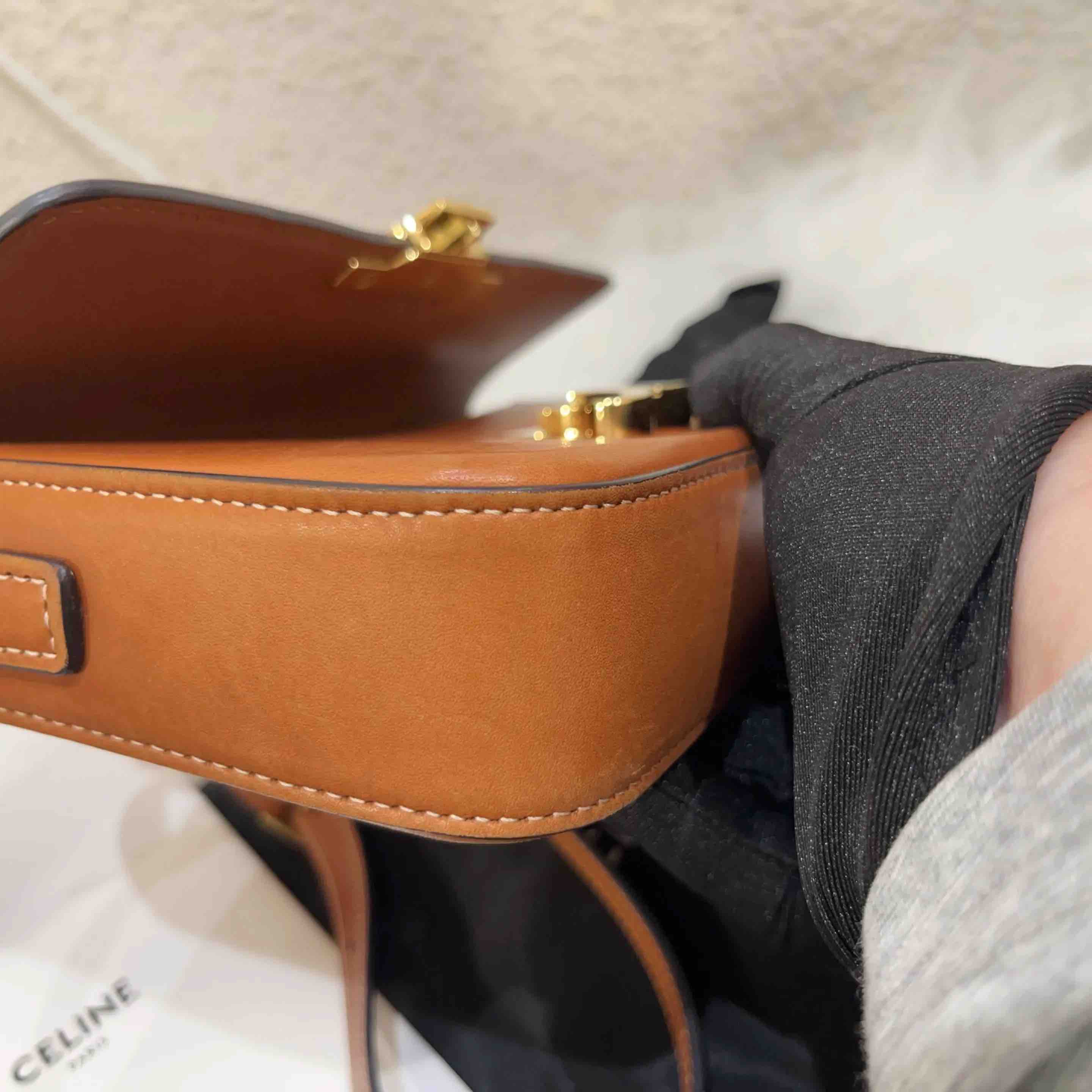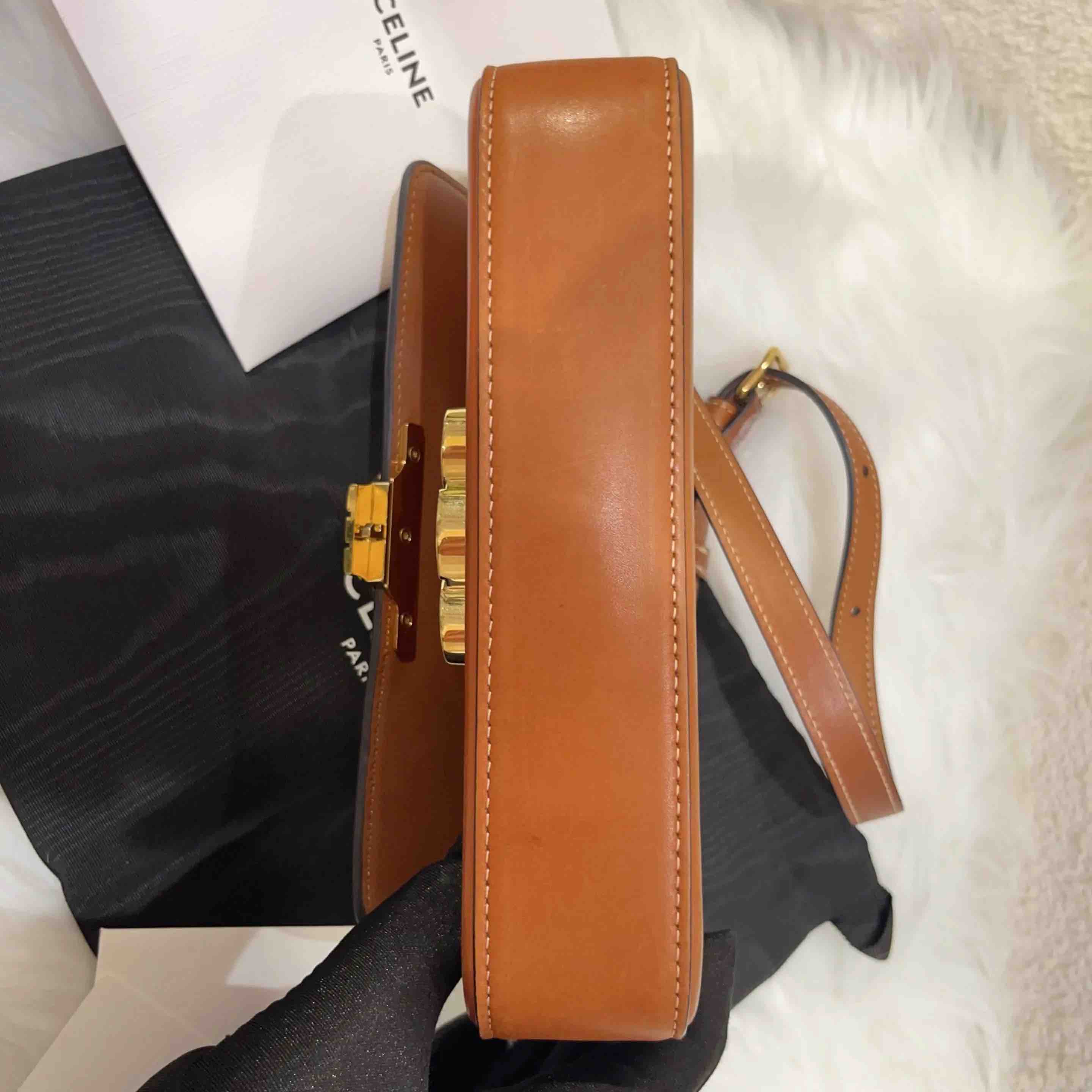 【商品详情】正品二手 Celine 凯旋门 马鞍皮 焦糖色 金扣 斜挎包⚓️ 95新 20*12 配件:吊牌 防尘袋。包身正常使用痕迹。复古精致高级