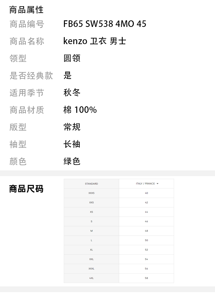 KENZO 高田贤三 连帽 男士卫衣 绿色 FB65 SW538 4MO 45