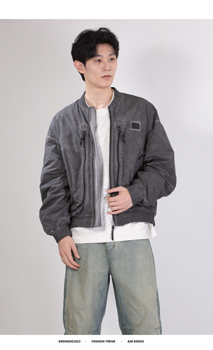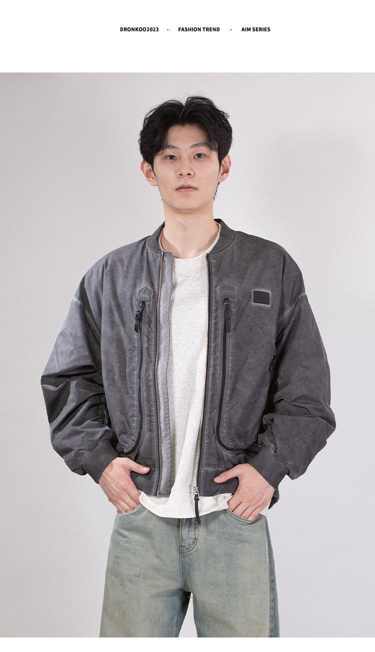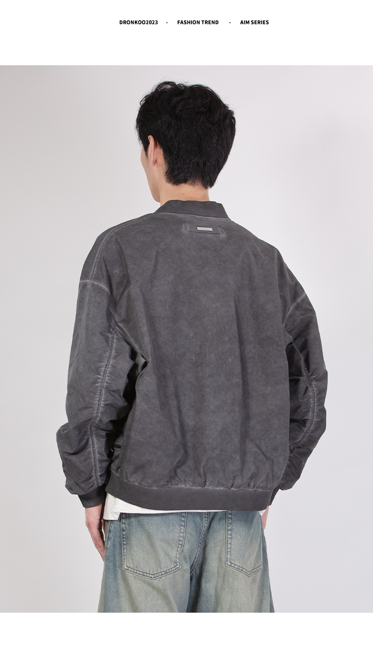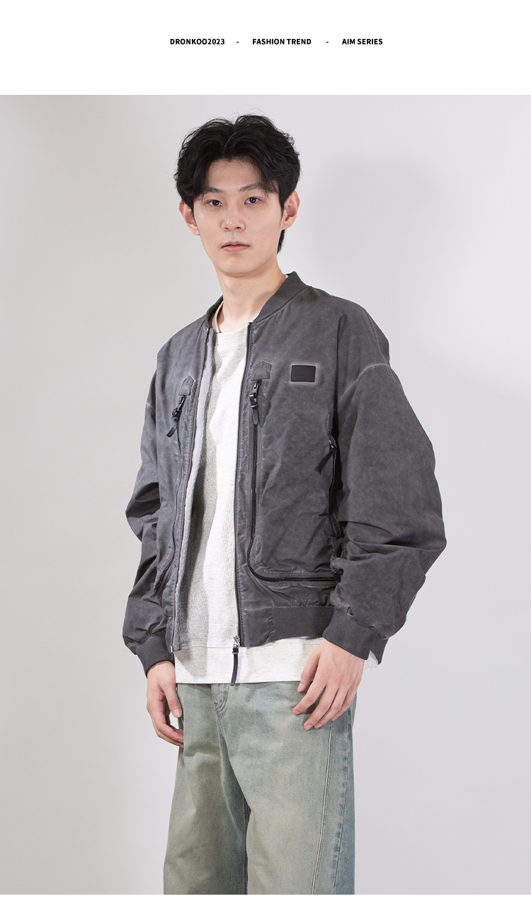 DRONKOO 2025 棒球领左胸标拉链织带洗水微阔中厚夹克