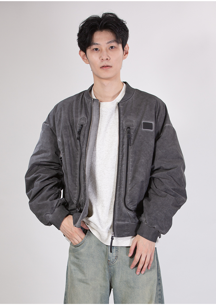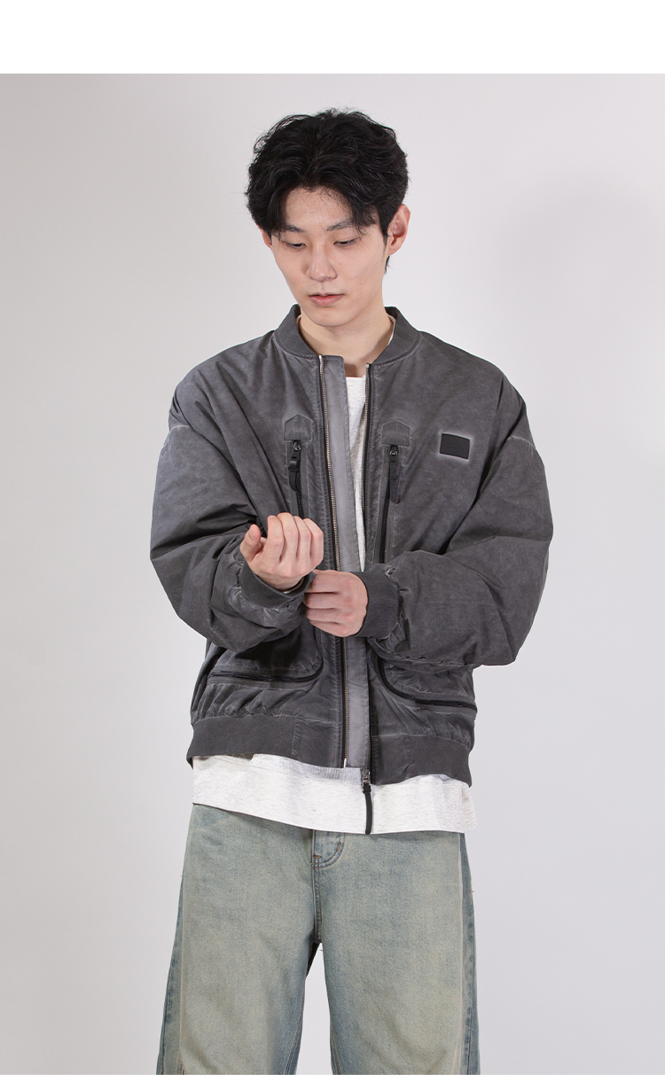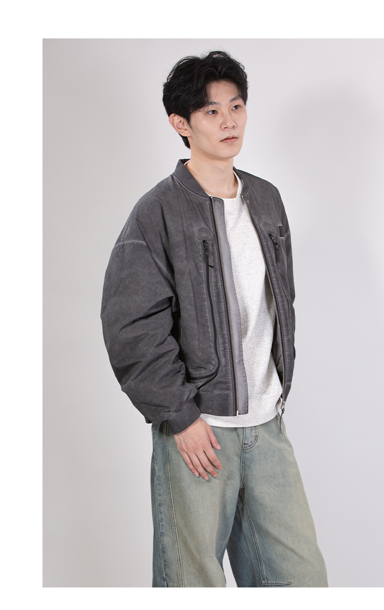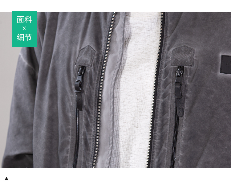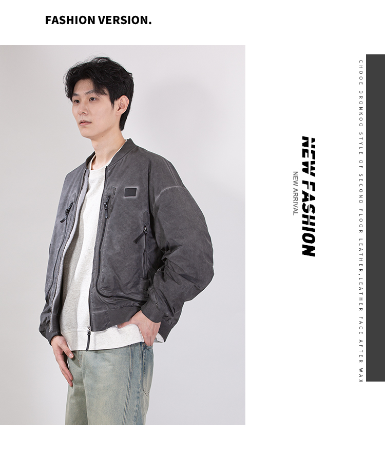 DRONKOO 2025 棒球领左胸标拉链织带洗水微阔中厚夹克