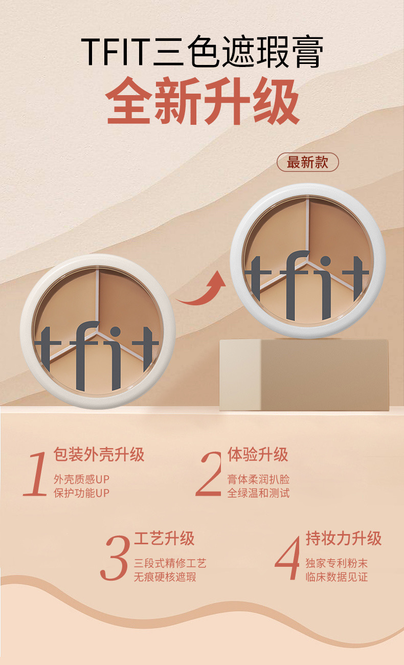 【品牌直发】tfit三色遮瑕膏 全新二代升级 裸肤色+亮肤色+健康色遮盖脸部斑点痘印