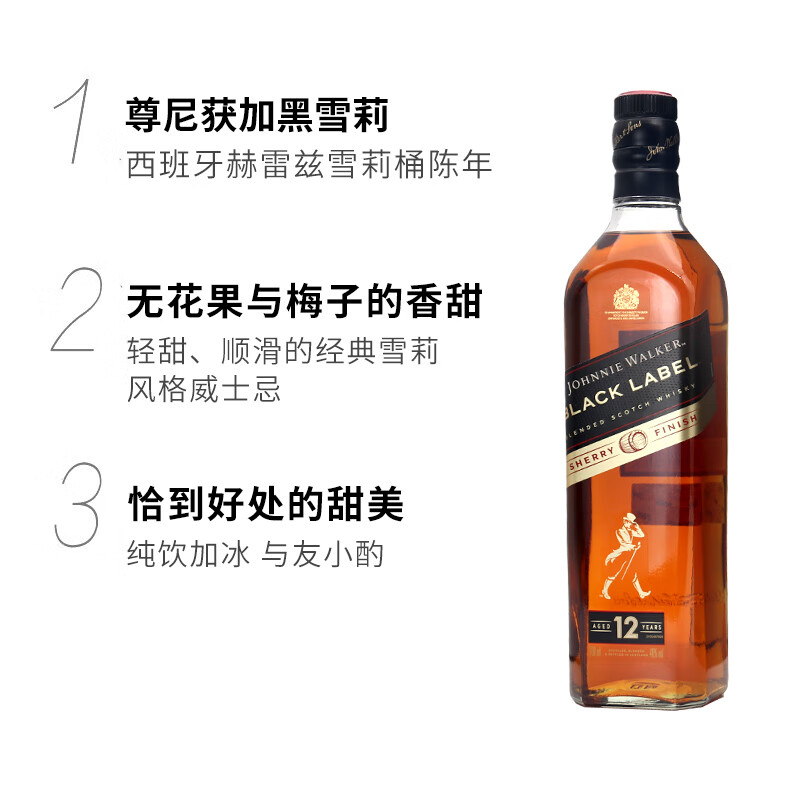 尊尼获加 黑牌雪莉桶12年 威士忌700ml*1瓶