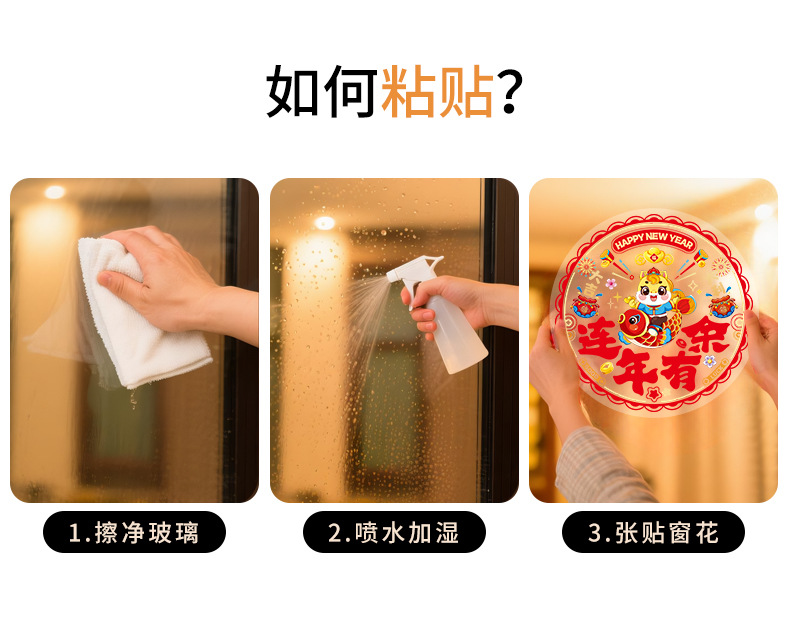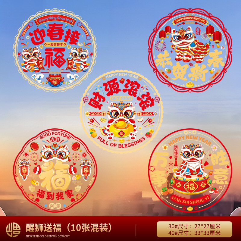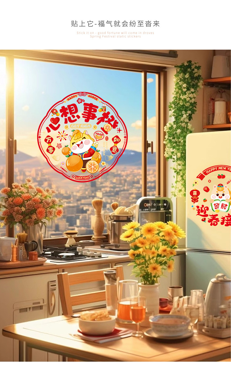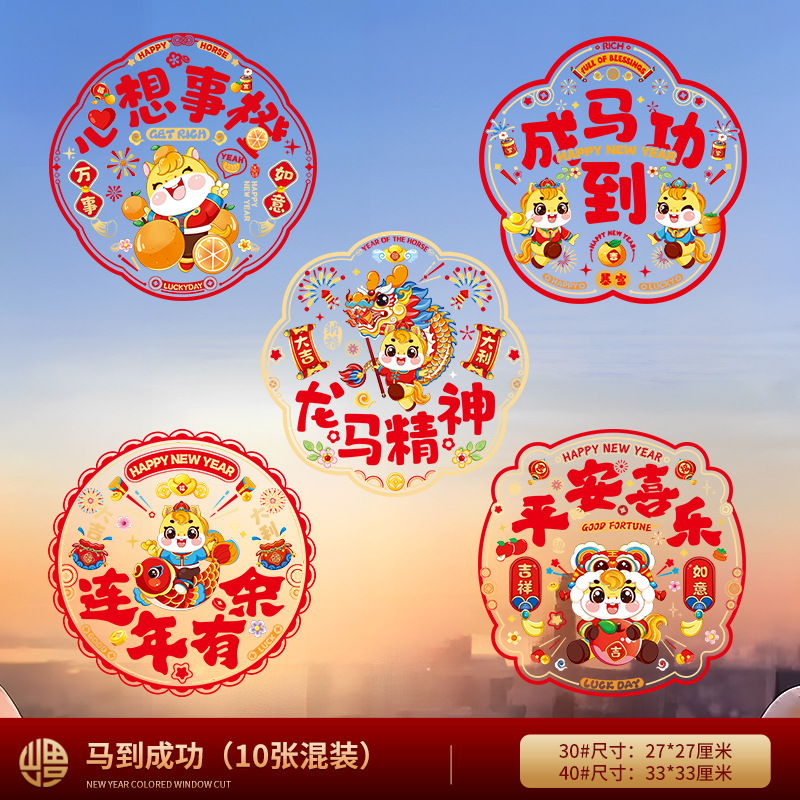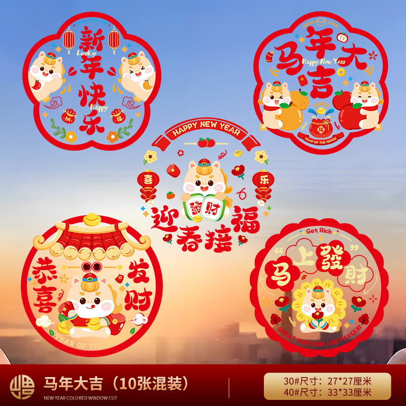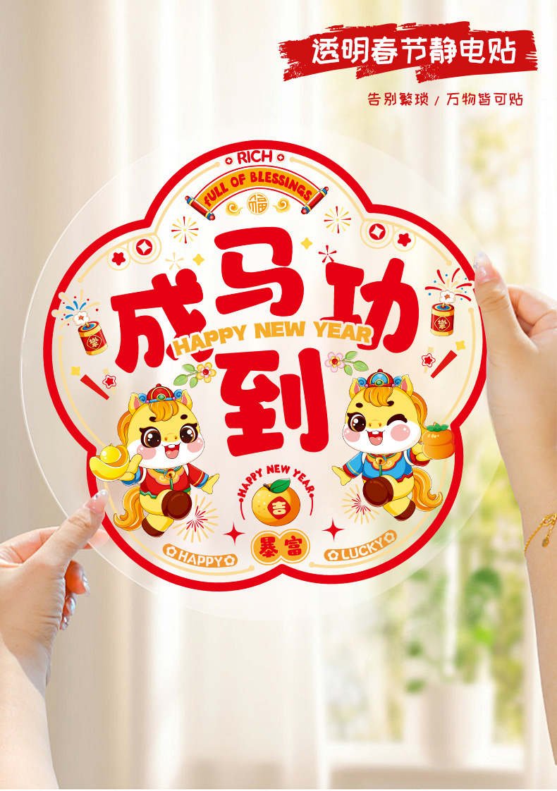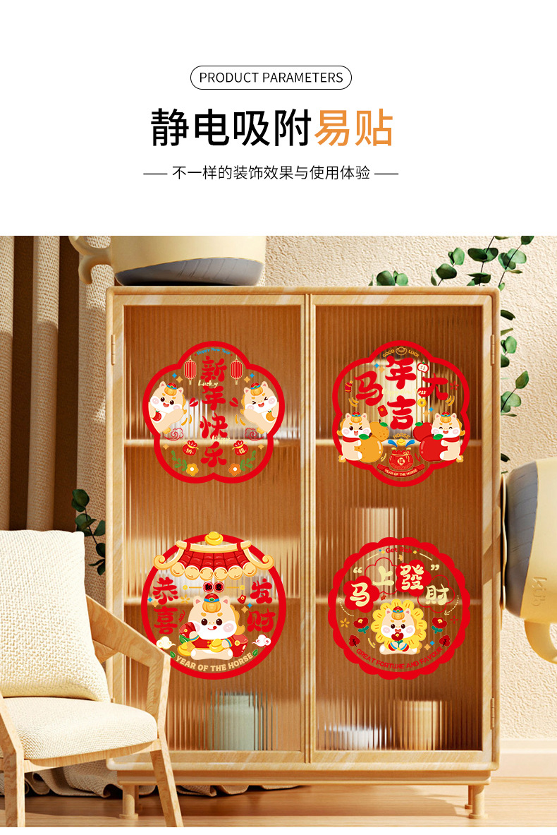 「买2份1份」【9.9元10张静音新年窗花】窗花福字过年静电贴纸 马年新年装饰 春节玻璃窗贴春联对联 2026门贴新年年货