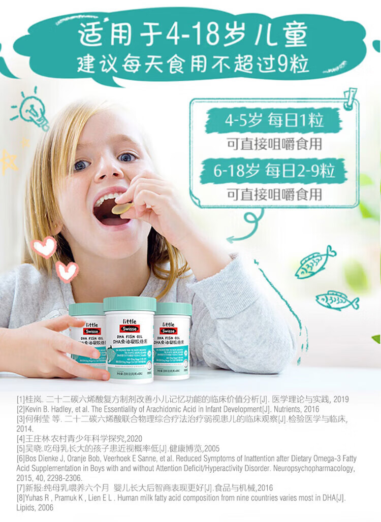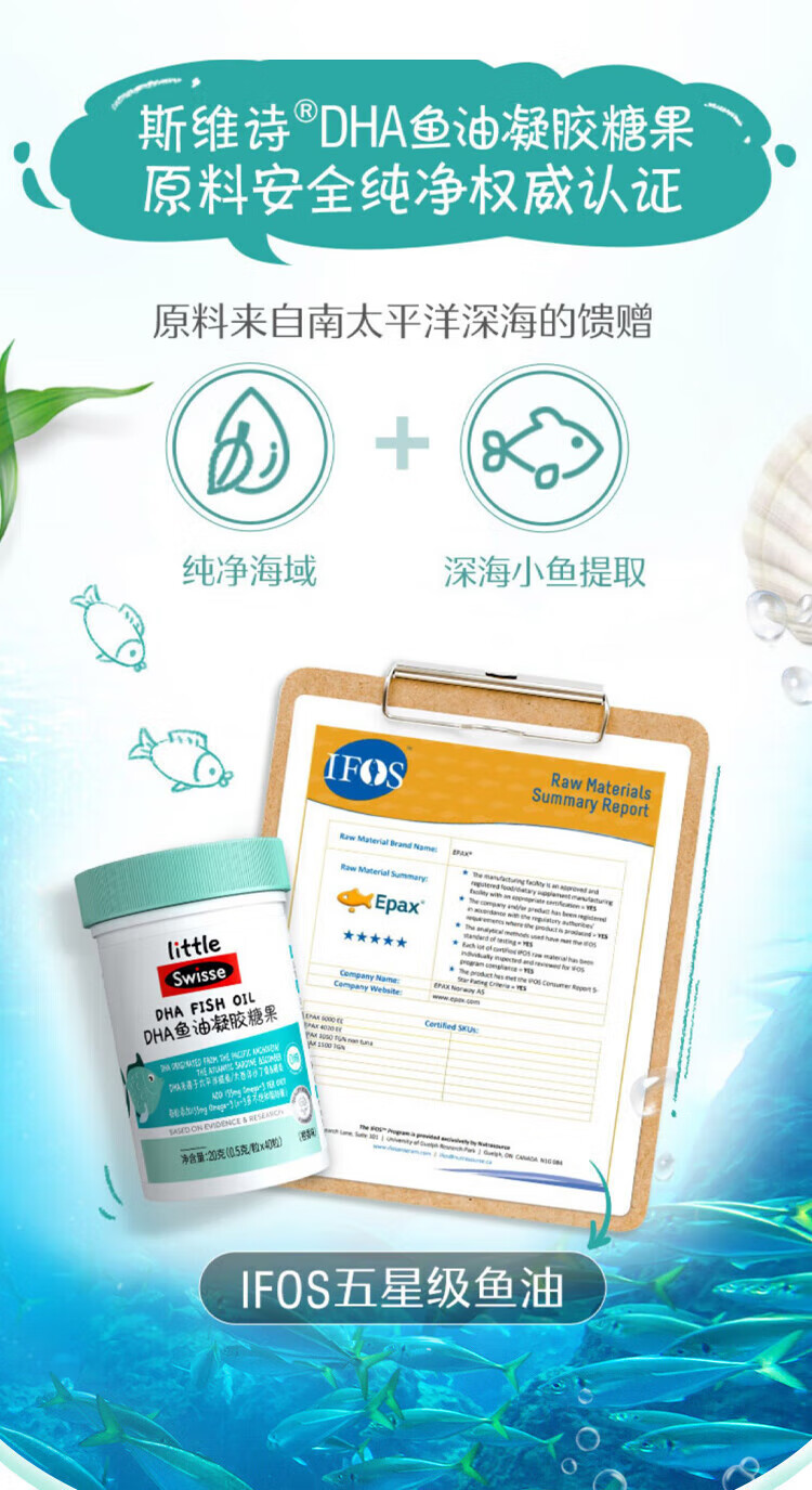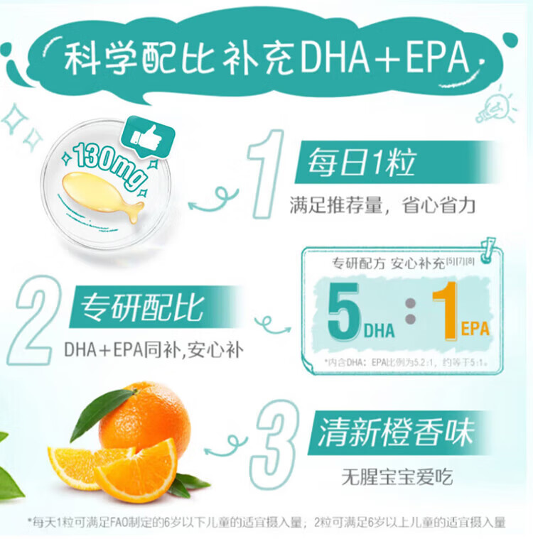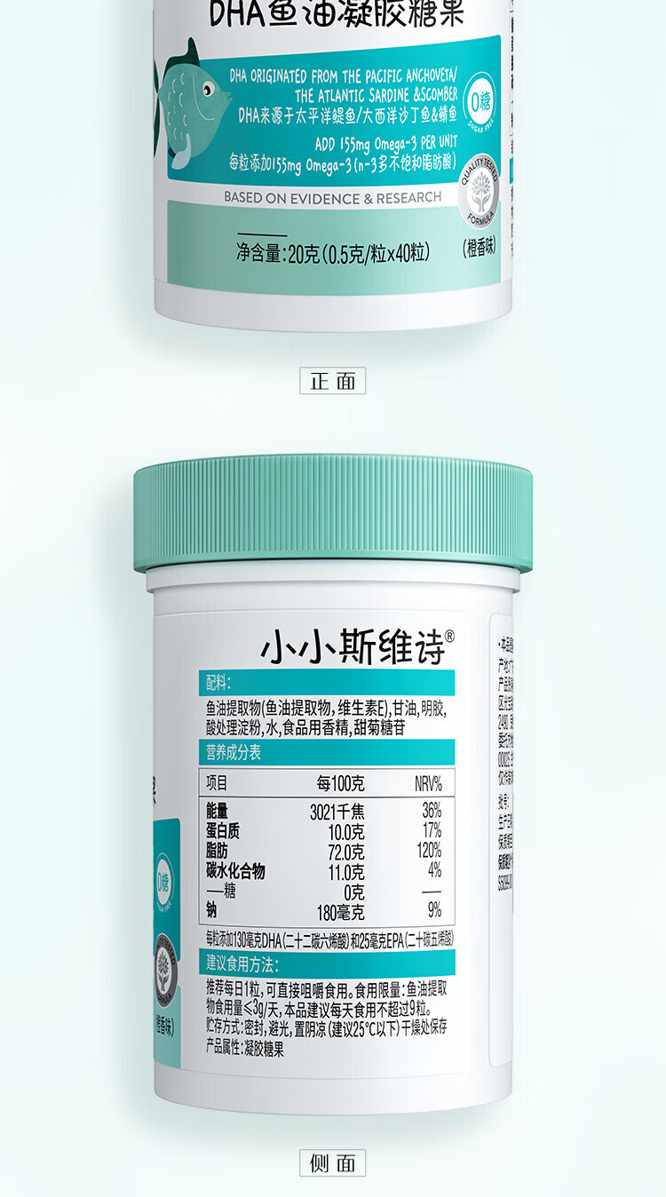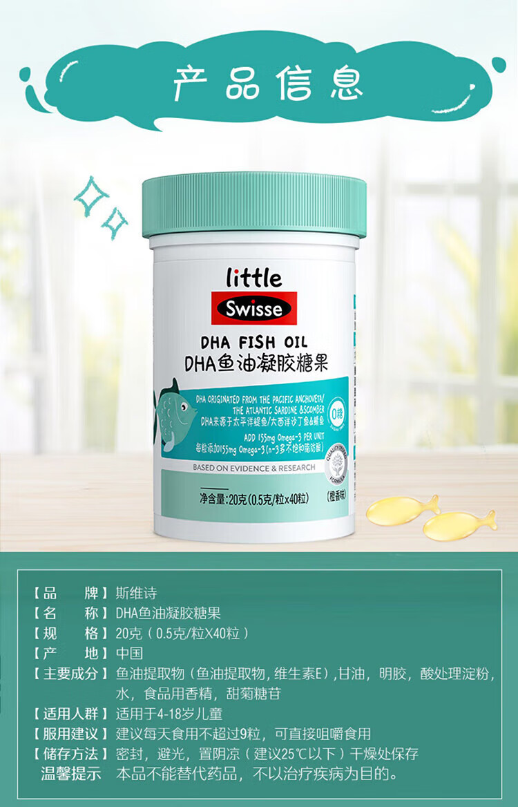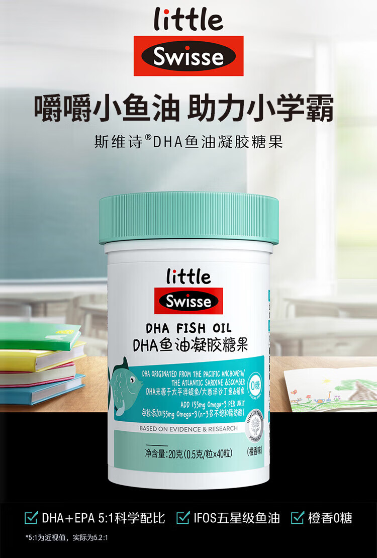 【国内版】Swisse小小斯维诗DHA 鱼油凝胶糖果(橙香味) 40粒装 助力眼脑发育