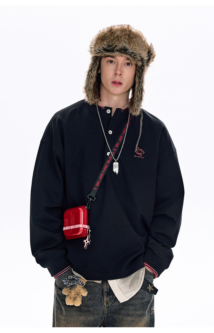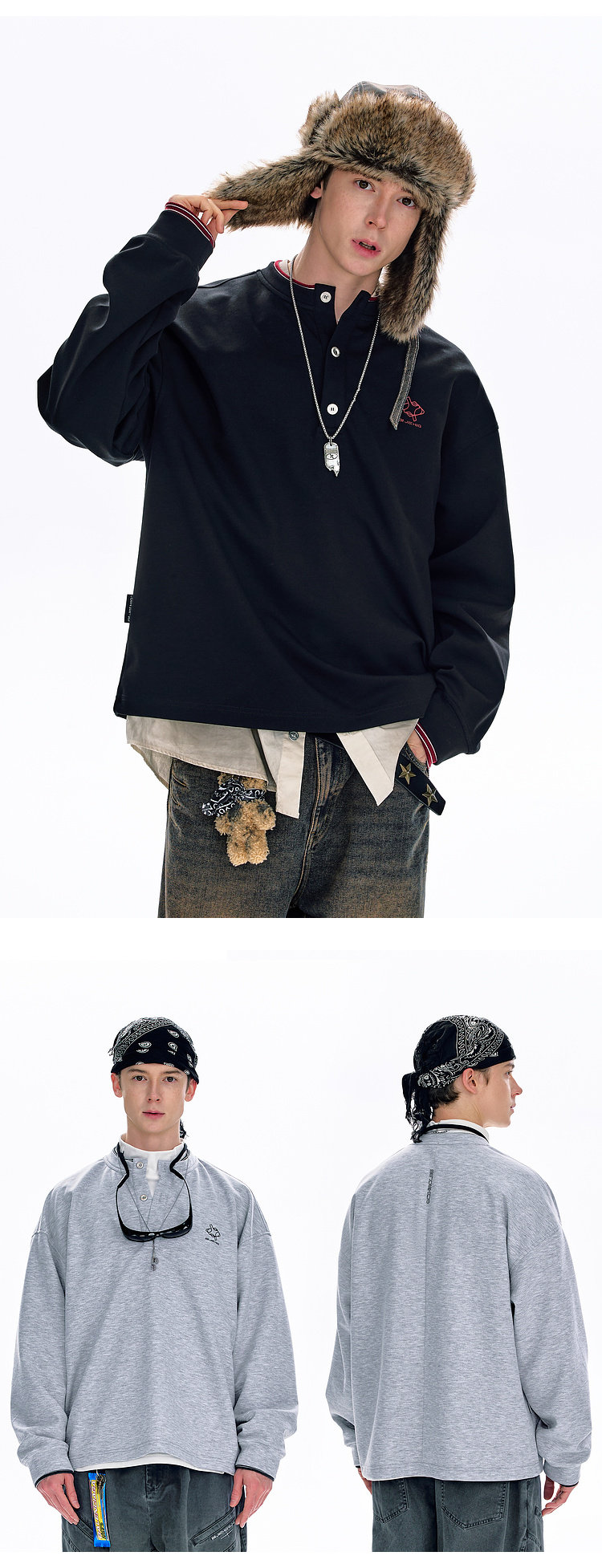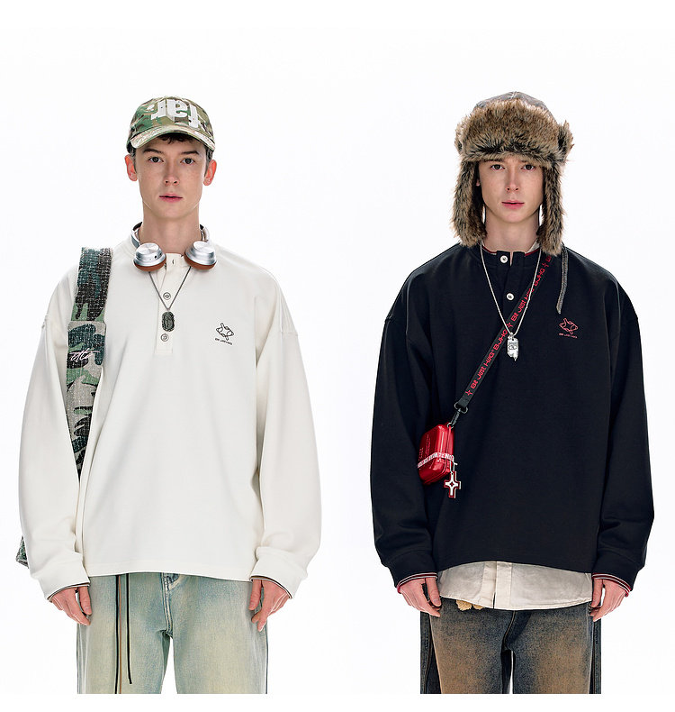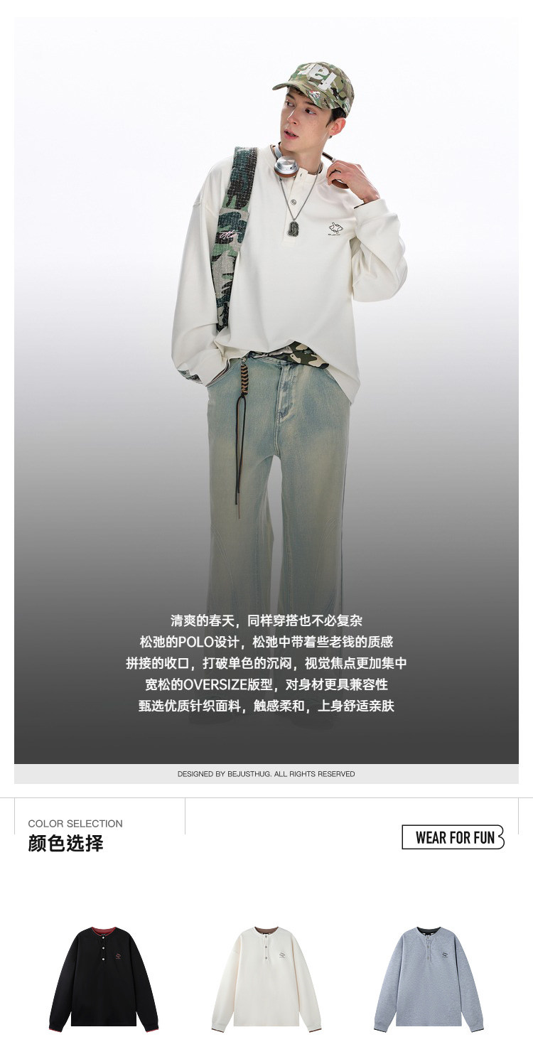 BJHG不计后果美式半高领卫衣男款春季宽松上衣老钱风长袖polo衫女