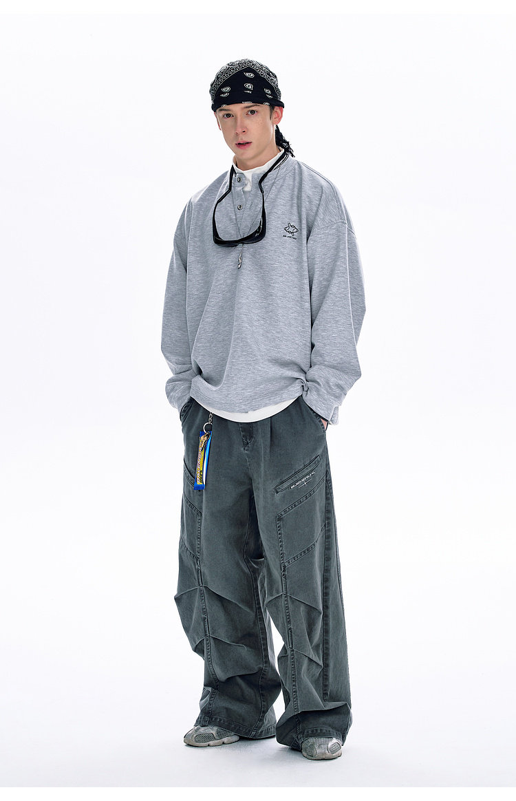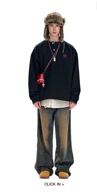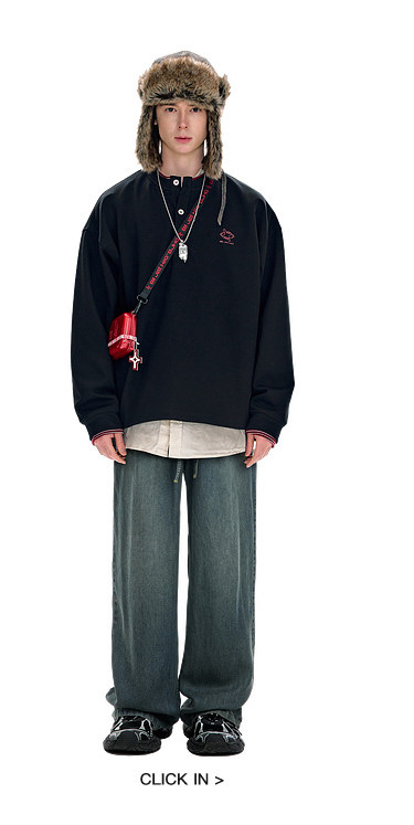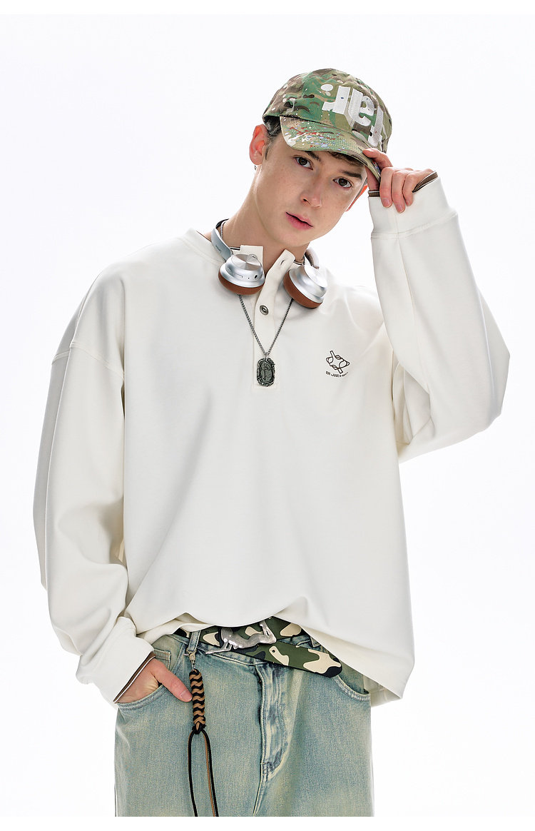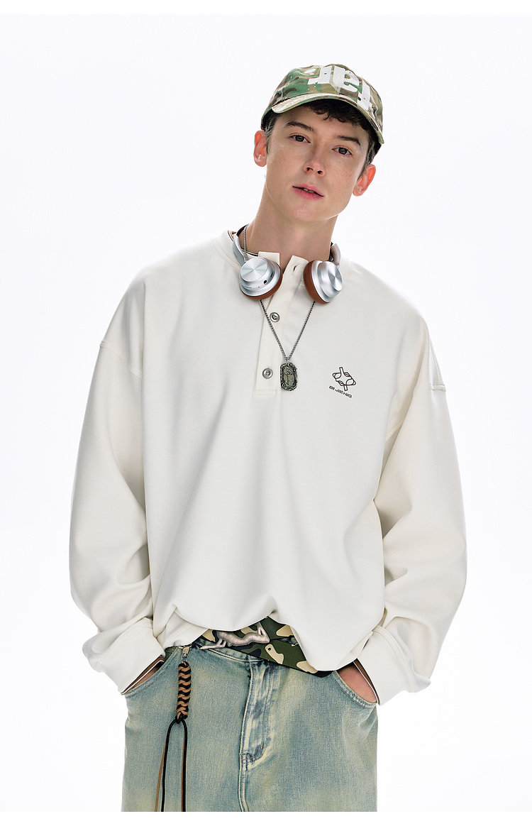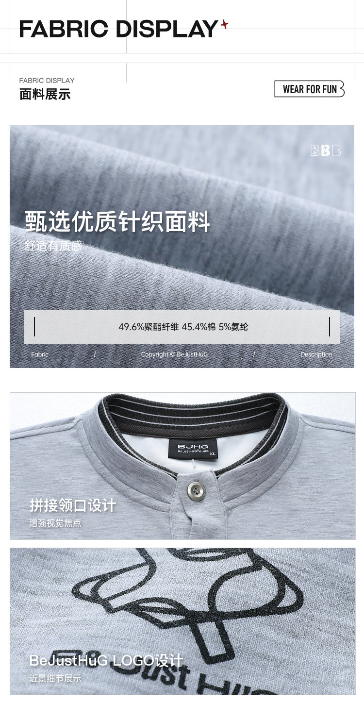 BJHG不计后果美式半高领卫衣男款春季宽松上衣老钱风长袖polo衫女