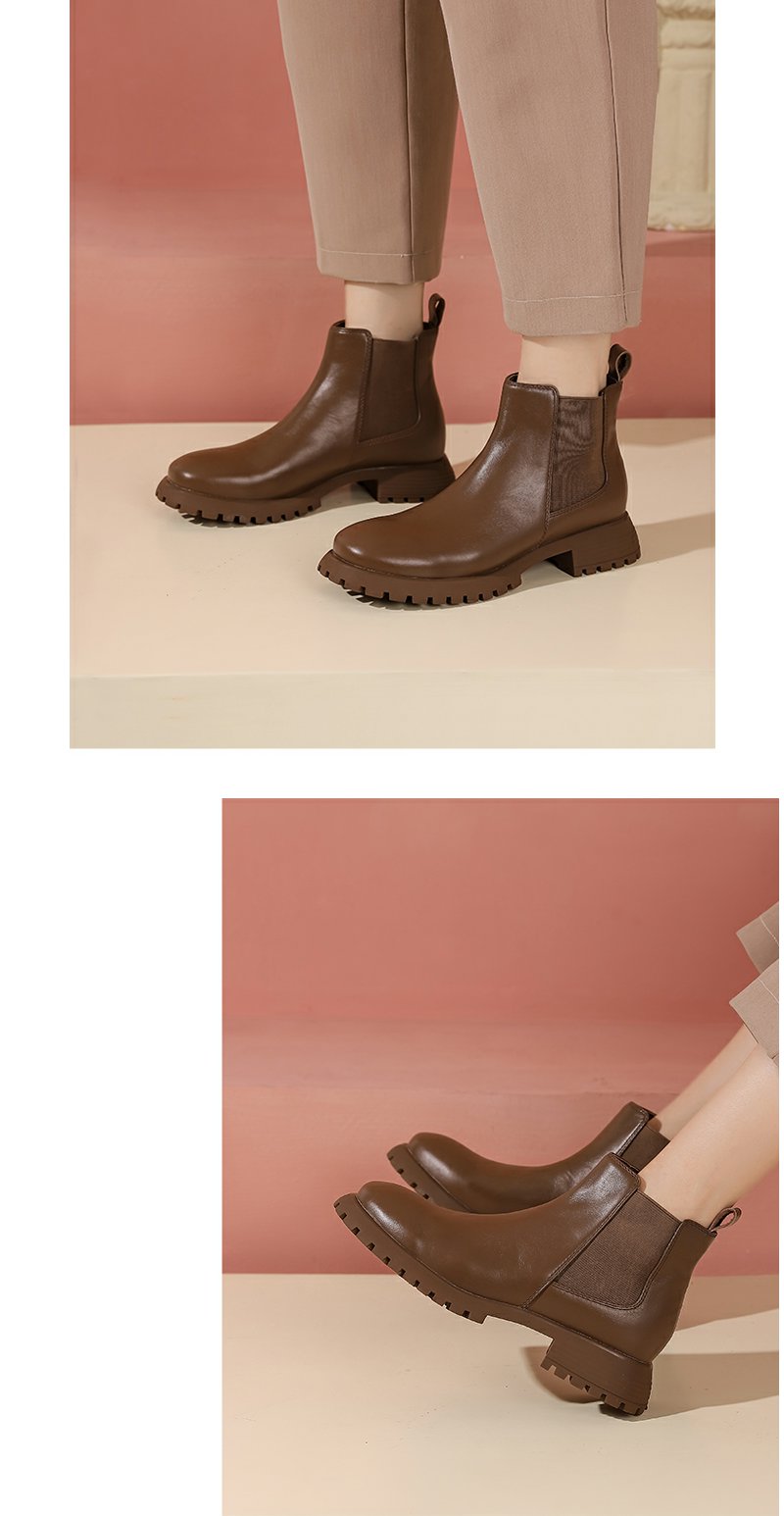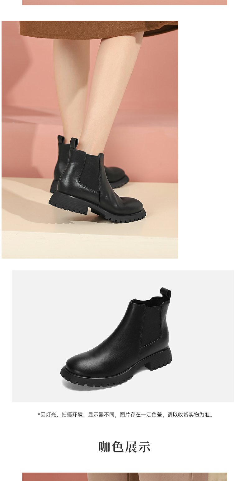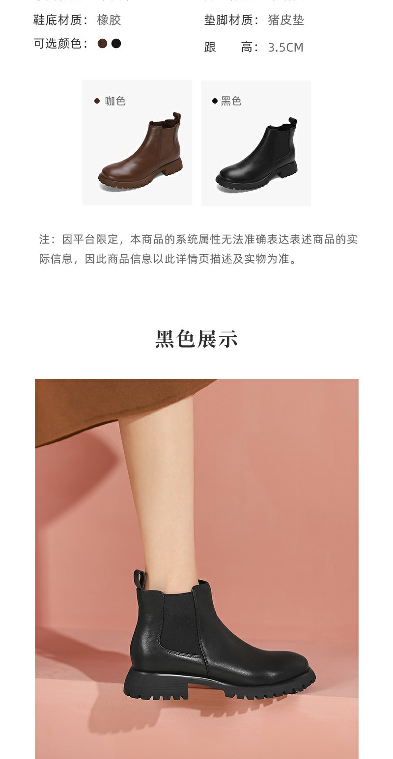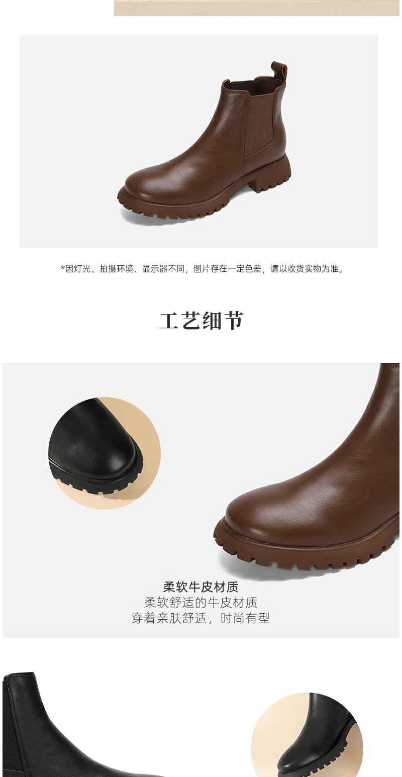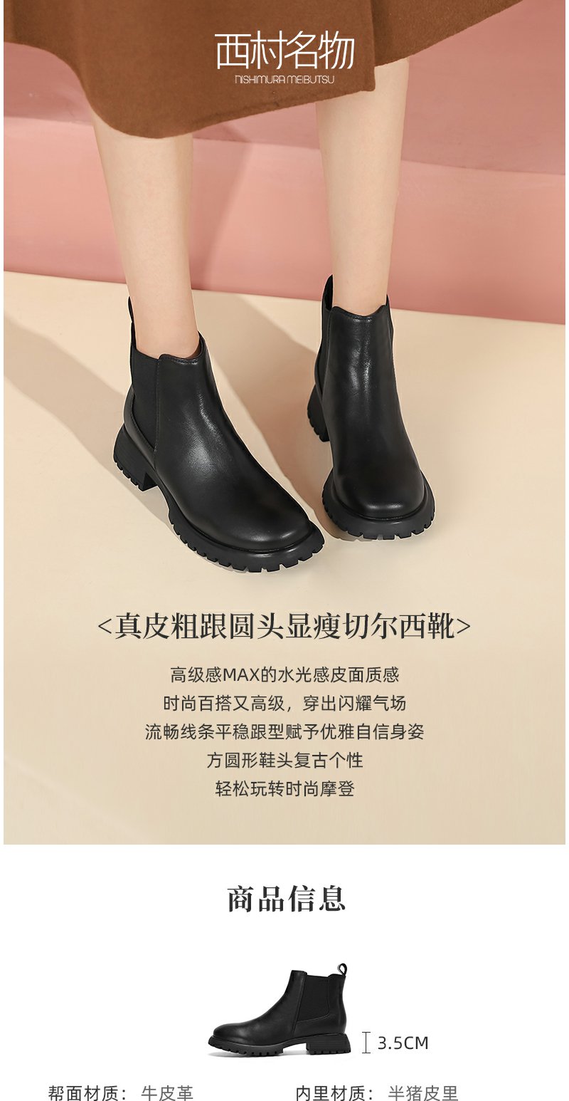 西村名物2022冬季新款切尔西女烟筒靴牛皮黑色短靴女士靴子44571