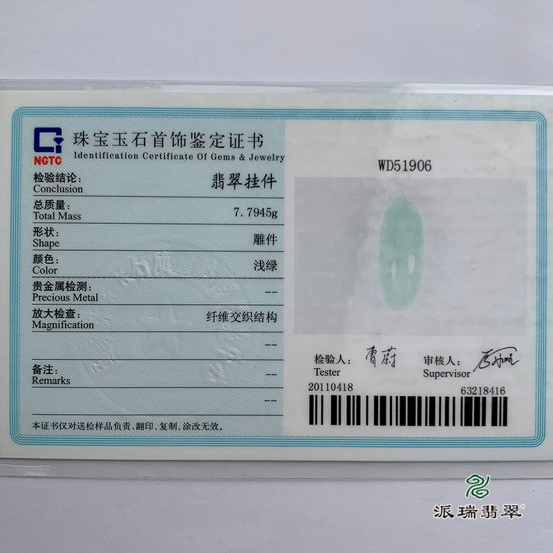 派瑞翡翠 翡翠挂件 糯冰种 绿色