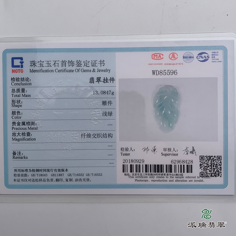 派瑞翡翠 翡翠挂件 糯种 绿色