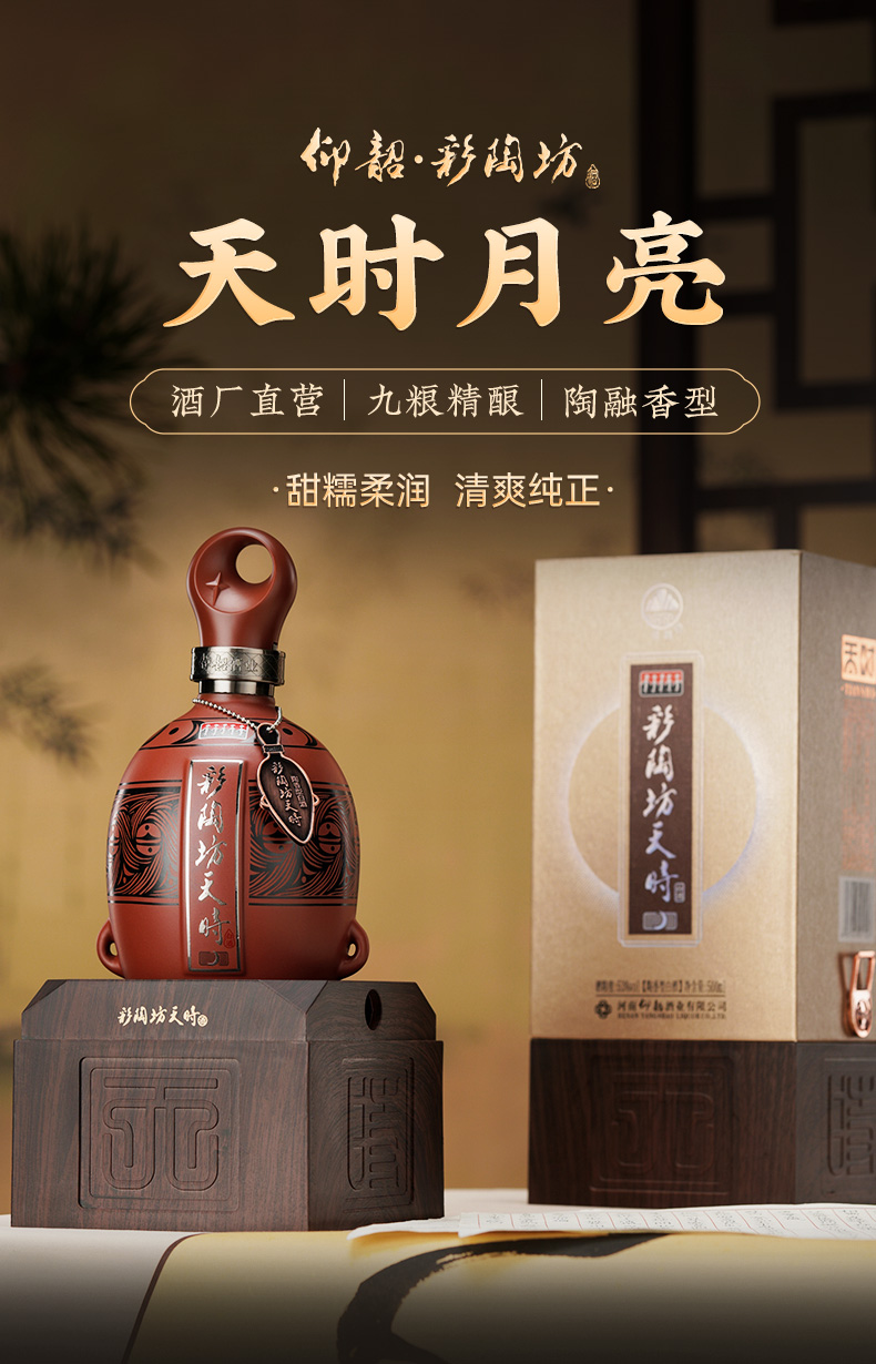 【河南春晚同款】彩陶坊天时月亮 53度500ml 礼盒版白酒 仰韶官方旗舰店 整箱六瓶装