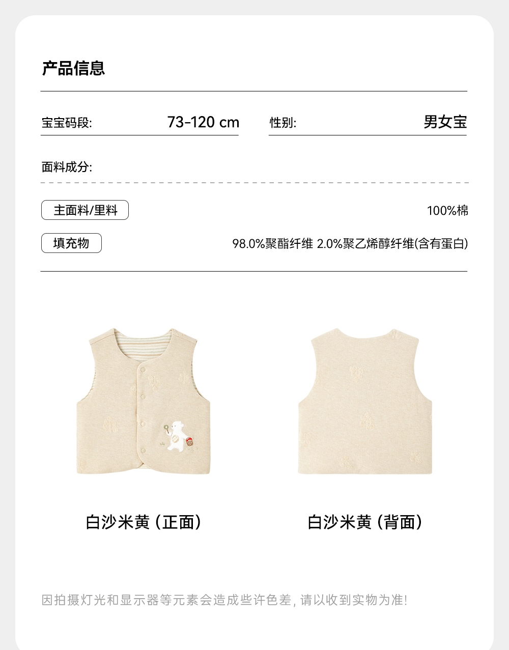 英氏儿童背心秋冬保暖婴儿抗菌马甲男童女童2024新款YLPAJ3Q010A