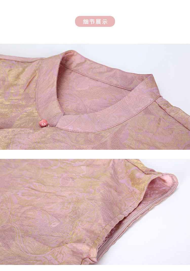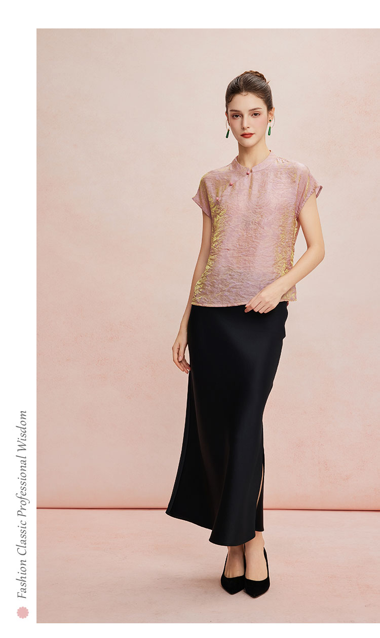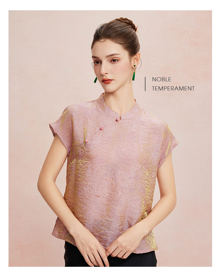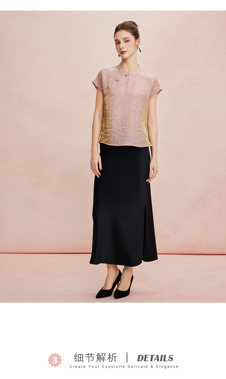 QF259斯尔丽25新款新国风低小立领短袖沙质防透质感高级百搭显瘦上衣
