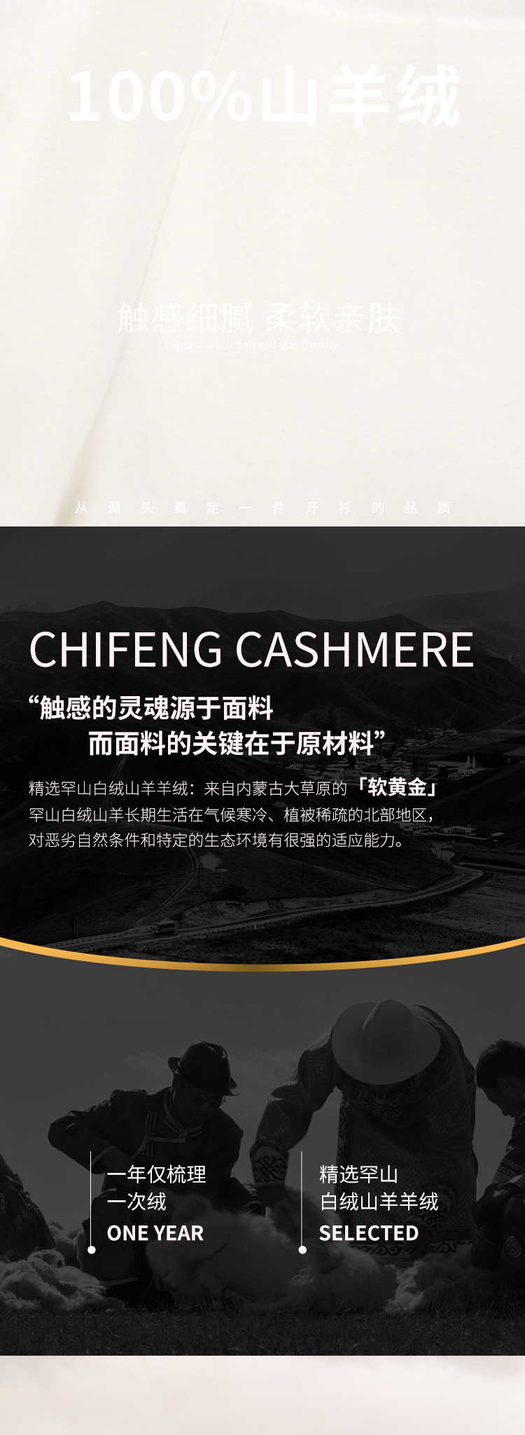 东黎羊绒是赤峰东荣集团自主品牌,自有牧场/羊绒制品全产业链优势,实现了羊绒从“牧场”到“商场”的华丽转变。