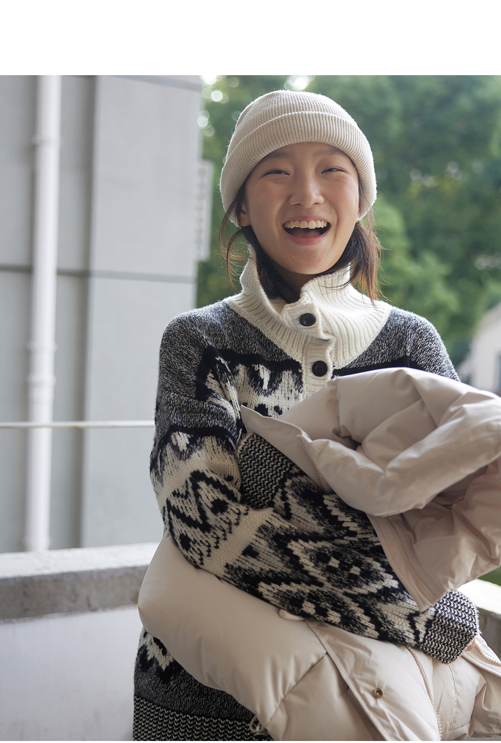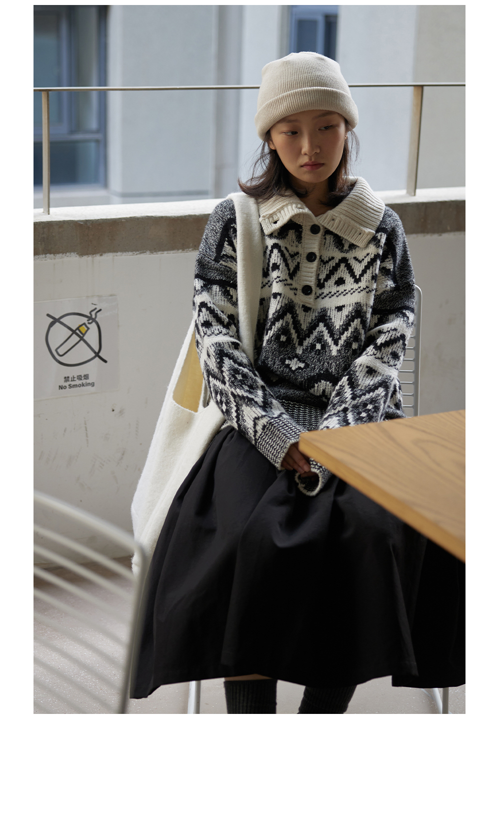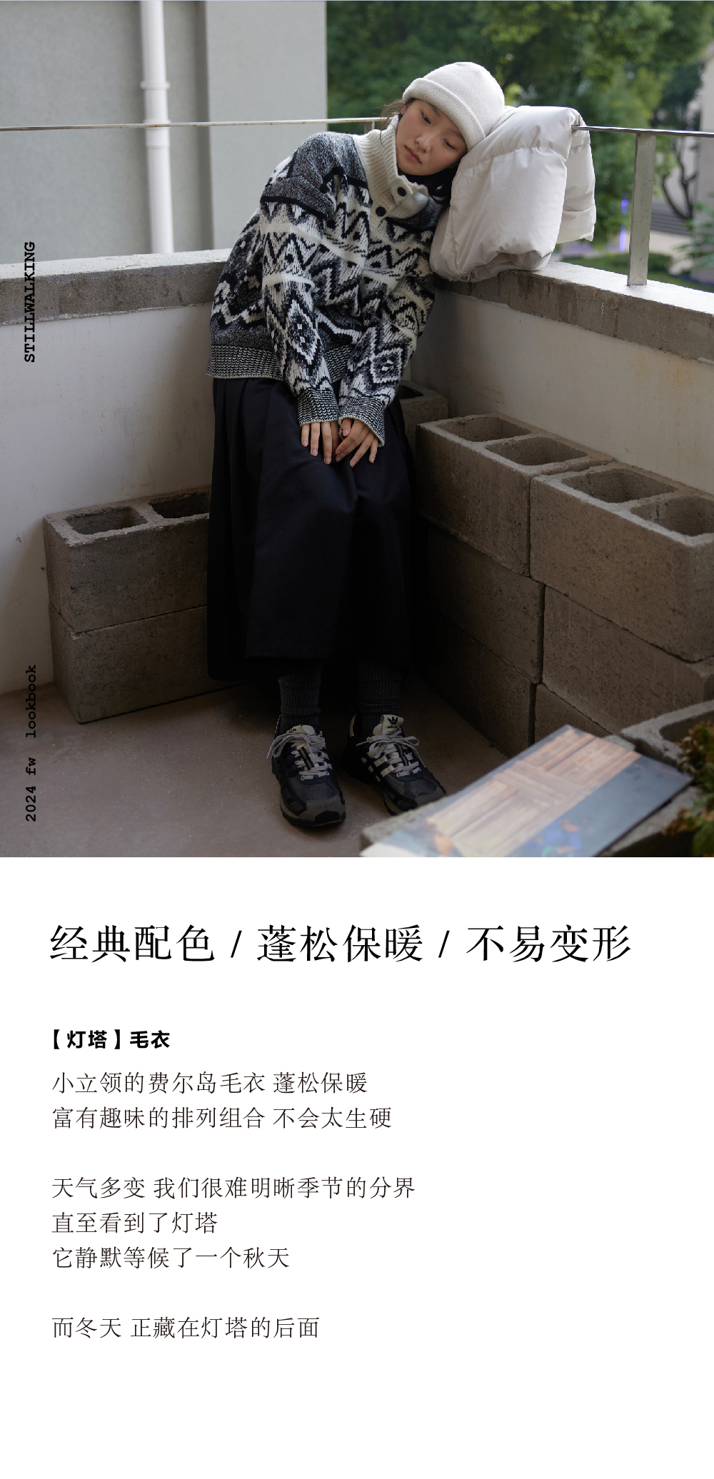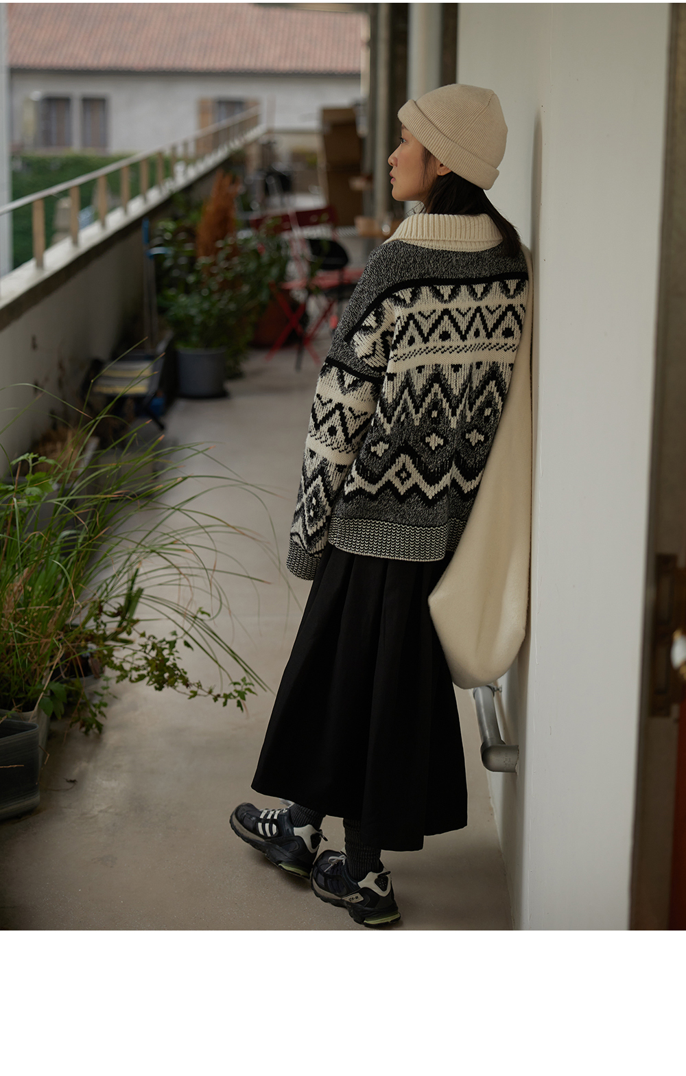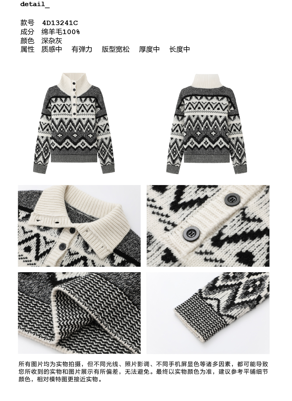 步履不停/4D13241C/复古高领翻领两穿费尔岛针织纯羊毛毛衣