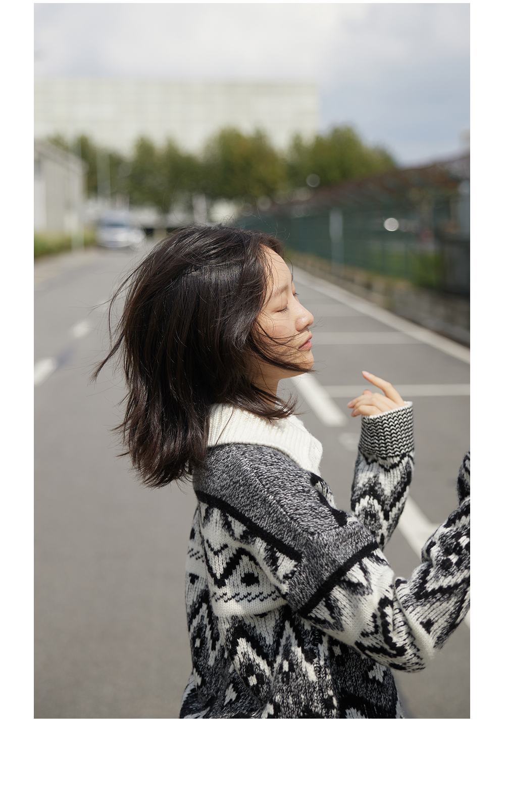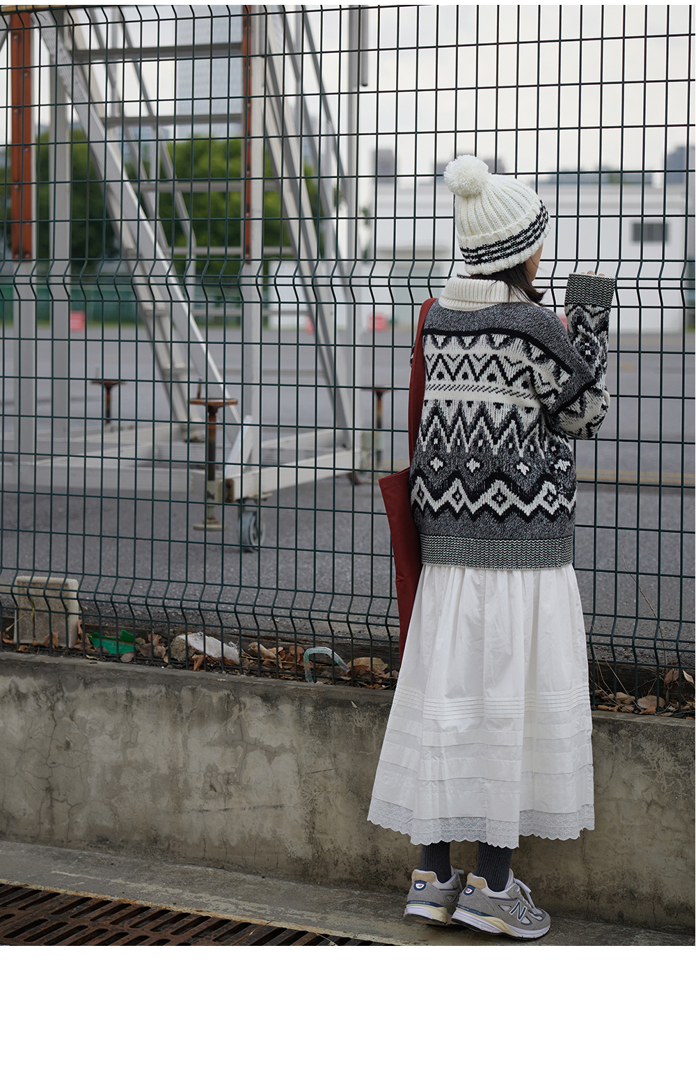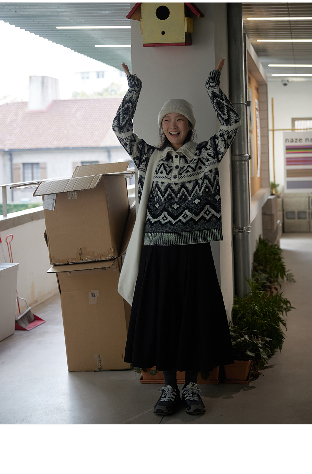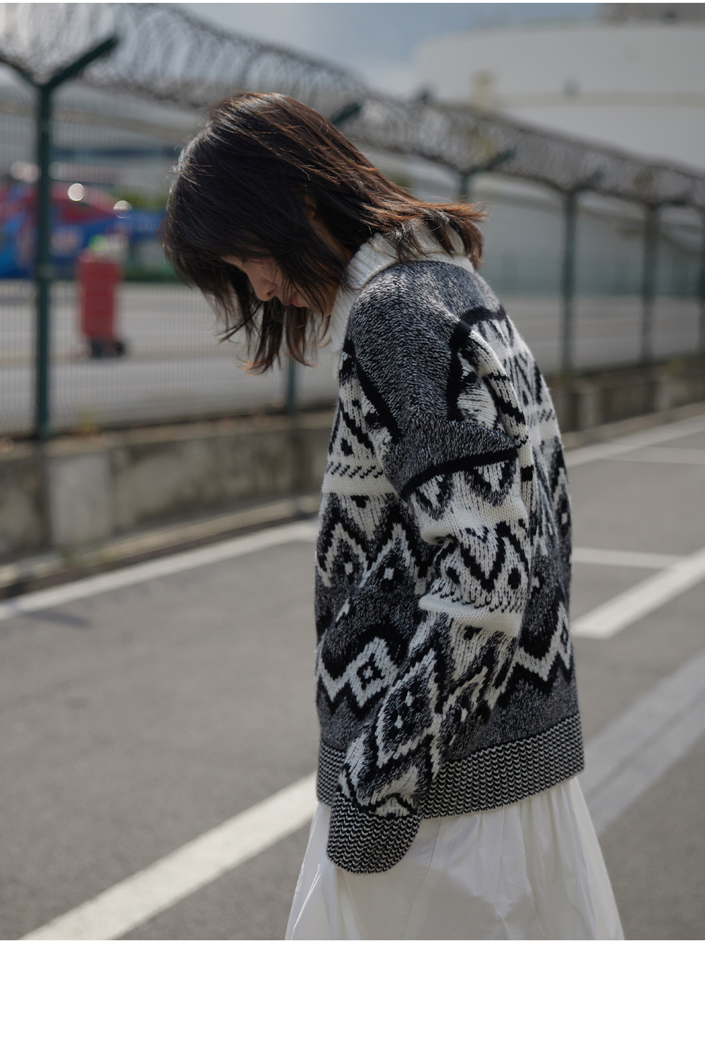 步履不停/4D13241C/复古高领翻领两穿费尔岛针织纯羊毛毛衣