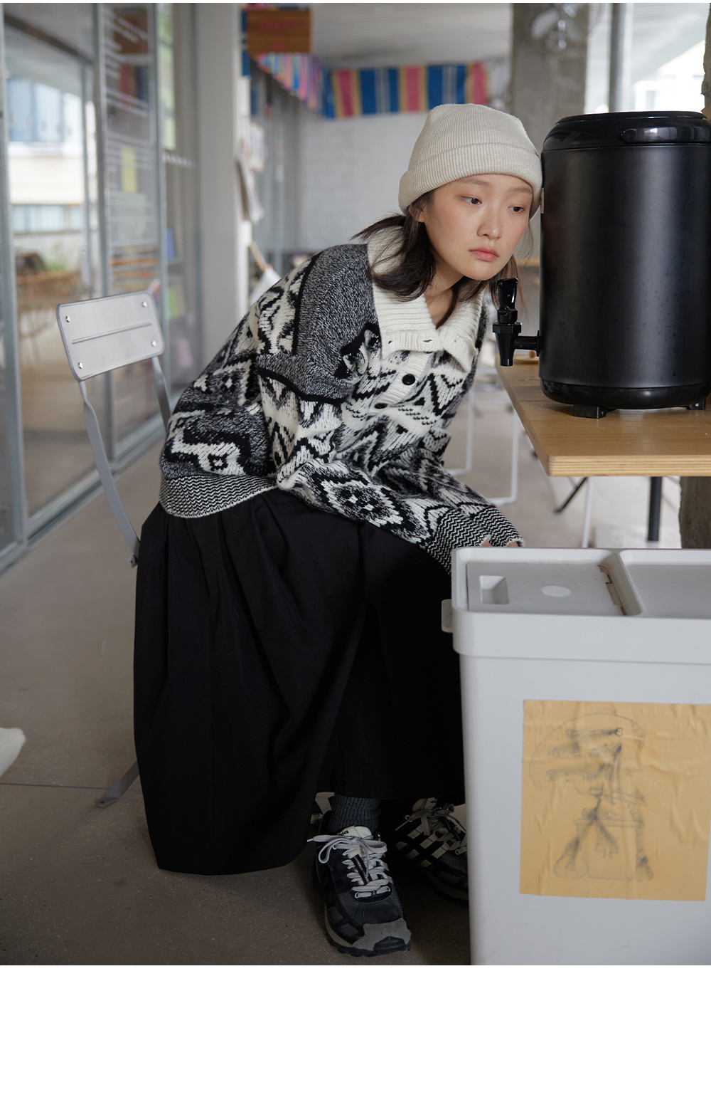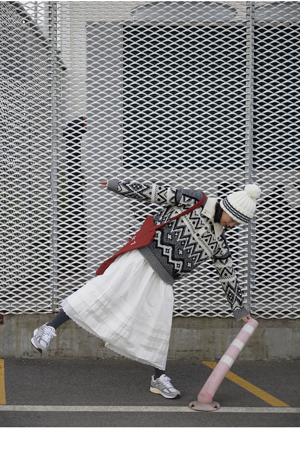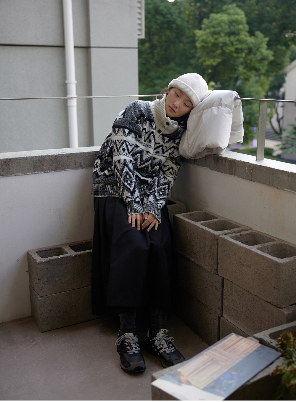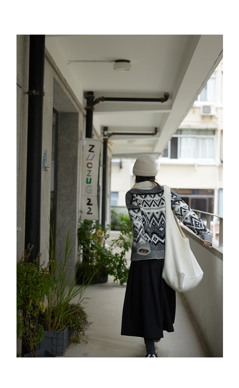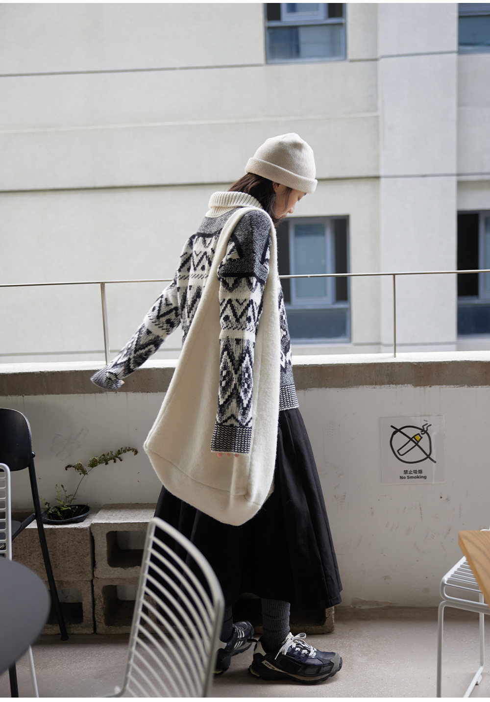 步履不停/4D13241C/复古高领翻领两穿费尔岛针织纯羊毛毛衣