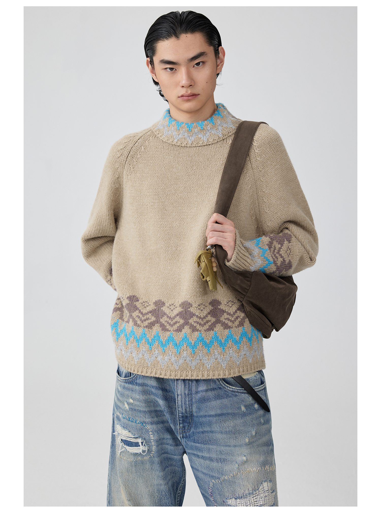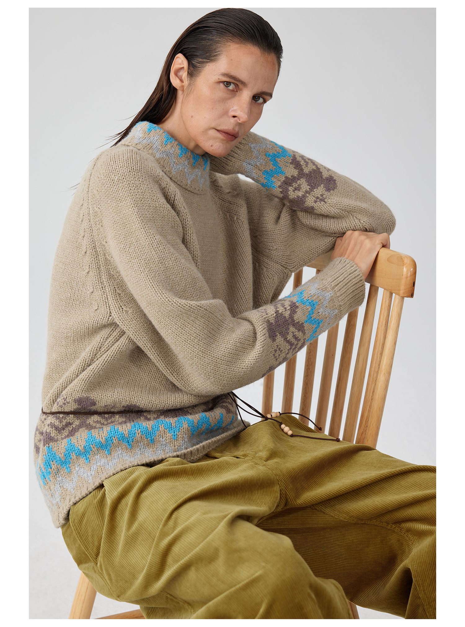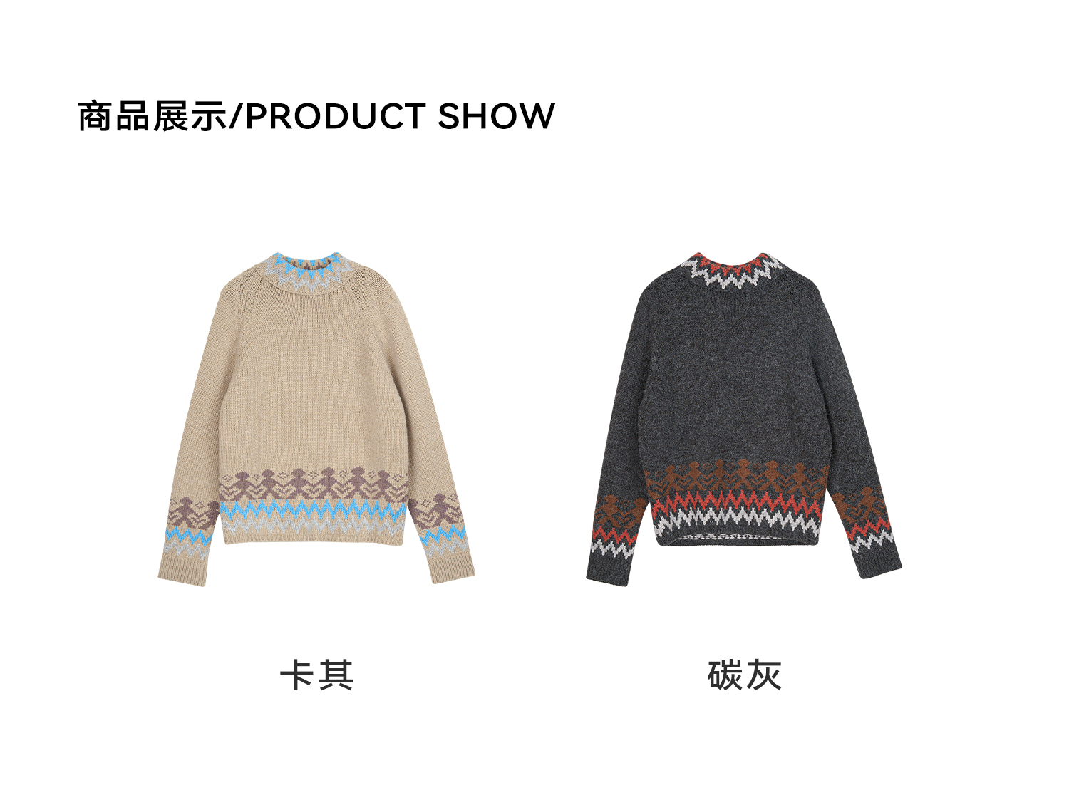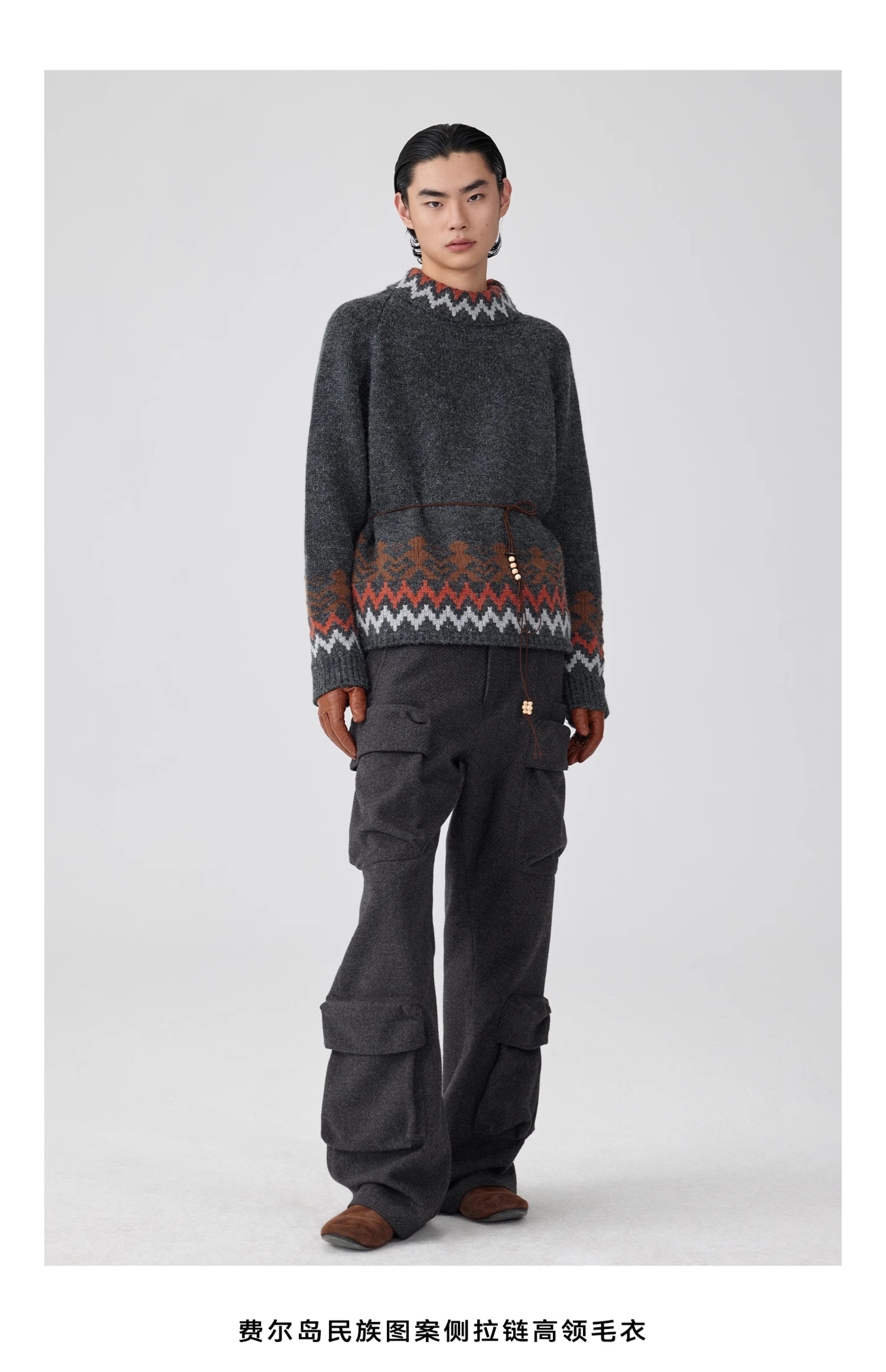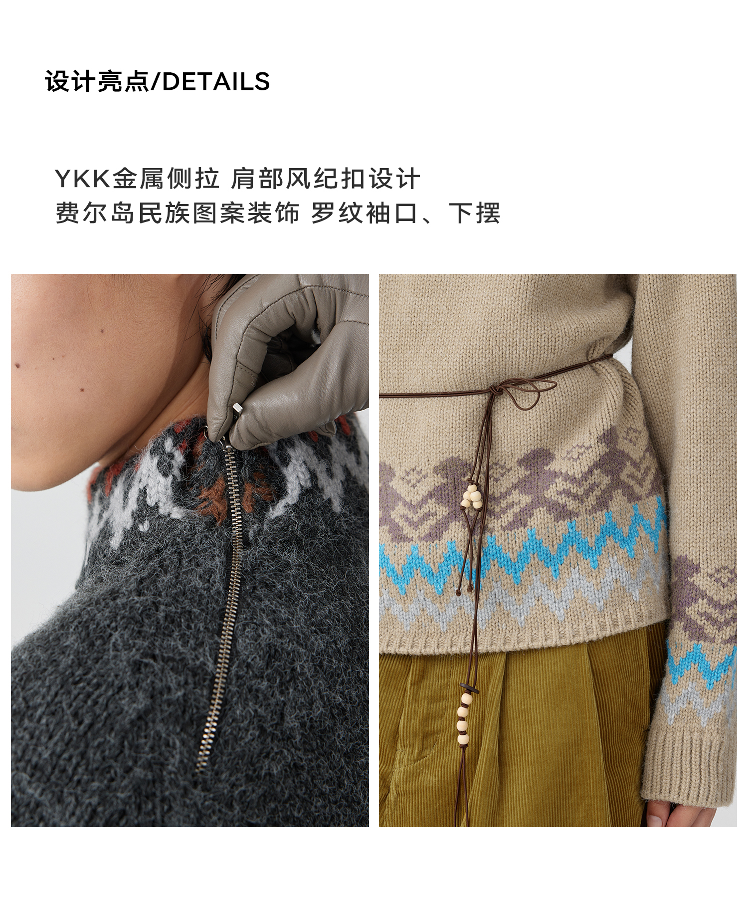 Simple Project/M24199/费尔岛民族图案侧拉链高领毛衣