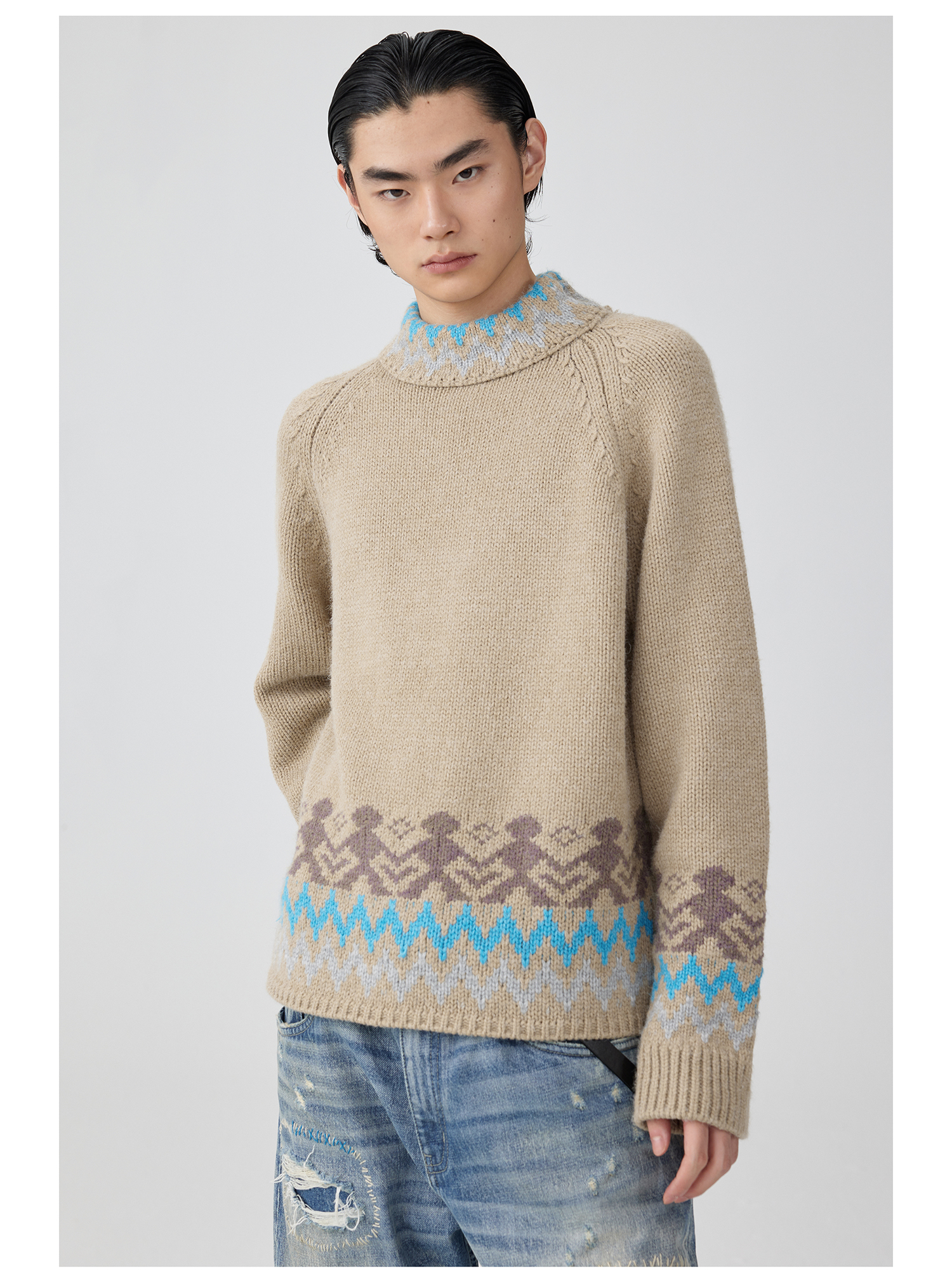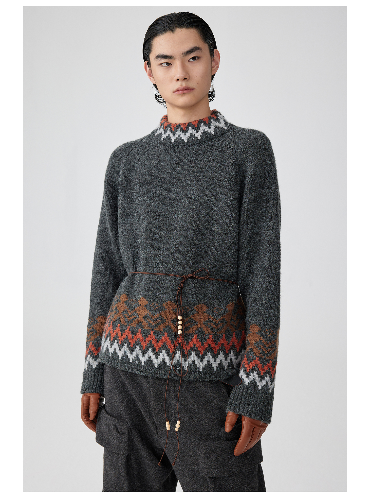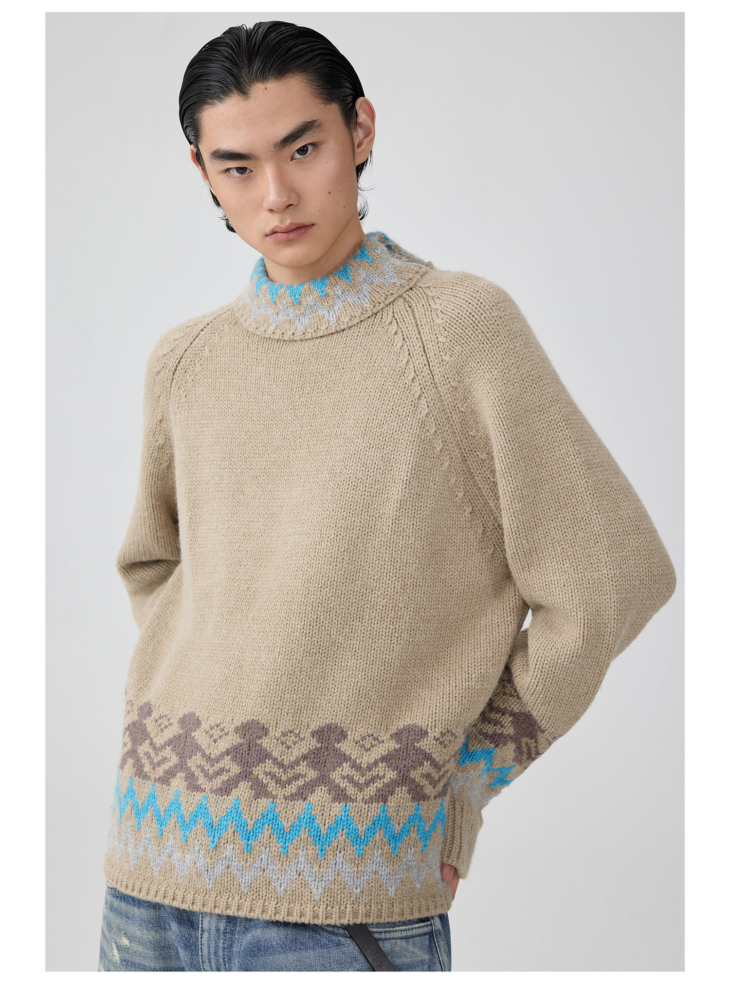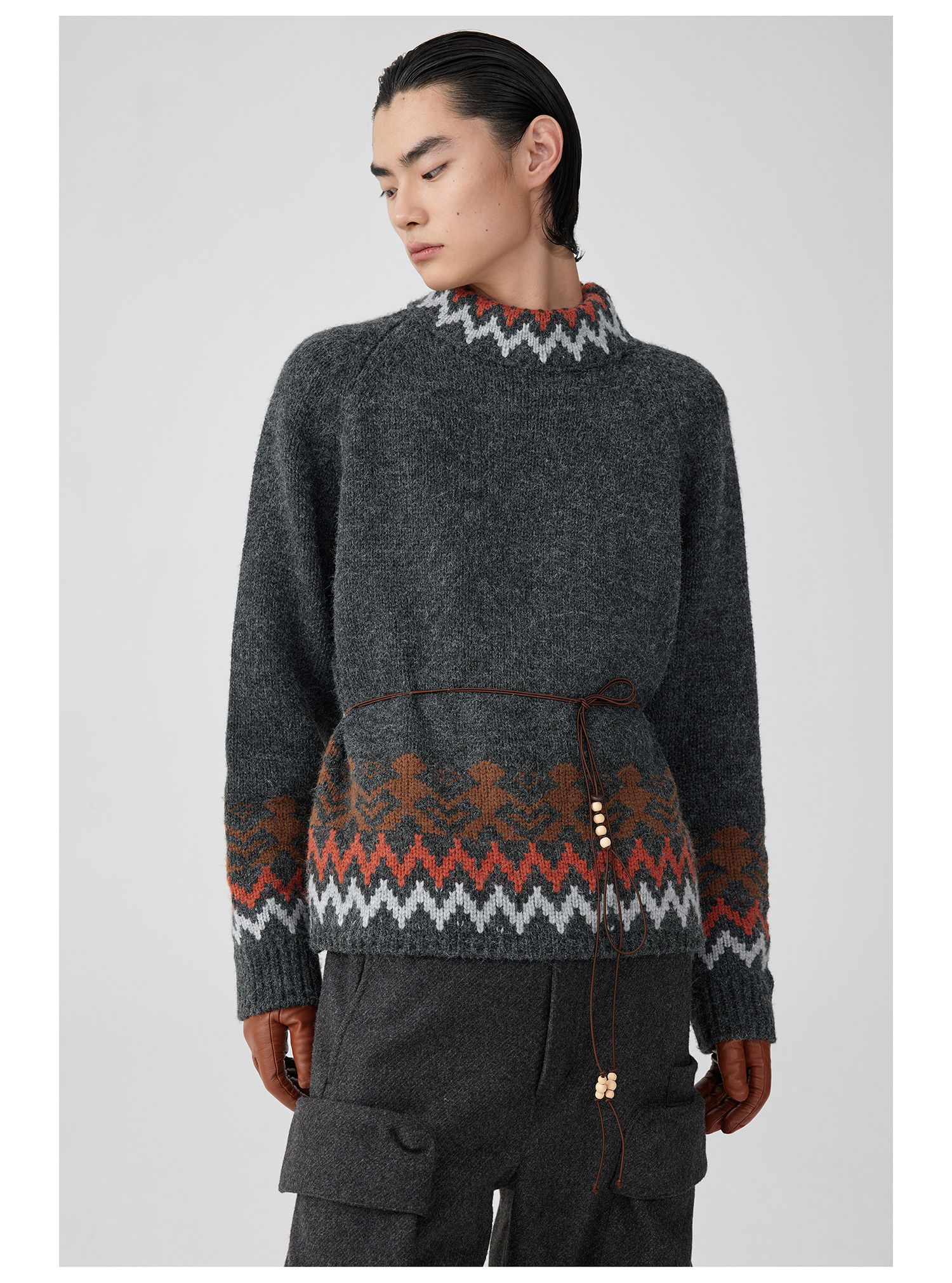 Simple Project/M24199/费尔岛民族图案侧拉链高领毛衣