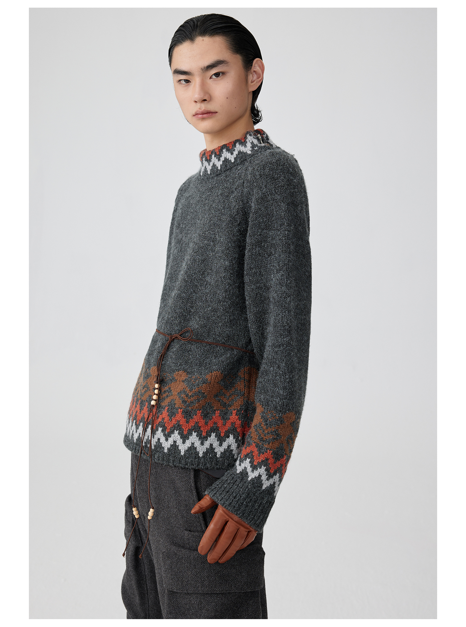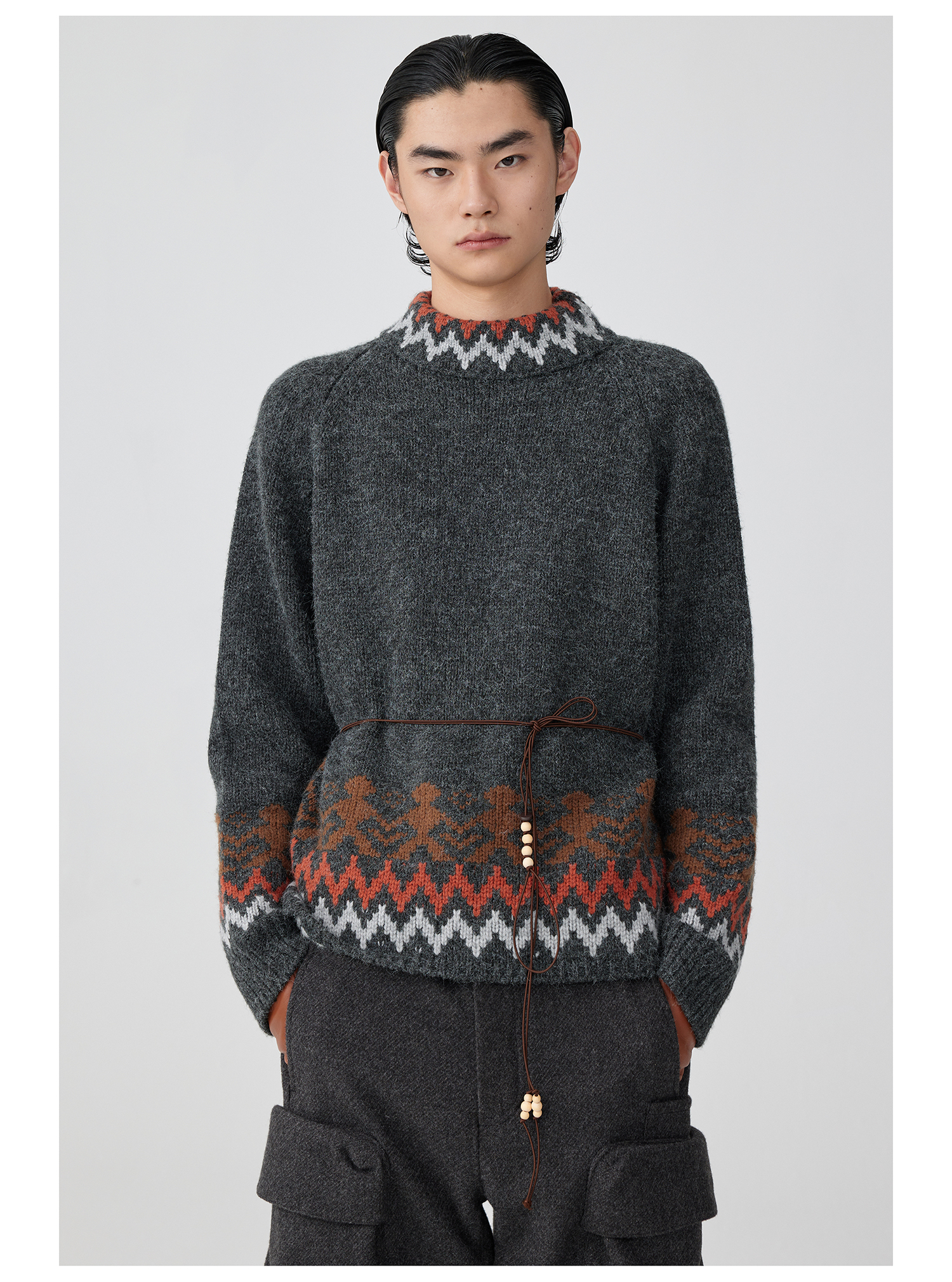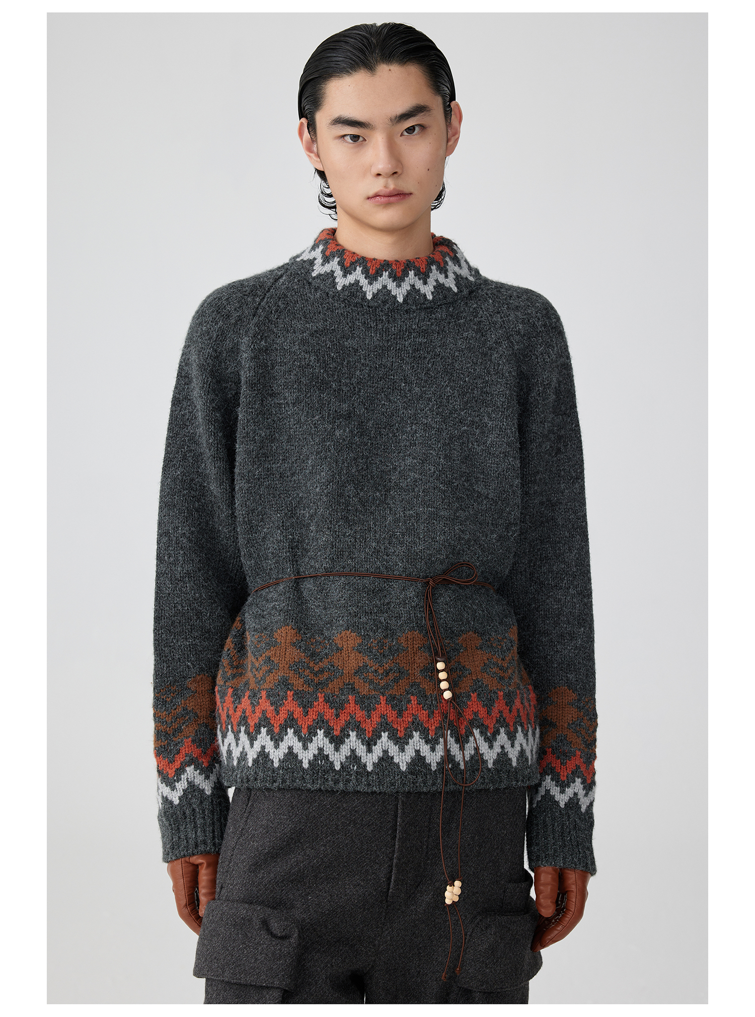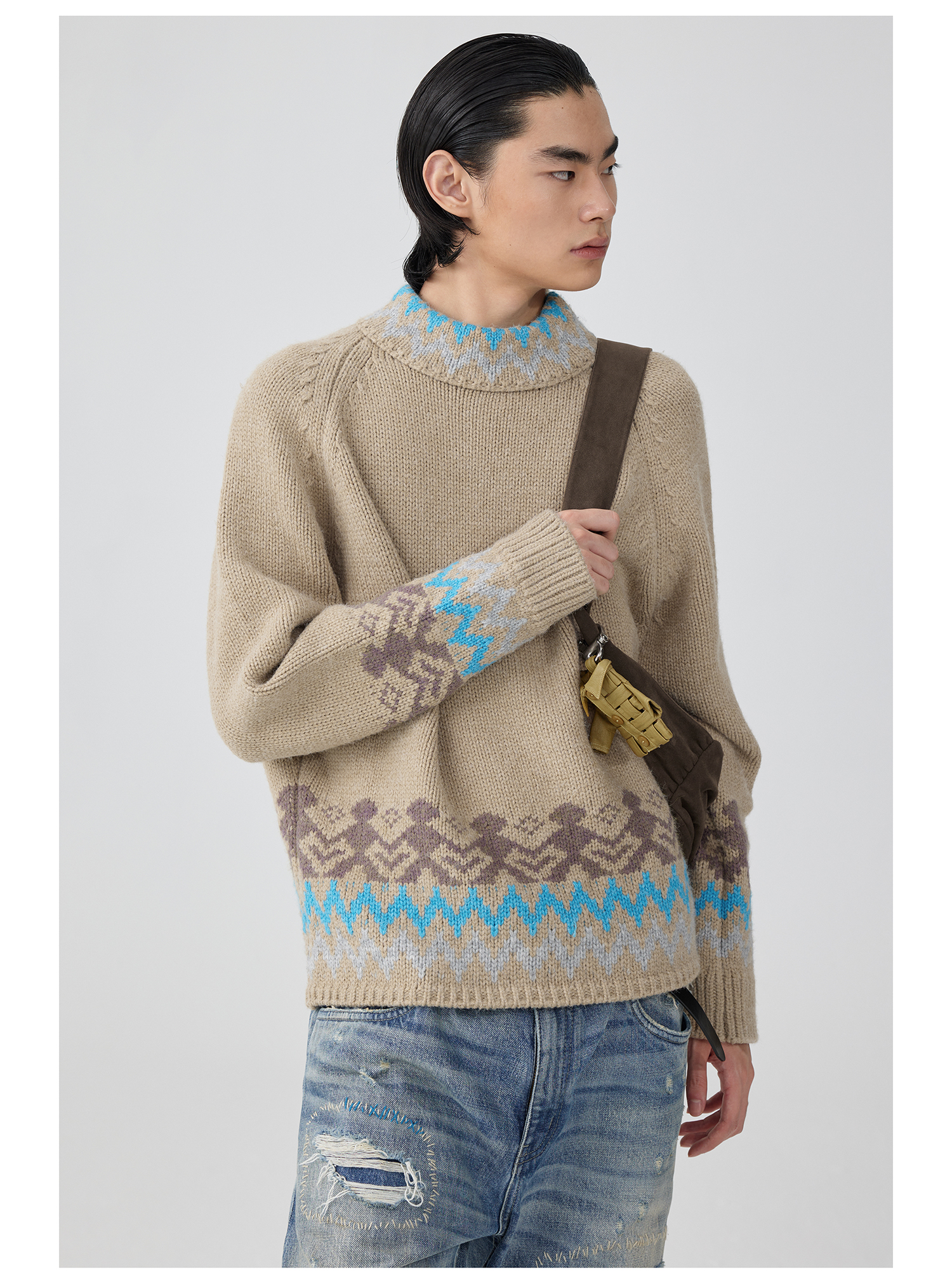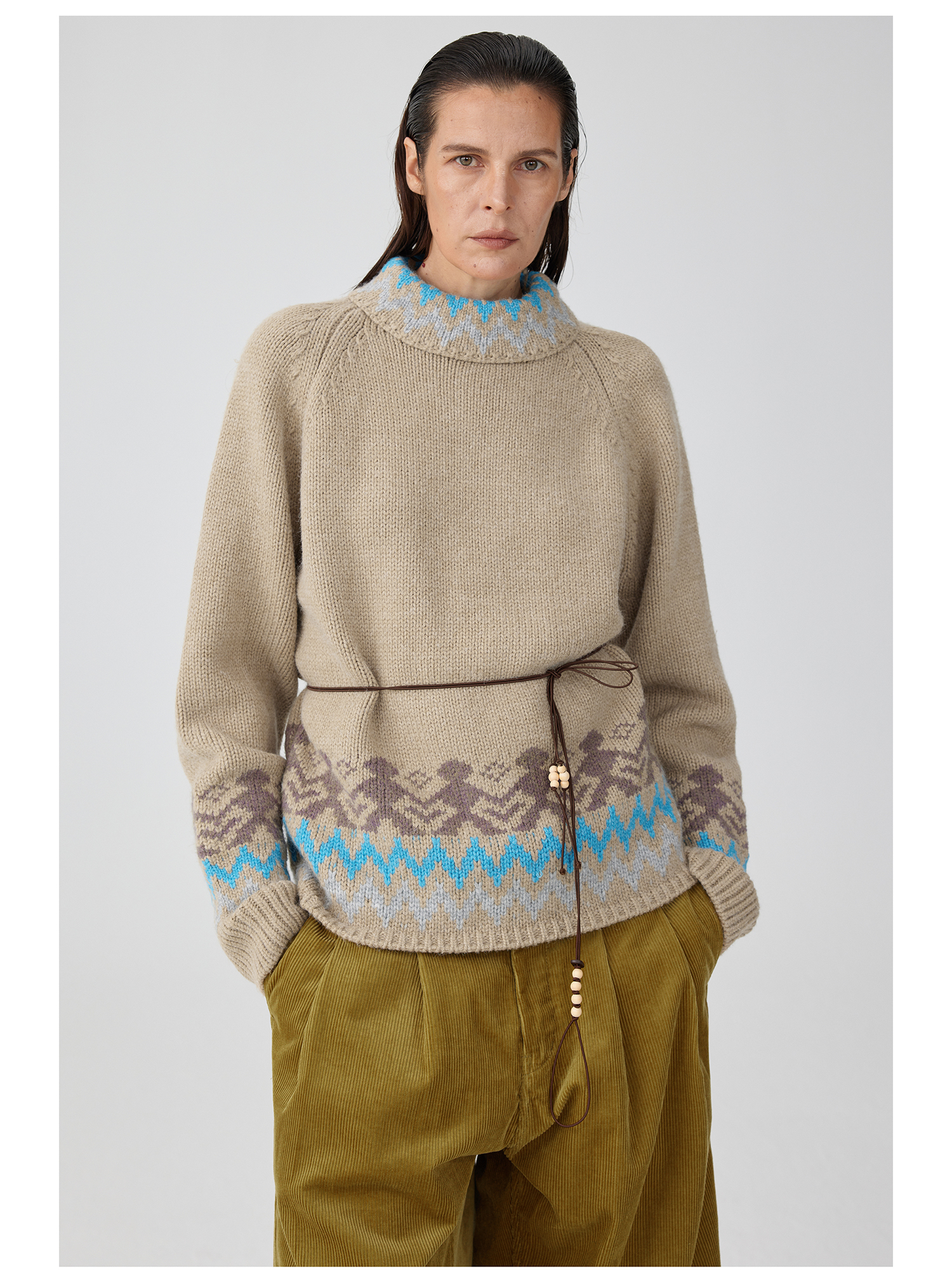 Simple Project/M24199/费尔岛民族图案侧拉链高领毛衣