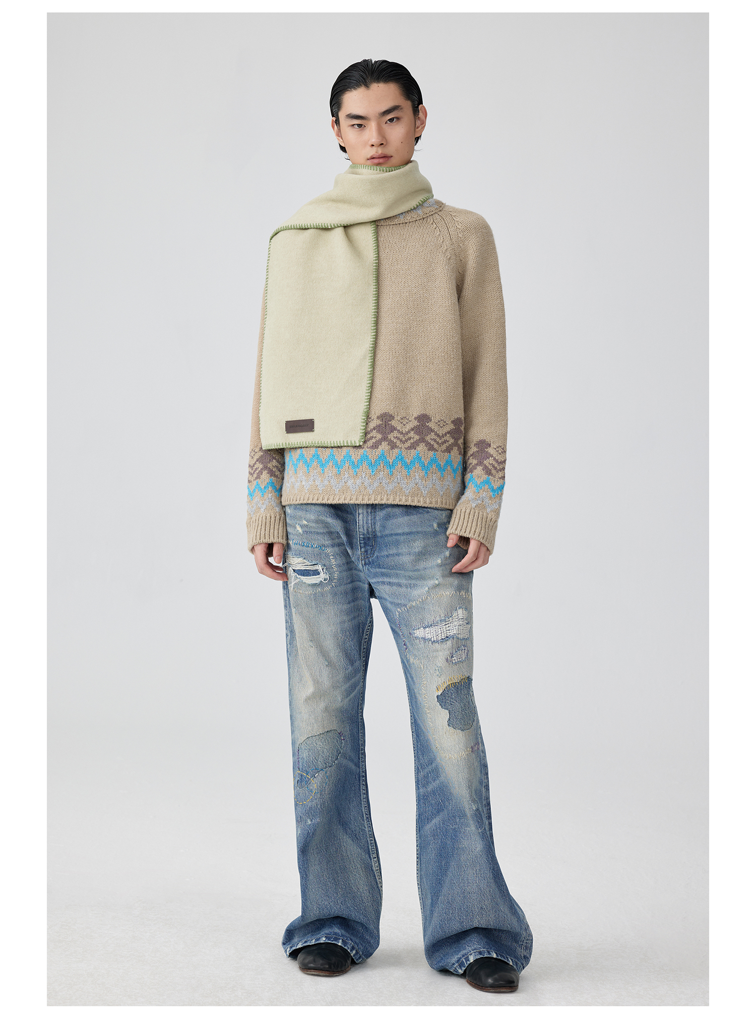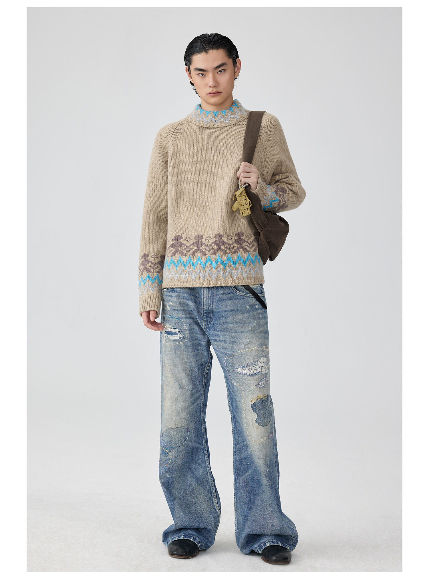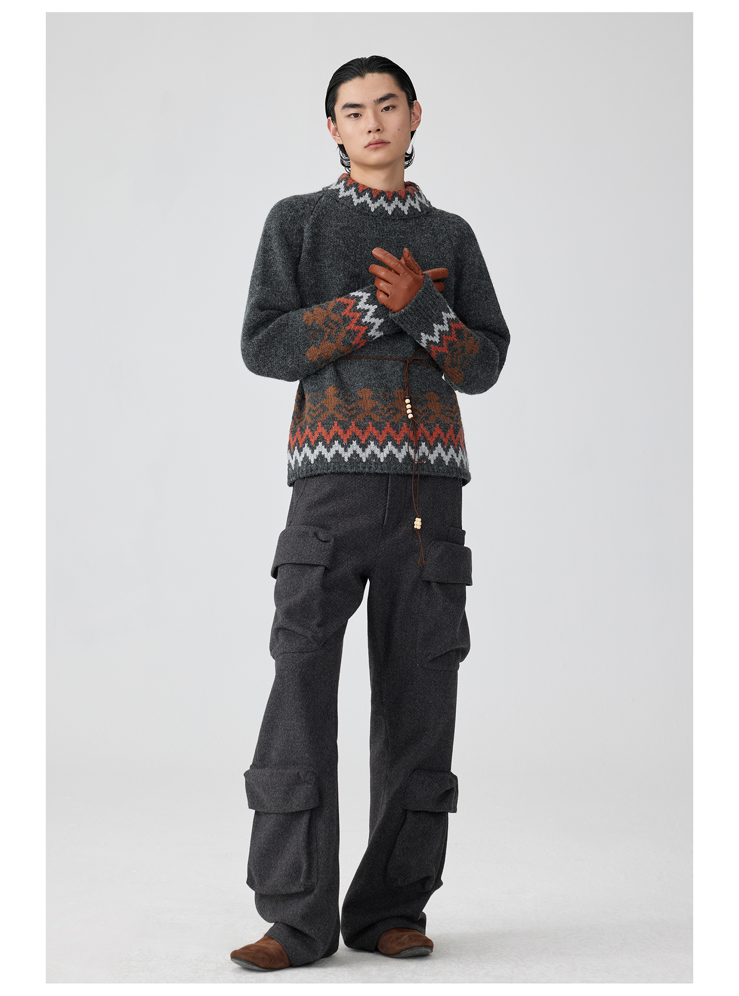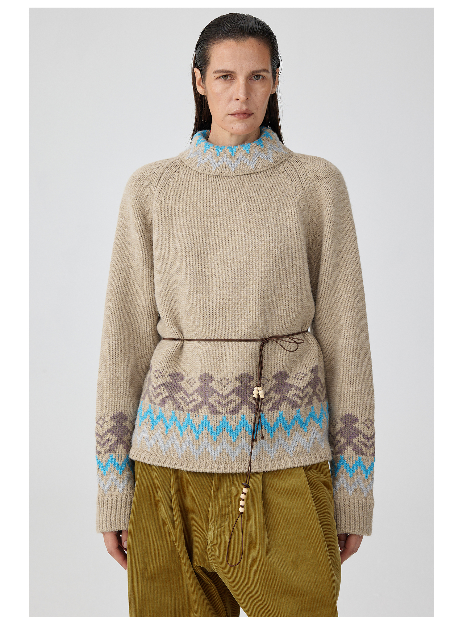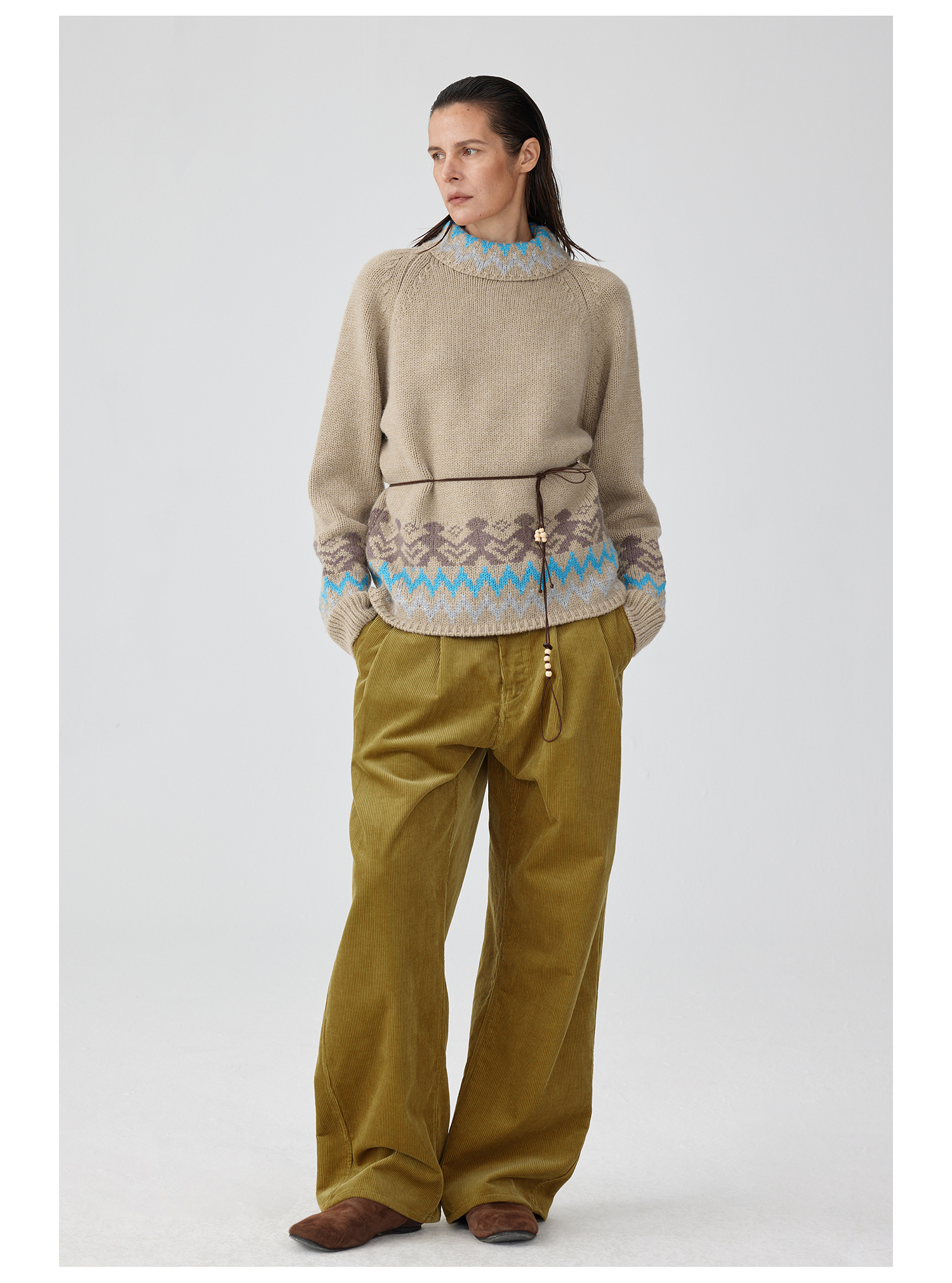 Simple Project/M24199/费尔岛民族图案侧拉链高领毛衣