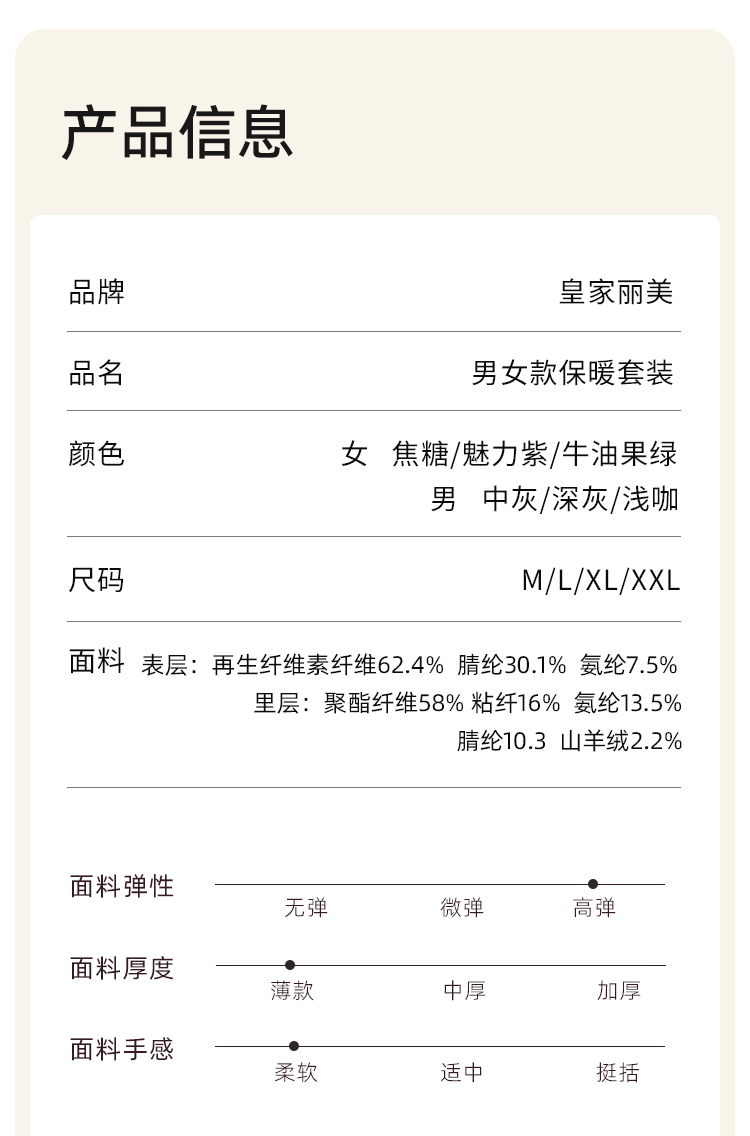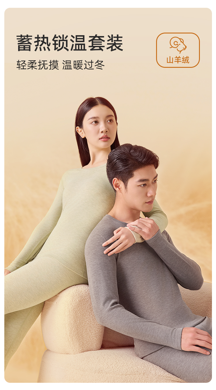 秋冬保暖衣男女款天丝山羊绒310g中厚款保暖内衣套装BNN8F15/BNM8F16