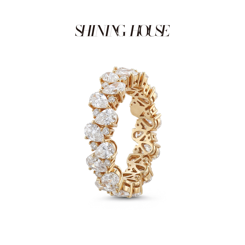 ShiningHouse[培育] 18k金钻石戒指 排钻戒指2克拉钻人工真钻人造钻石K金戒指设计感豪华群镶钻石戒指悦己送礼臻选【此商品不支持7天无理由退货退款】预计3日发货