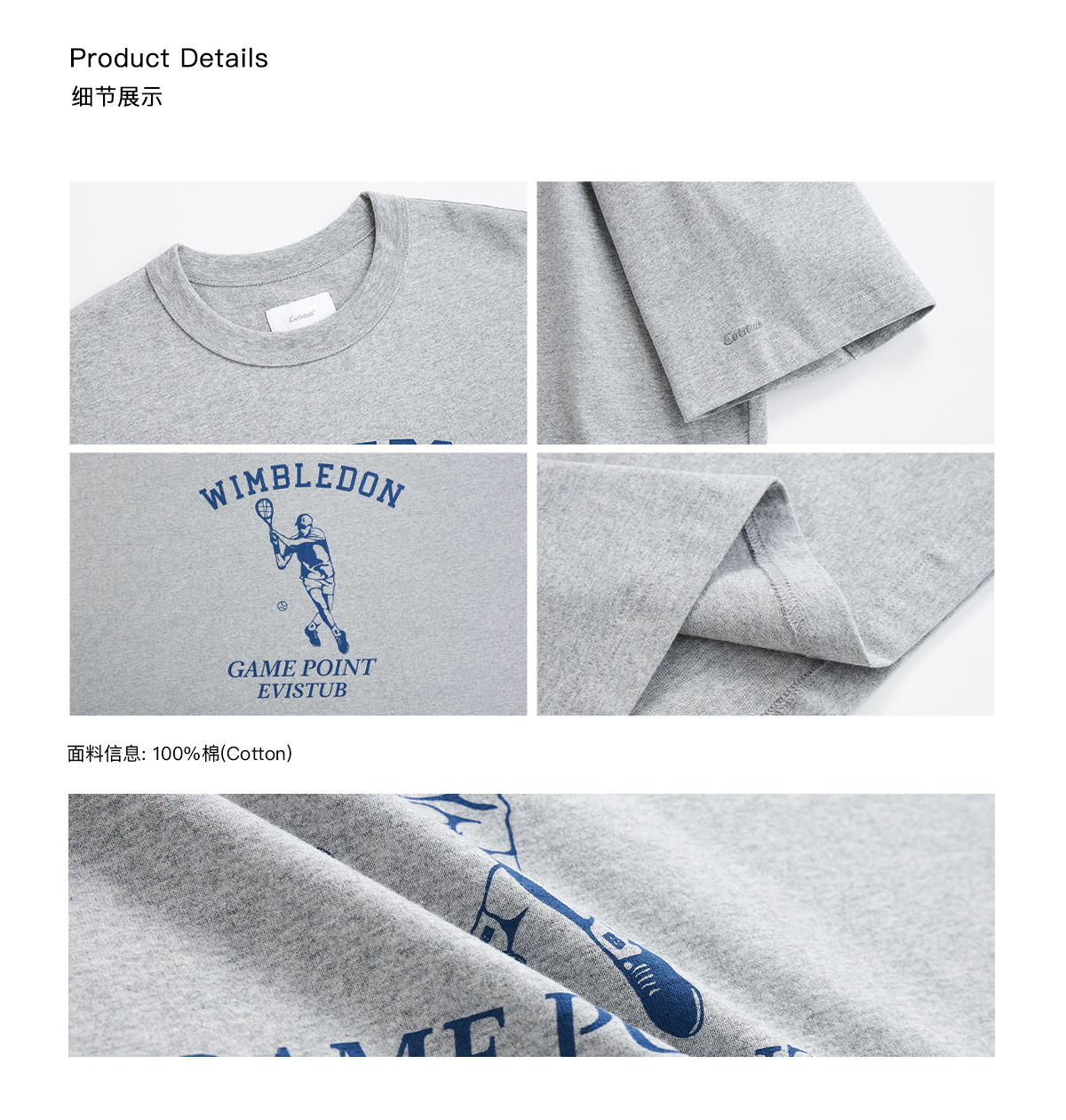 EviStub/E-5XDX625/280G全棉透气日系复古运动字母水浆印花短袖T恤