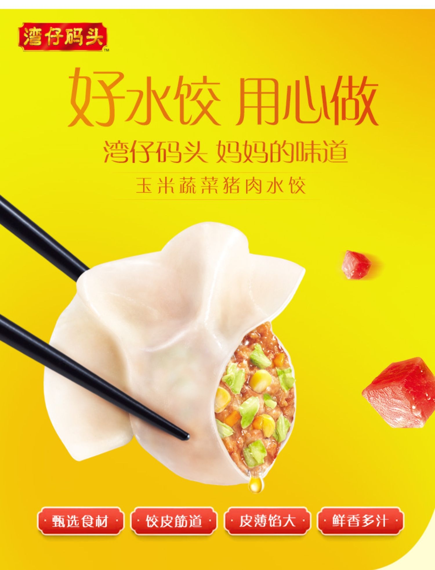 湾仔码头玉米蔬菜猪肉水饺(720g/包 36只装)生产日期:10月