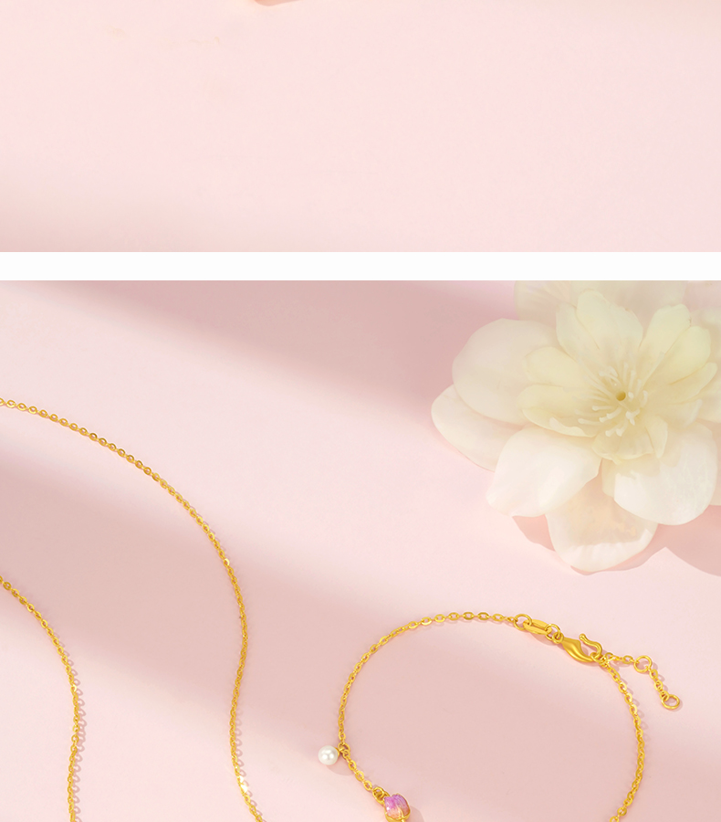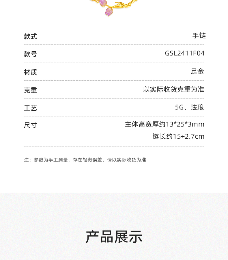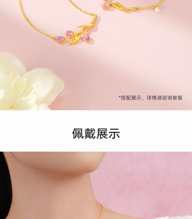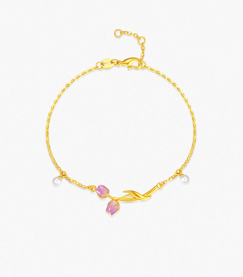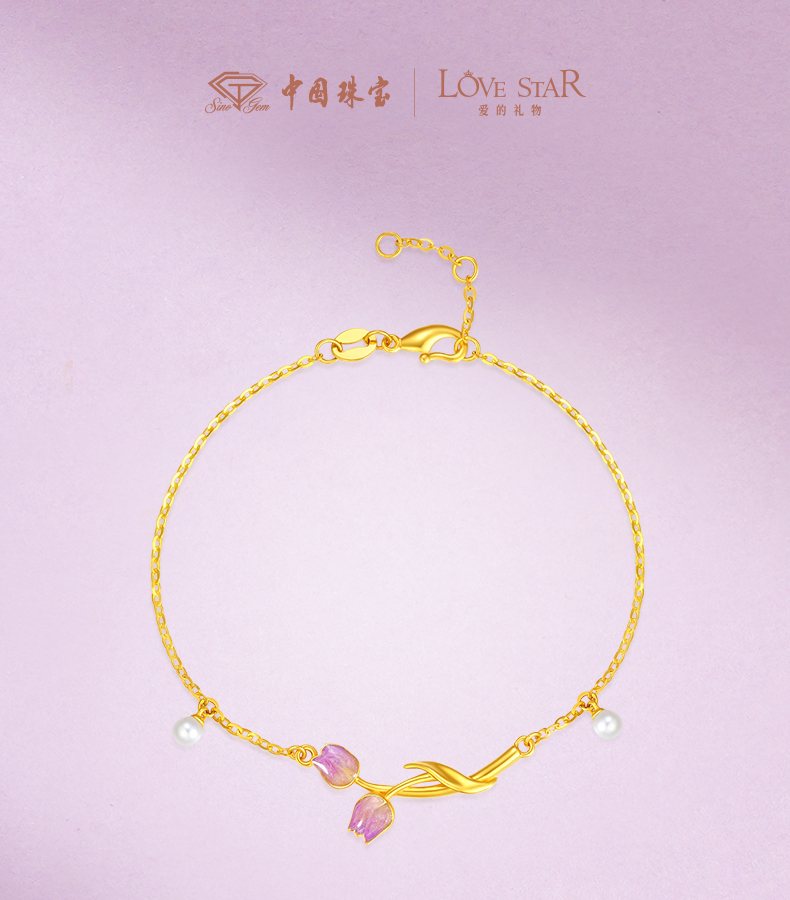 「LOVESTAR-爱的礼物」郁见挚爱足金手链 5G工艺黄金郁金香花朵手饰【Y】