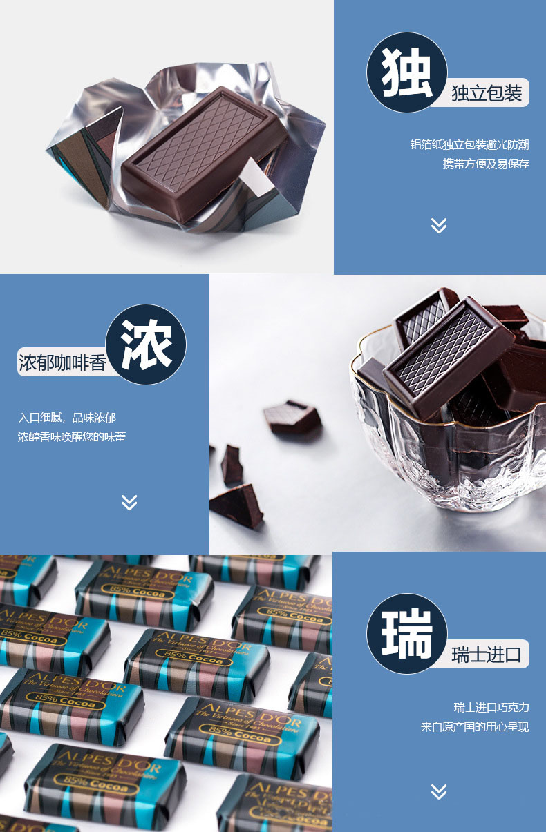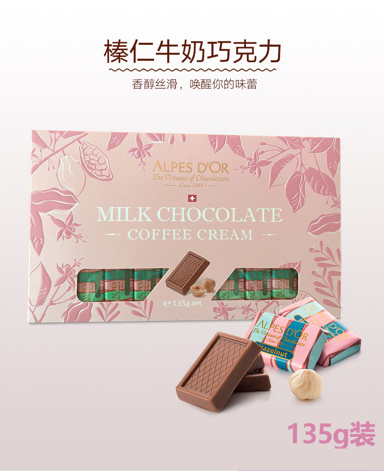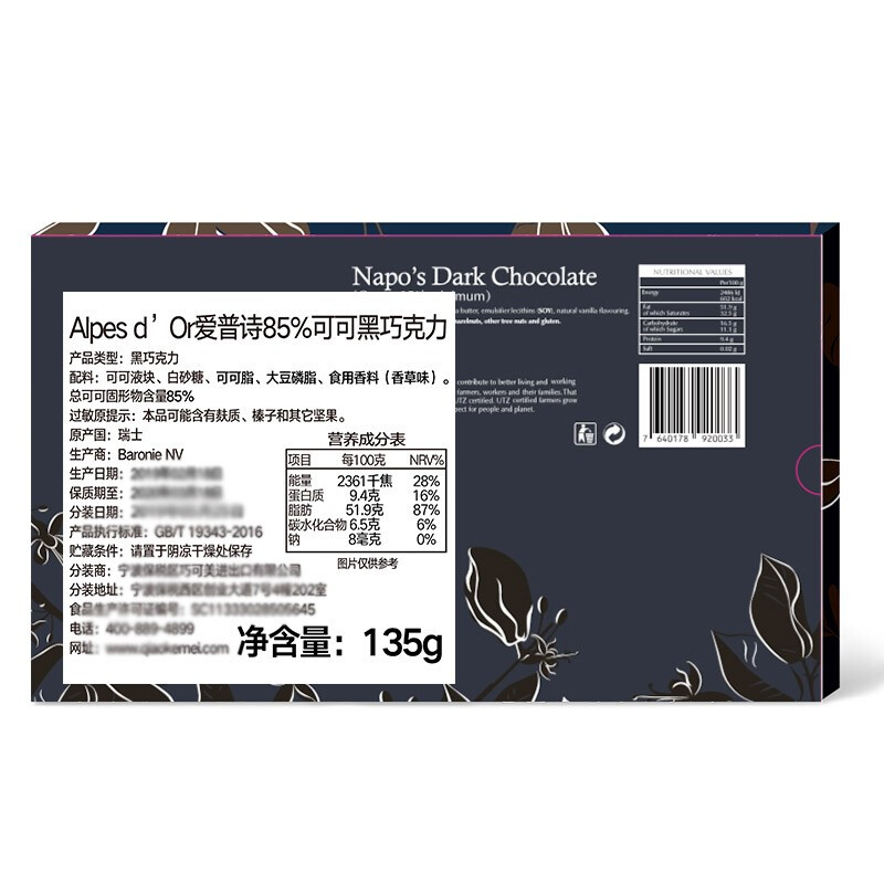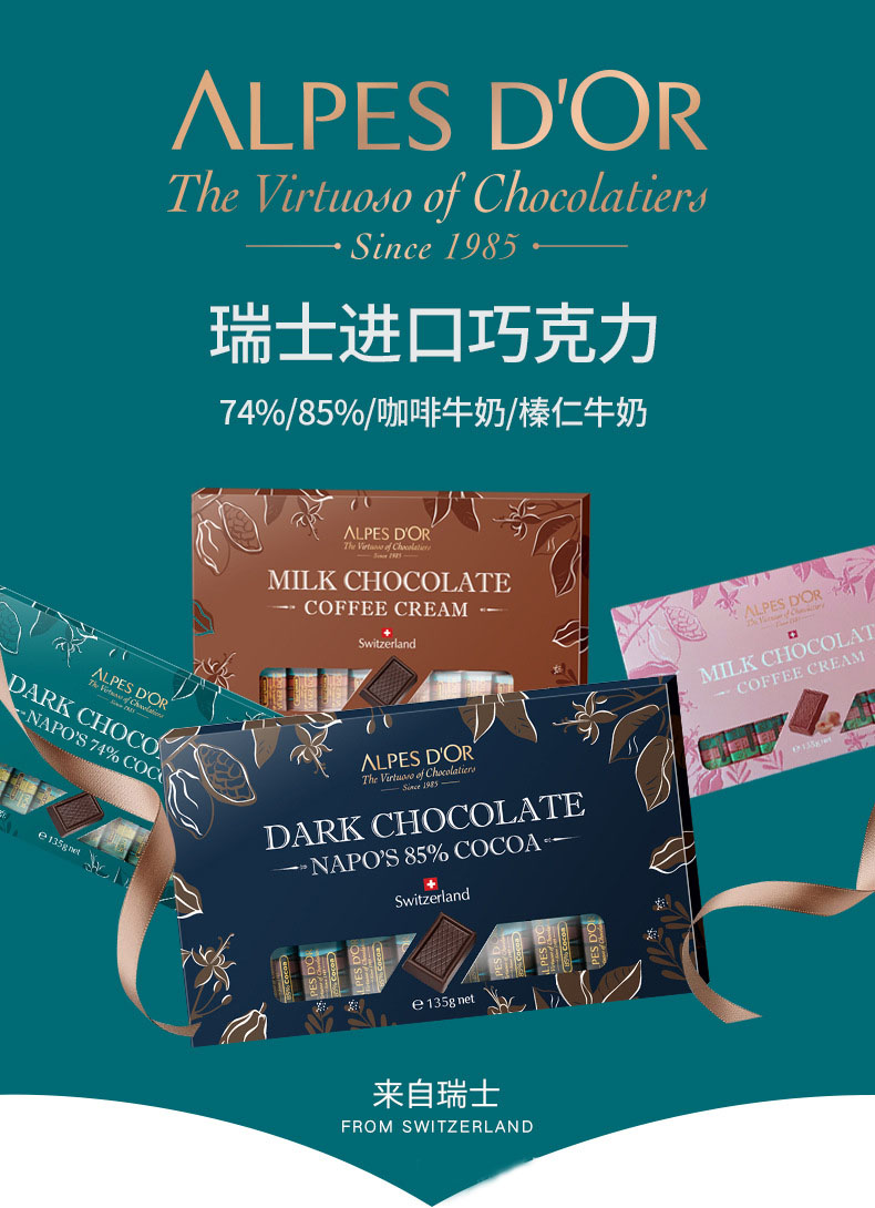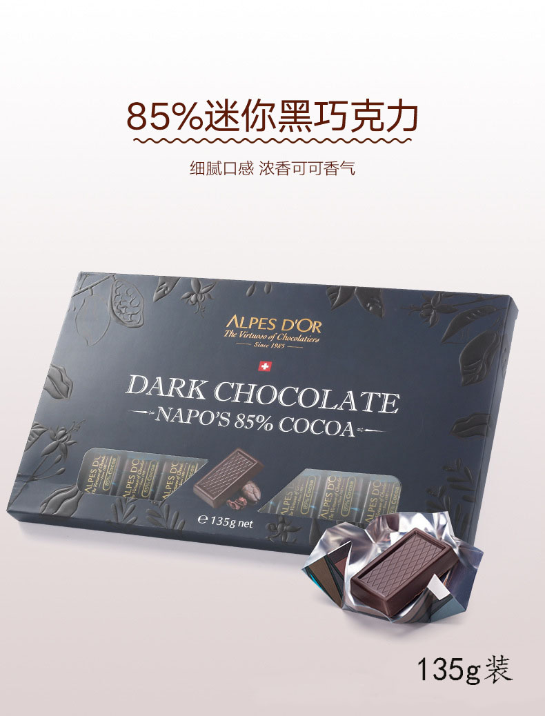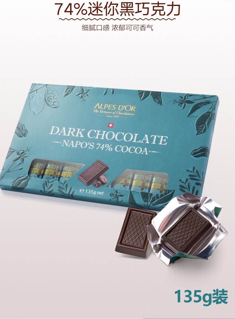【中欧班列精选2盒】瑞士爱普诗巧克力 原装进口Alpes 浓度 74% /85%黑巧克力 牛奶榛仁咖啡巧克力 135g/盒 夏季加冰发货