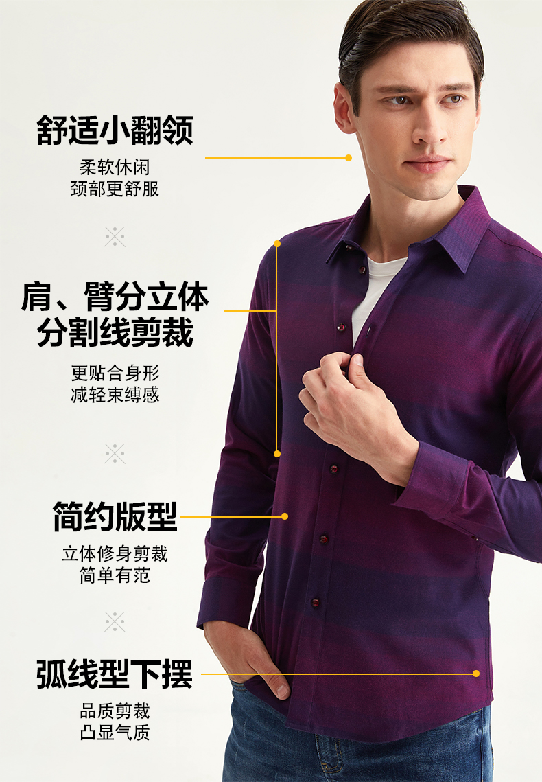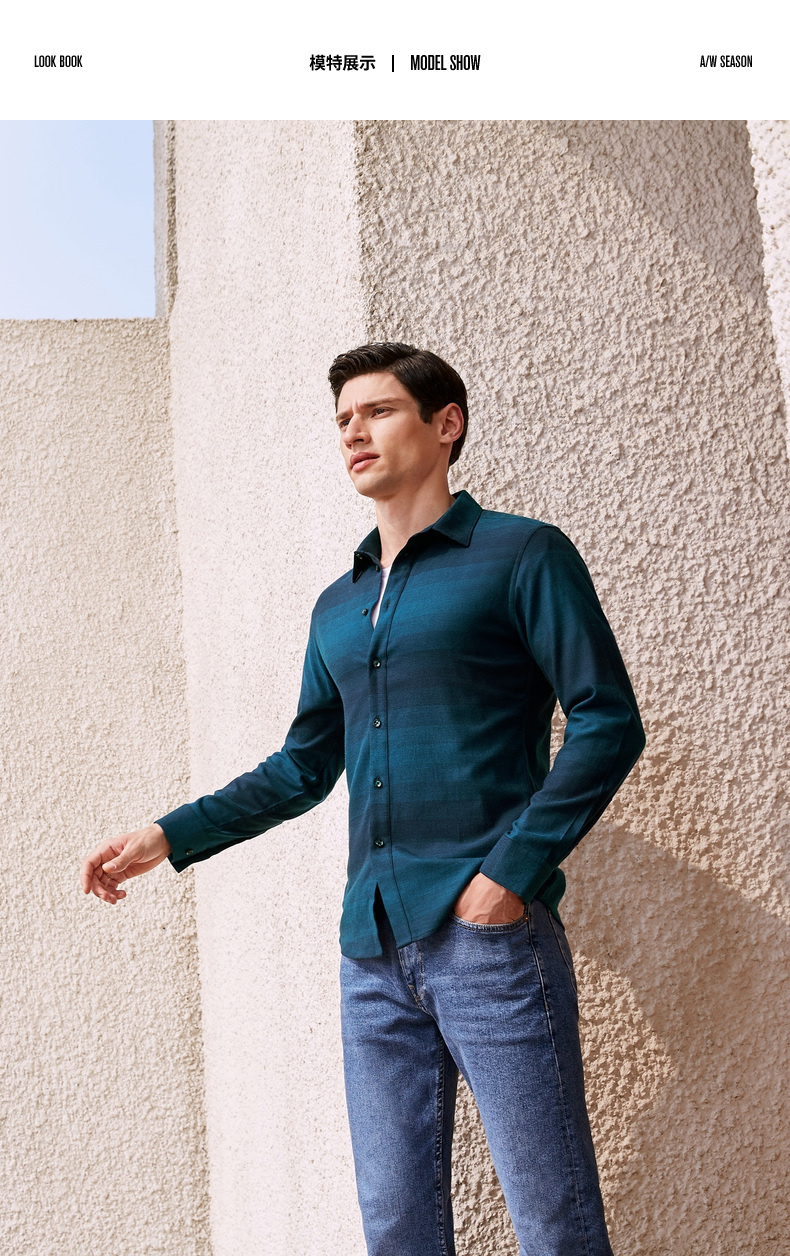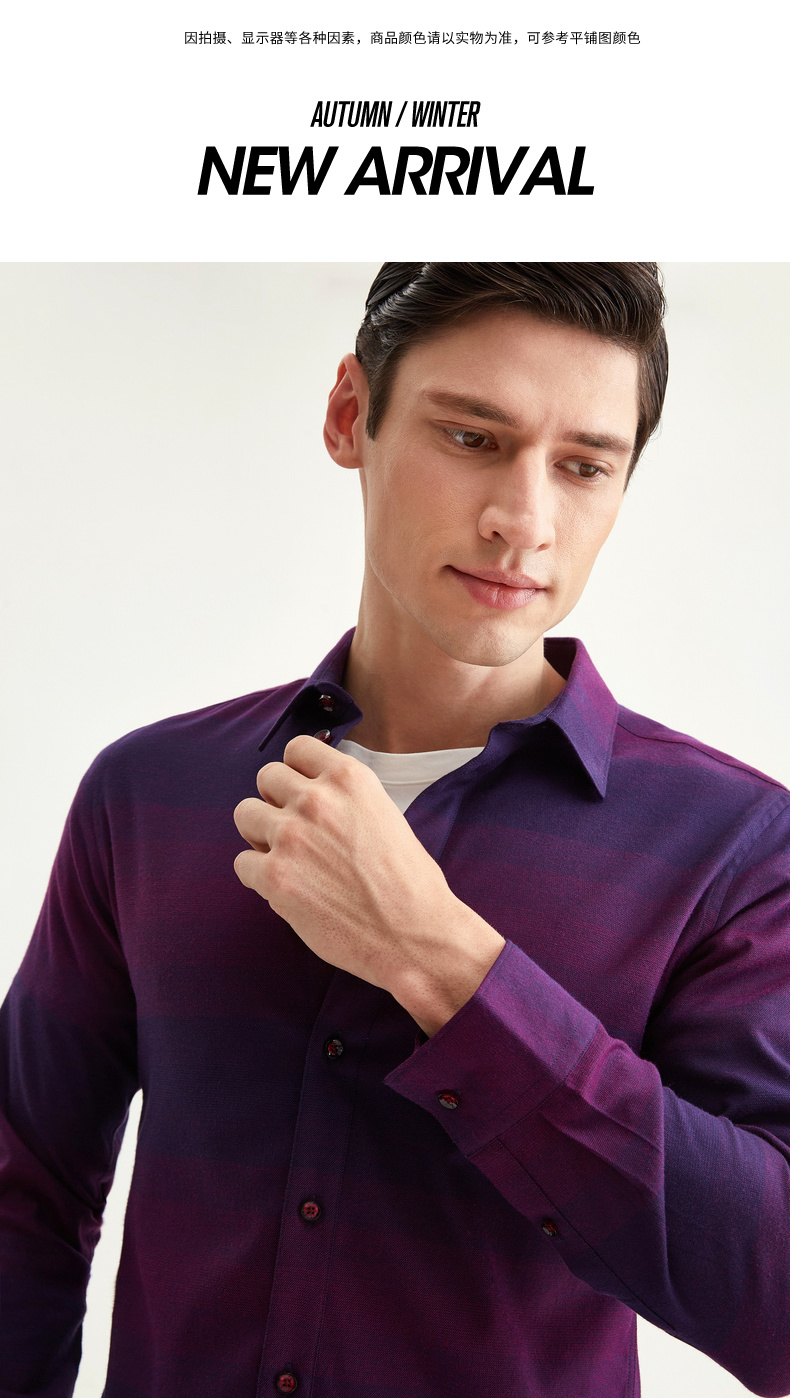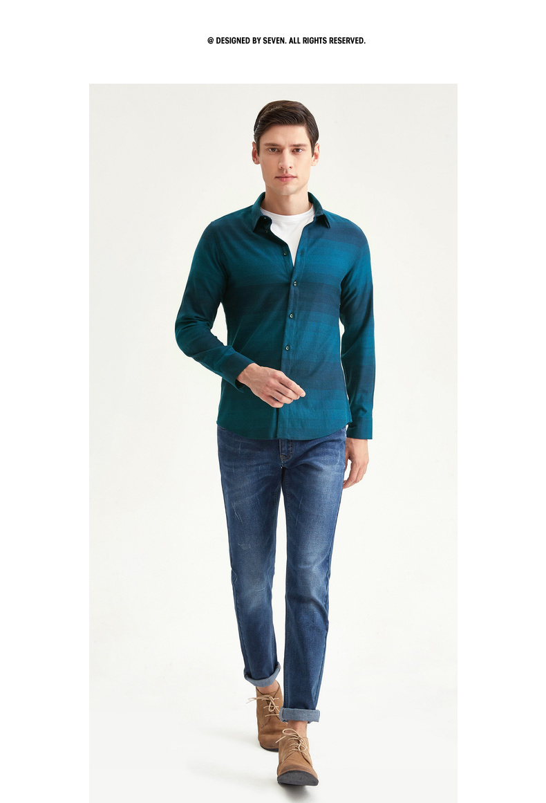 【特价】柒牌男装秋冬季新款长袖衬衫厚款男士休闲上衣时尚中青年衬衣 117A72030