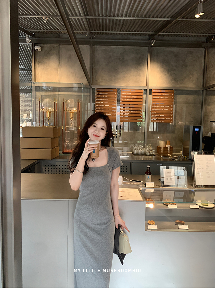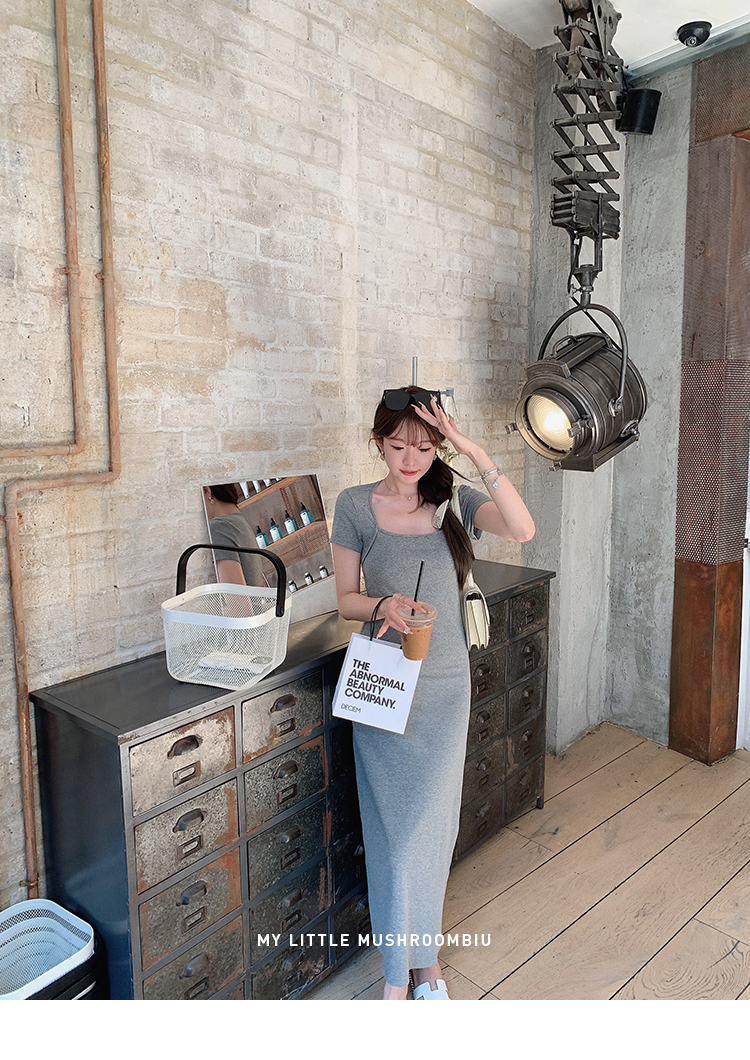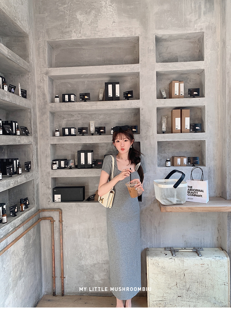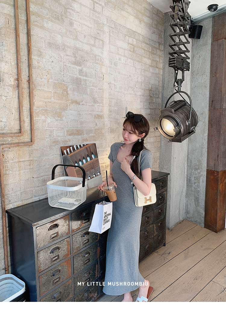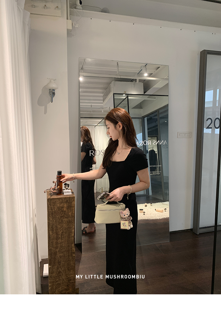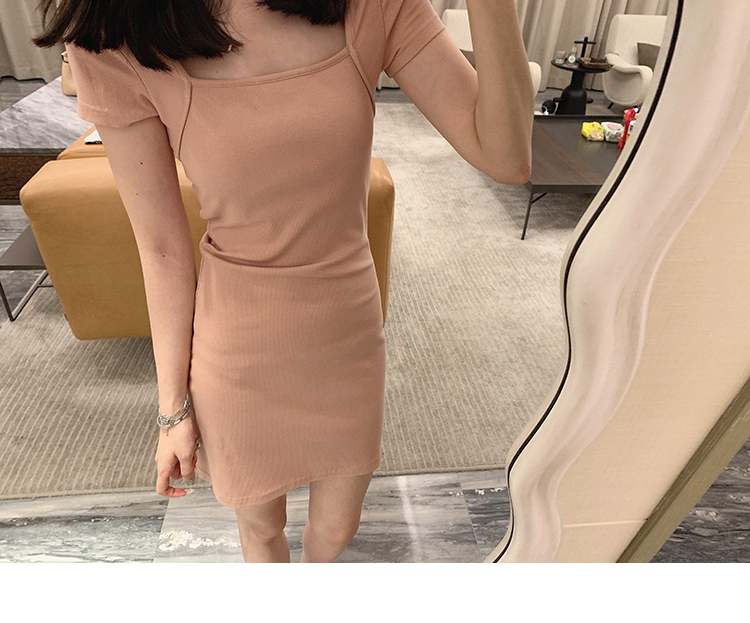 金蘑菇菇 新秀 超模裙/ 自带胸垫百搭纯色遮肉修身t裙连衣裙