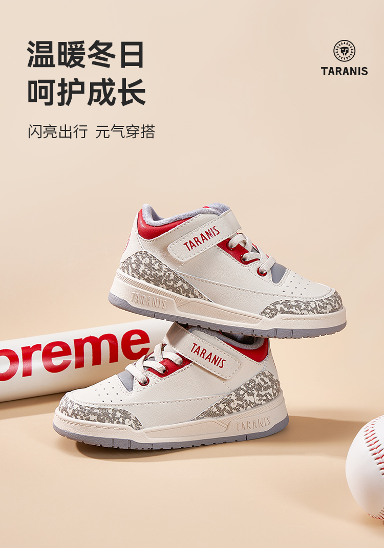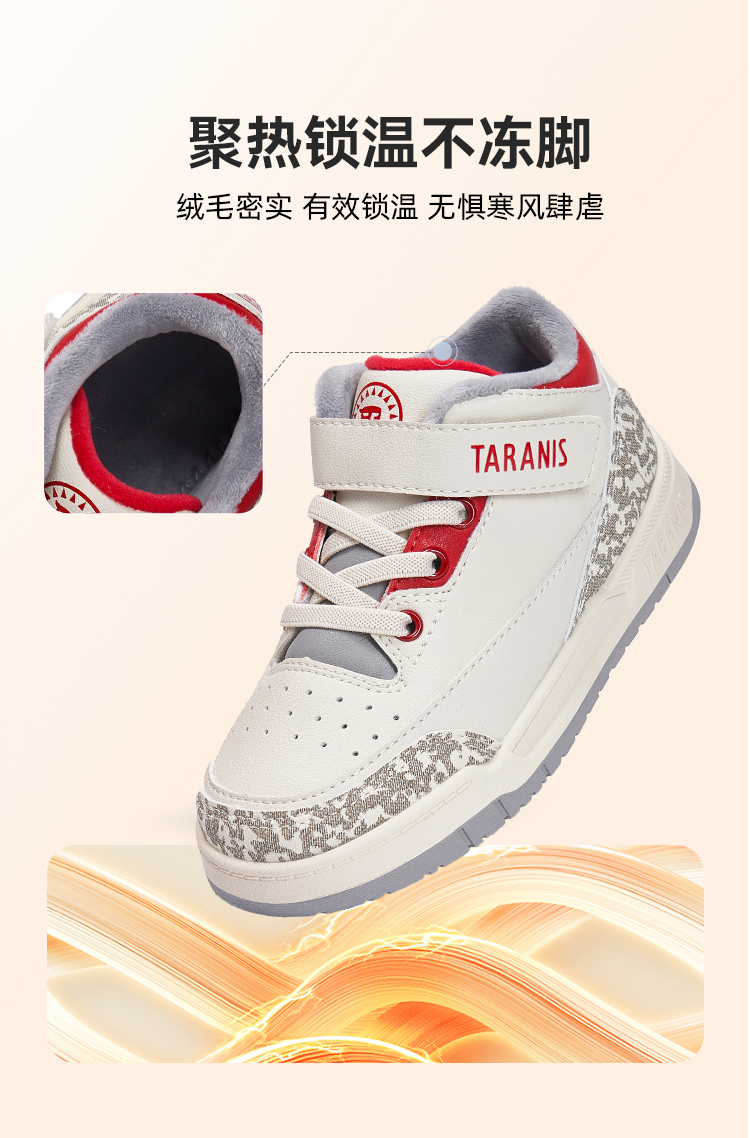 泰兰尼斯小童段冬款加绒简约时尚运动板鞋T02X3D3289