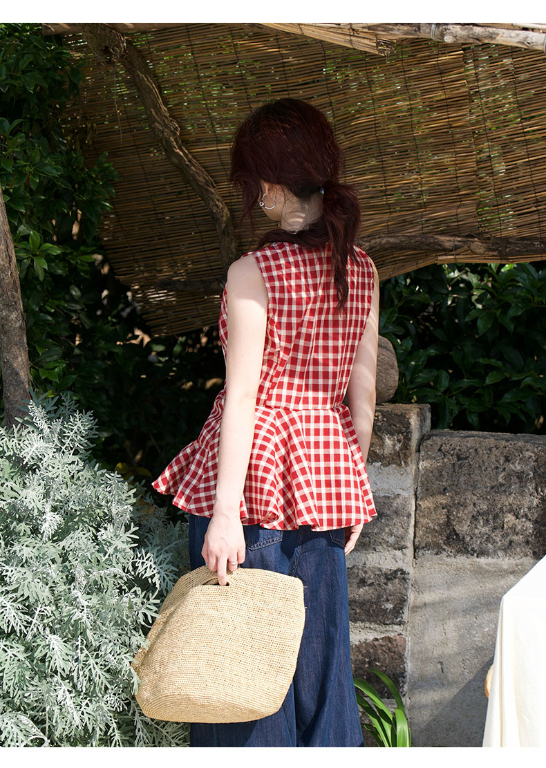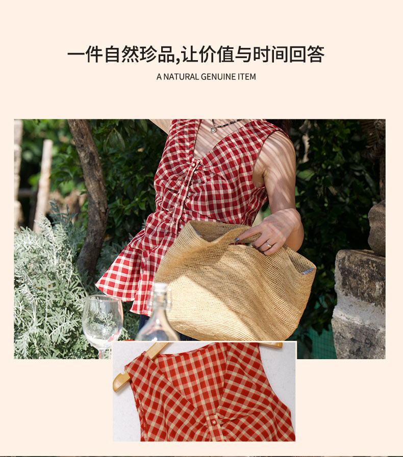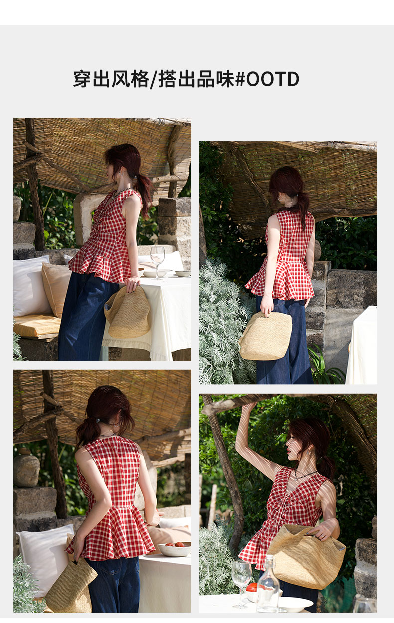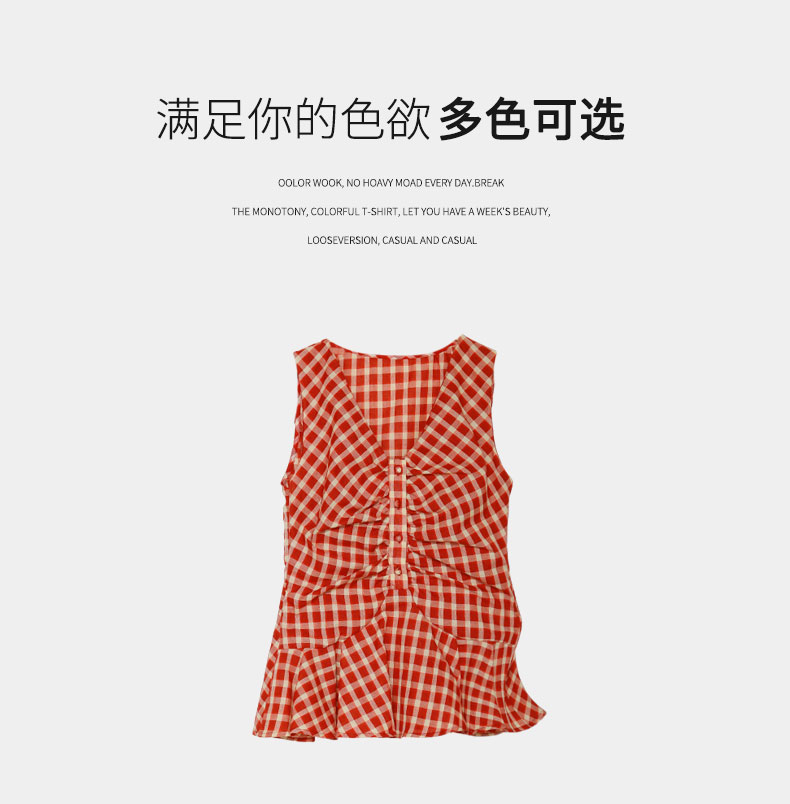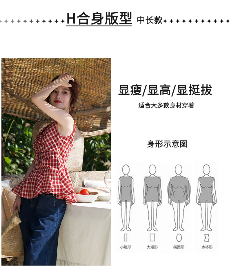 【门店同款】ENJOY夏季“夏日番情”甜美红格上衣 162796515