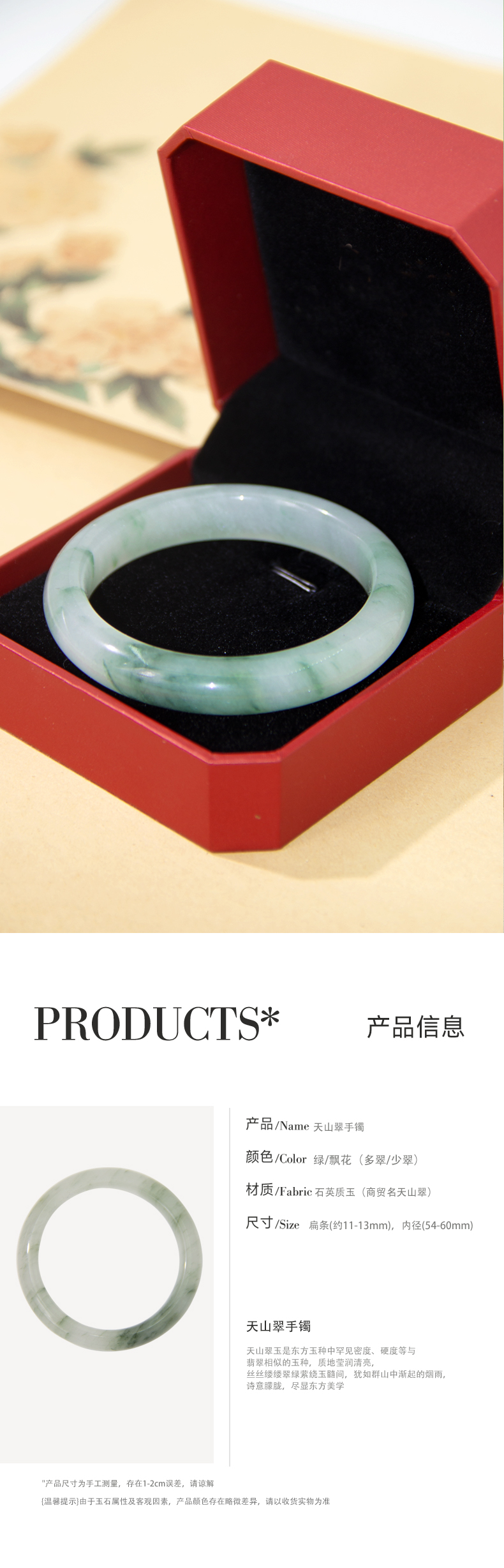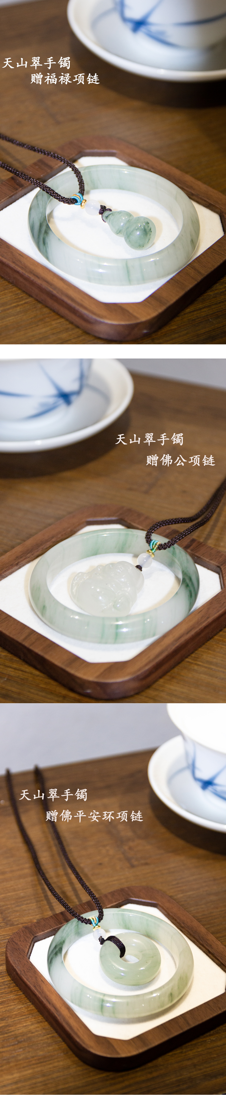 心选丨【下单加赠同材质佛公|平安环|福禄吊坠】GIRATI 新中式系列天山翠手镯 色泽温润 天然原石打造 带礼盒证书