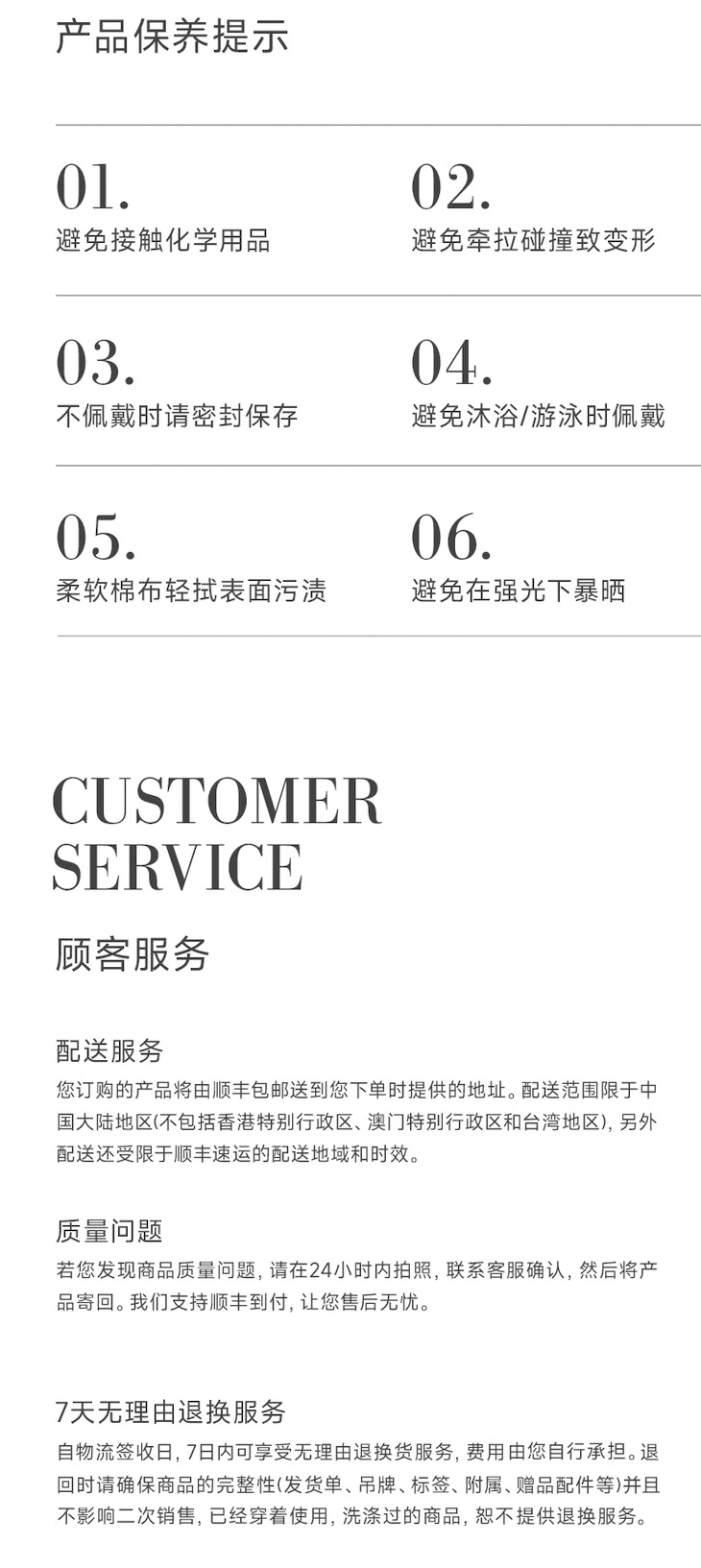 支持7天无理由退货(不得影响二次销售:撕掉标签后不能售后,试戴请不要撕毁标签!)
