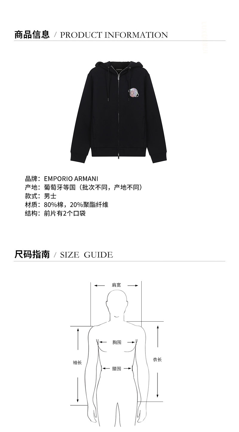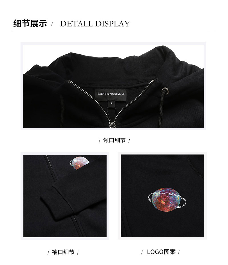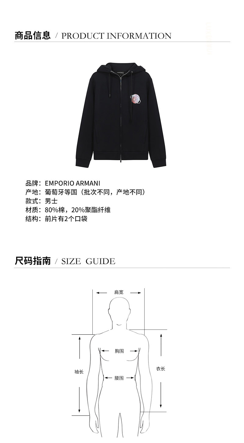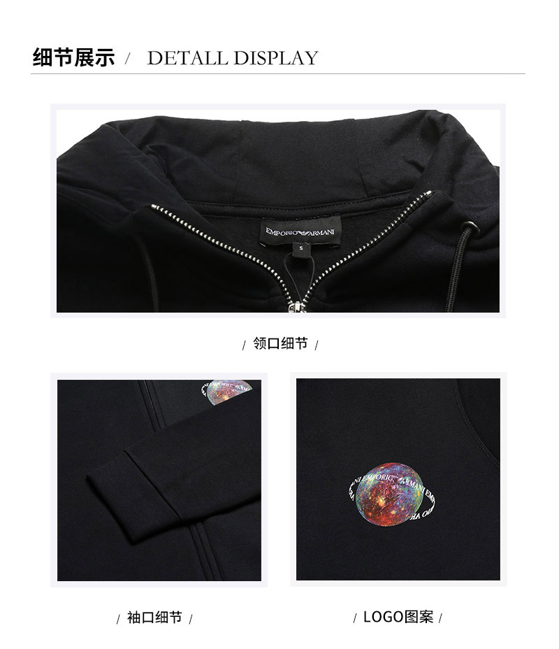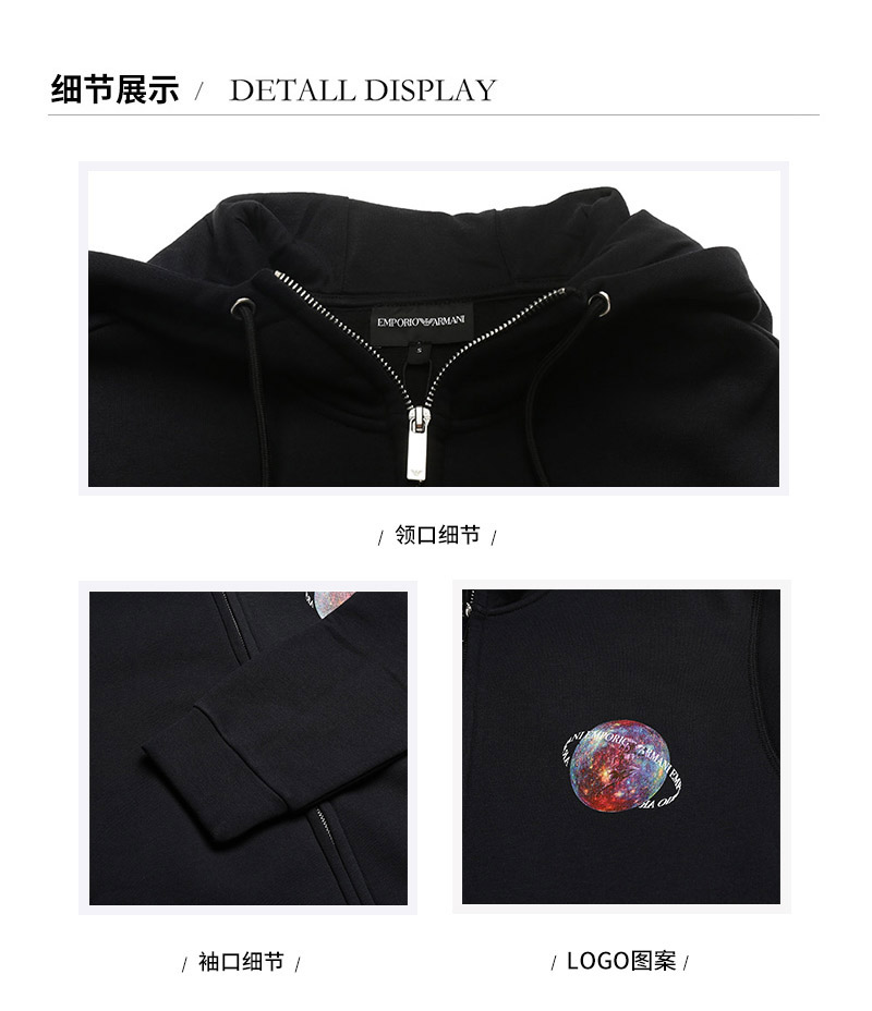 Emporio Armani/安普里奥阿玛尼 男卫衣男士棉质加绒款连帽拉链上衣外套 6K1B8P 1JM3Z