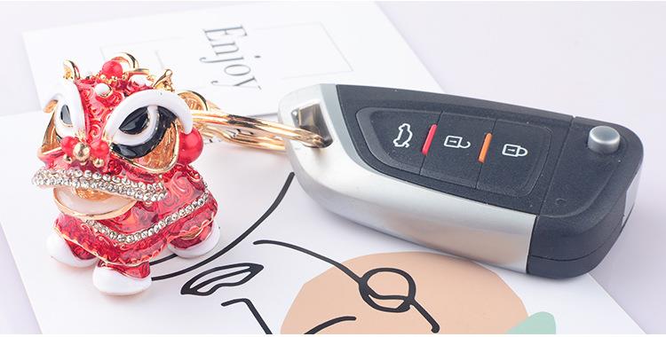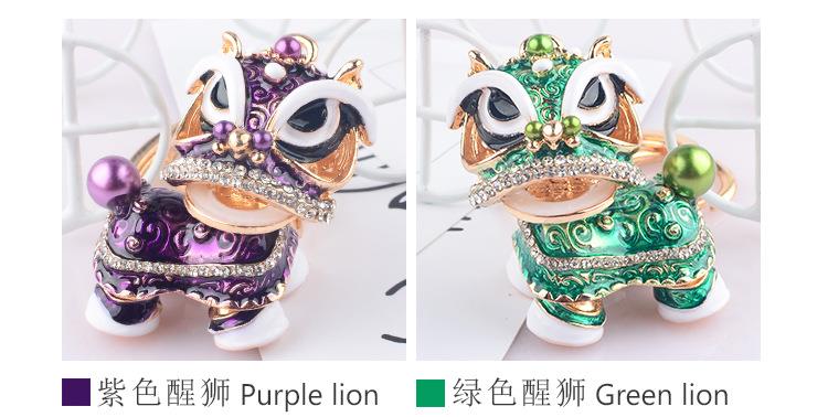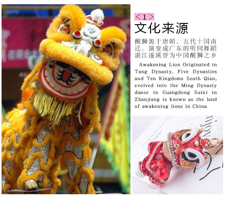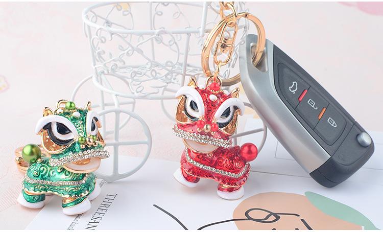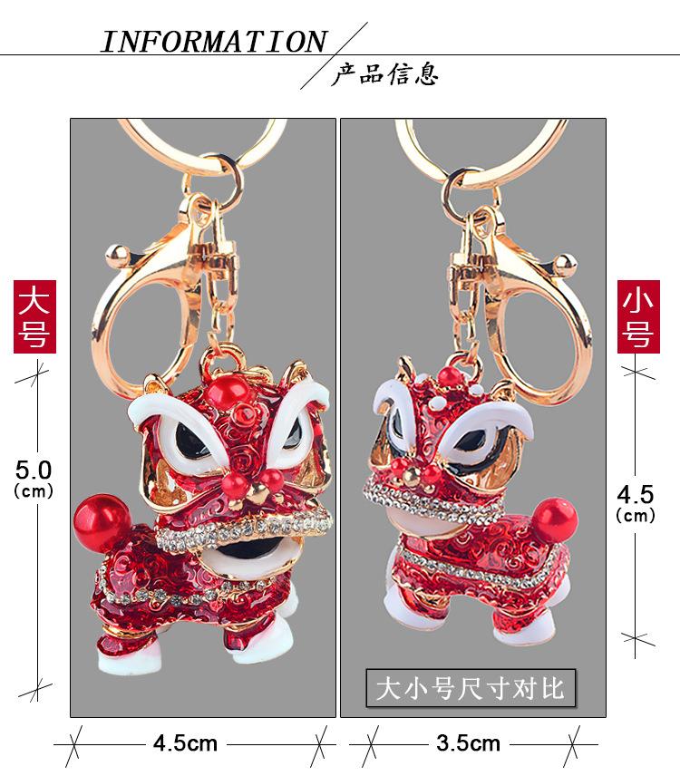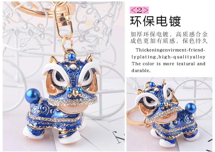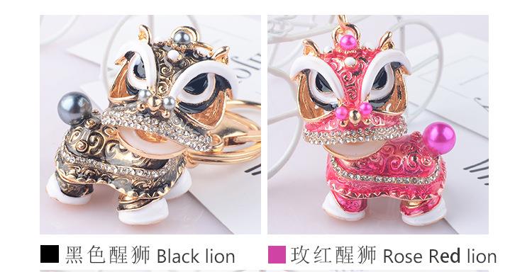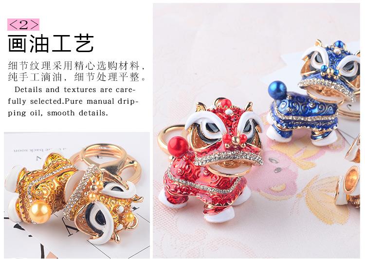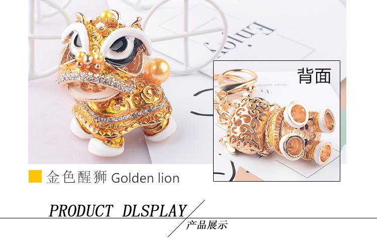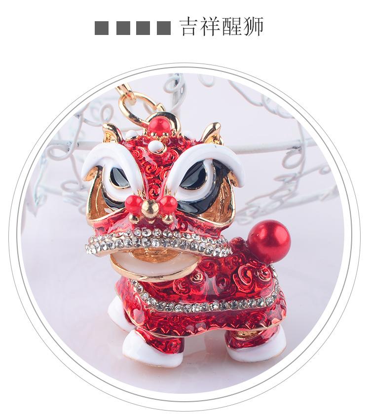 创意礼品中国风狮子镶钻麒麟汽车钥匙扣挂件舞狮合金卡通小醒狮
