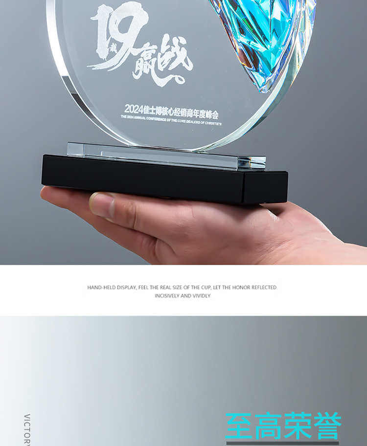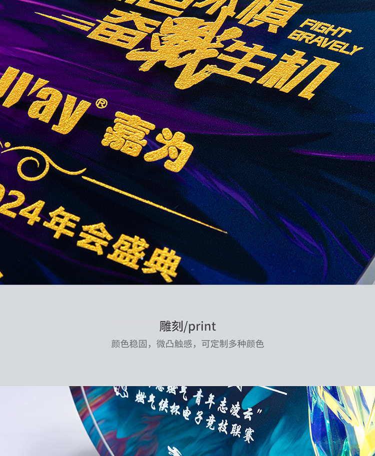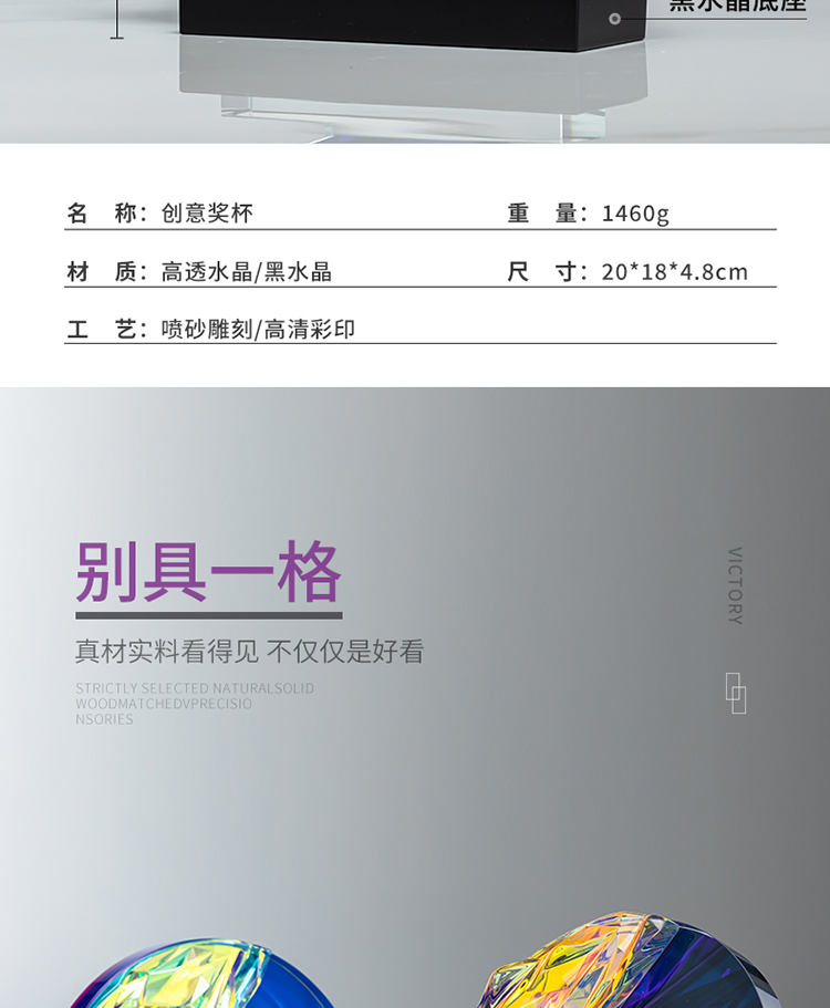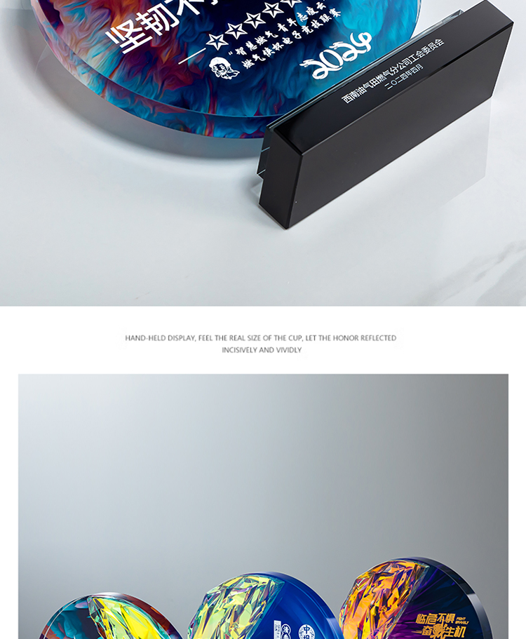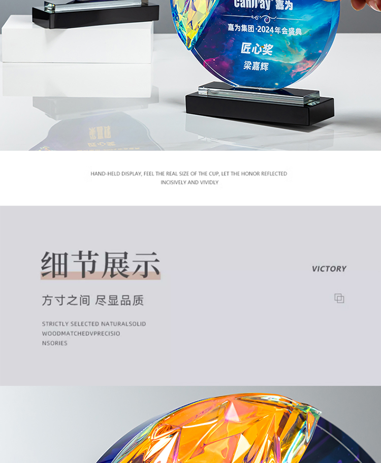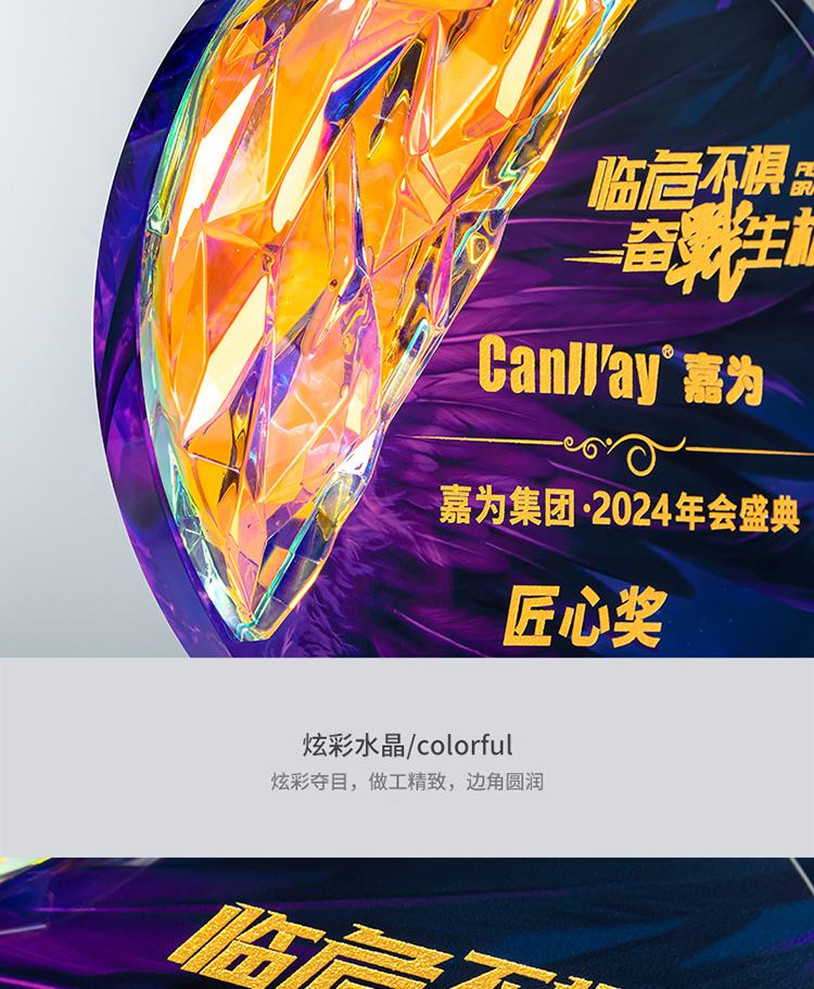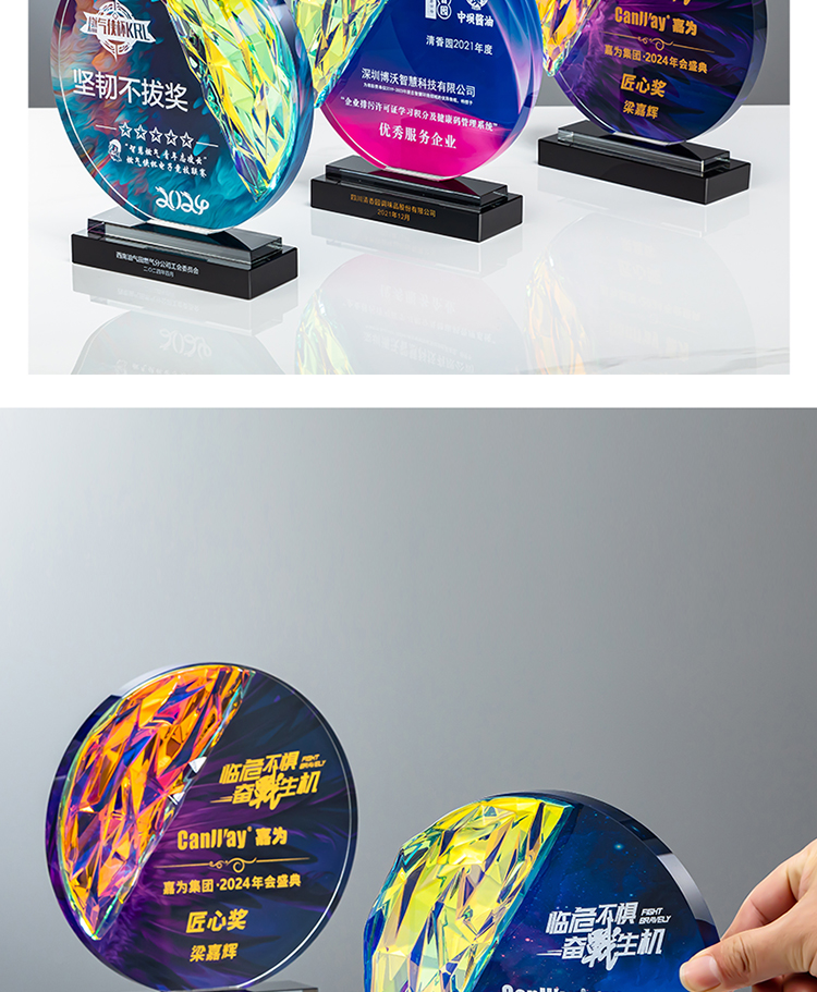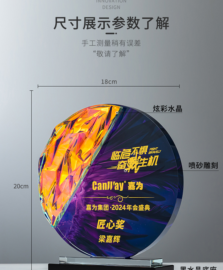 定制水晶奖杯圆形配琉璃奖牌炫彩七彩比赛运动会表彰高档年会奖品