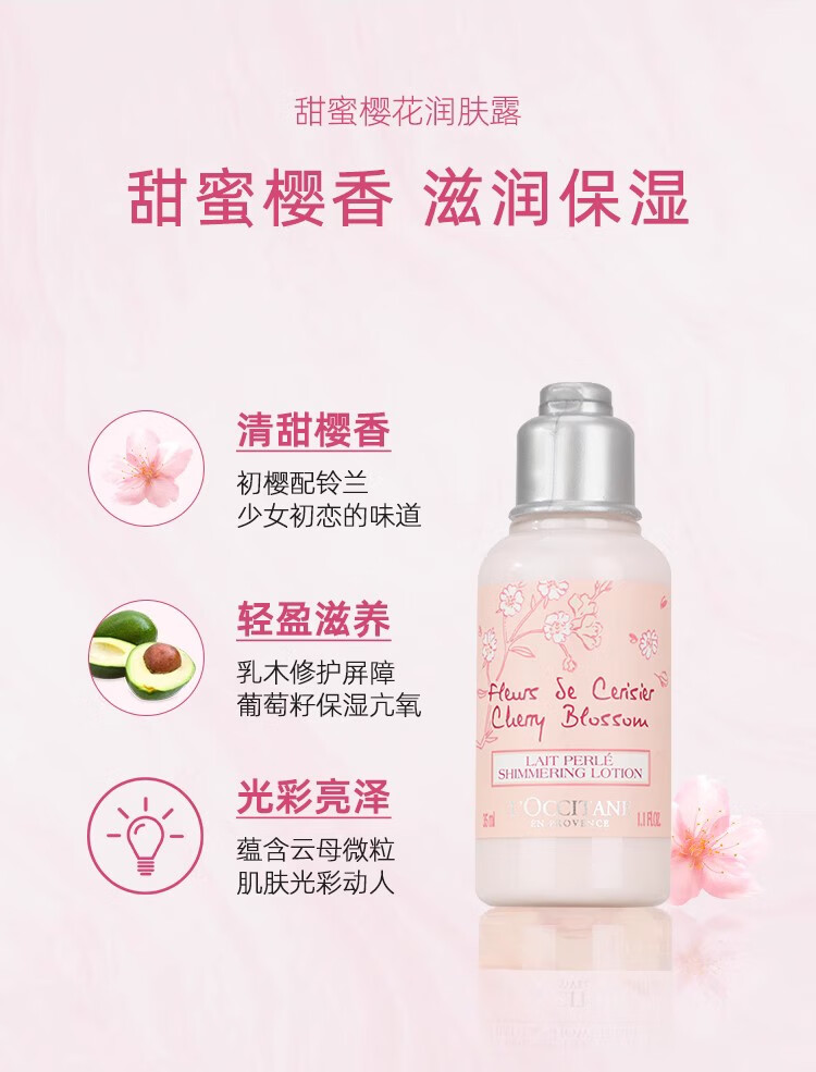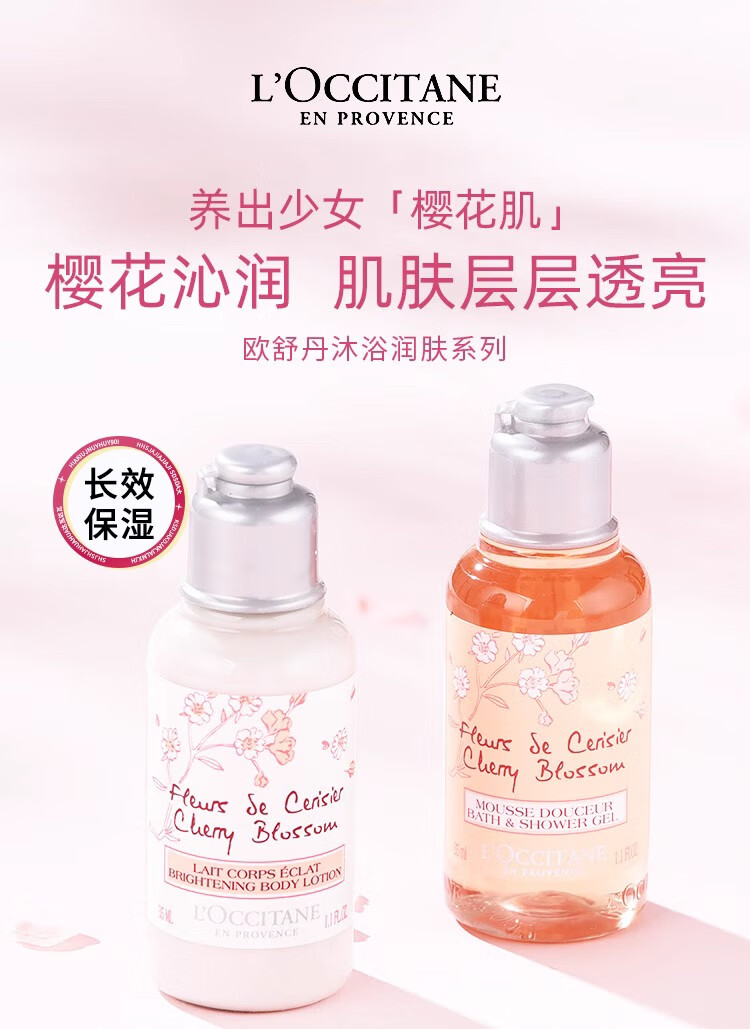 【小样】欧舒丹甜蜜樱花香氛亮采润肤乳/沐浴啫喱35ml 清甜樱花香光滑嫩肤 102314/102315