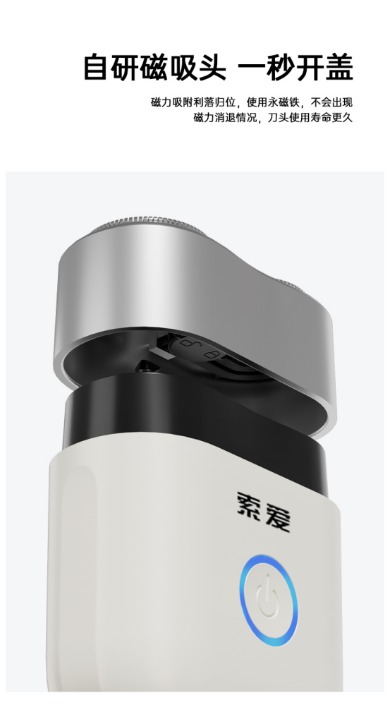 磁吸头+ 弧面双环刀网设计,剃须效率max,全身水洗 随便冲一下就可以很干净