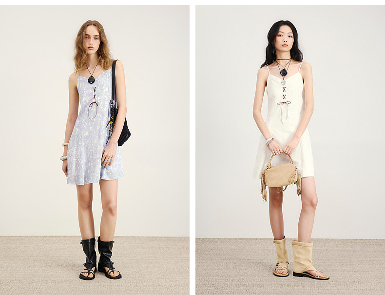 lost in echo2026年春夏新款V领绑带刺绣修身小A型显瘦连衣裙女