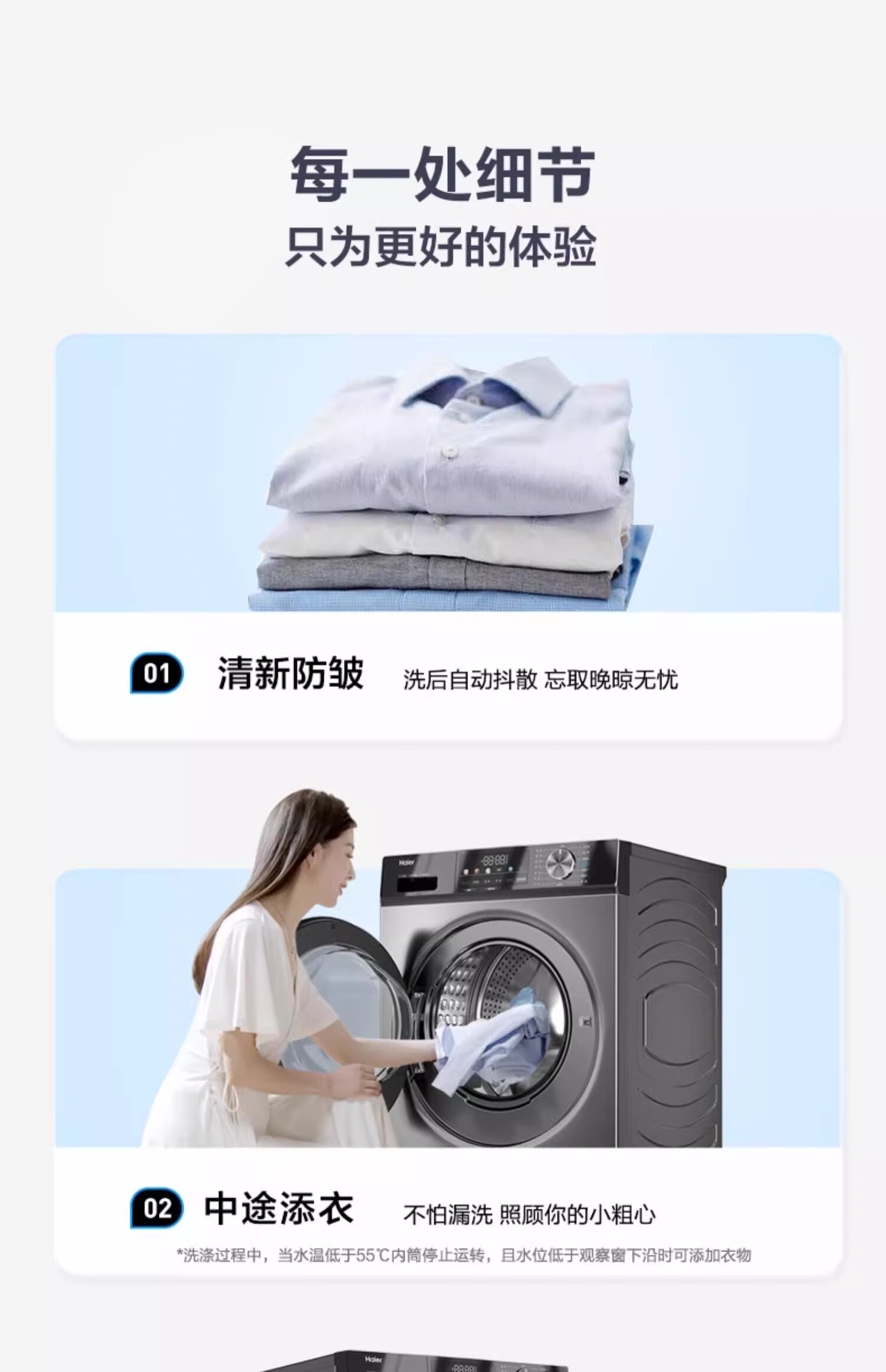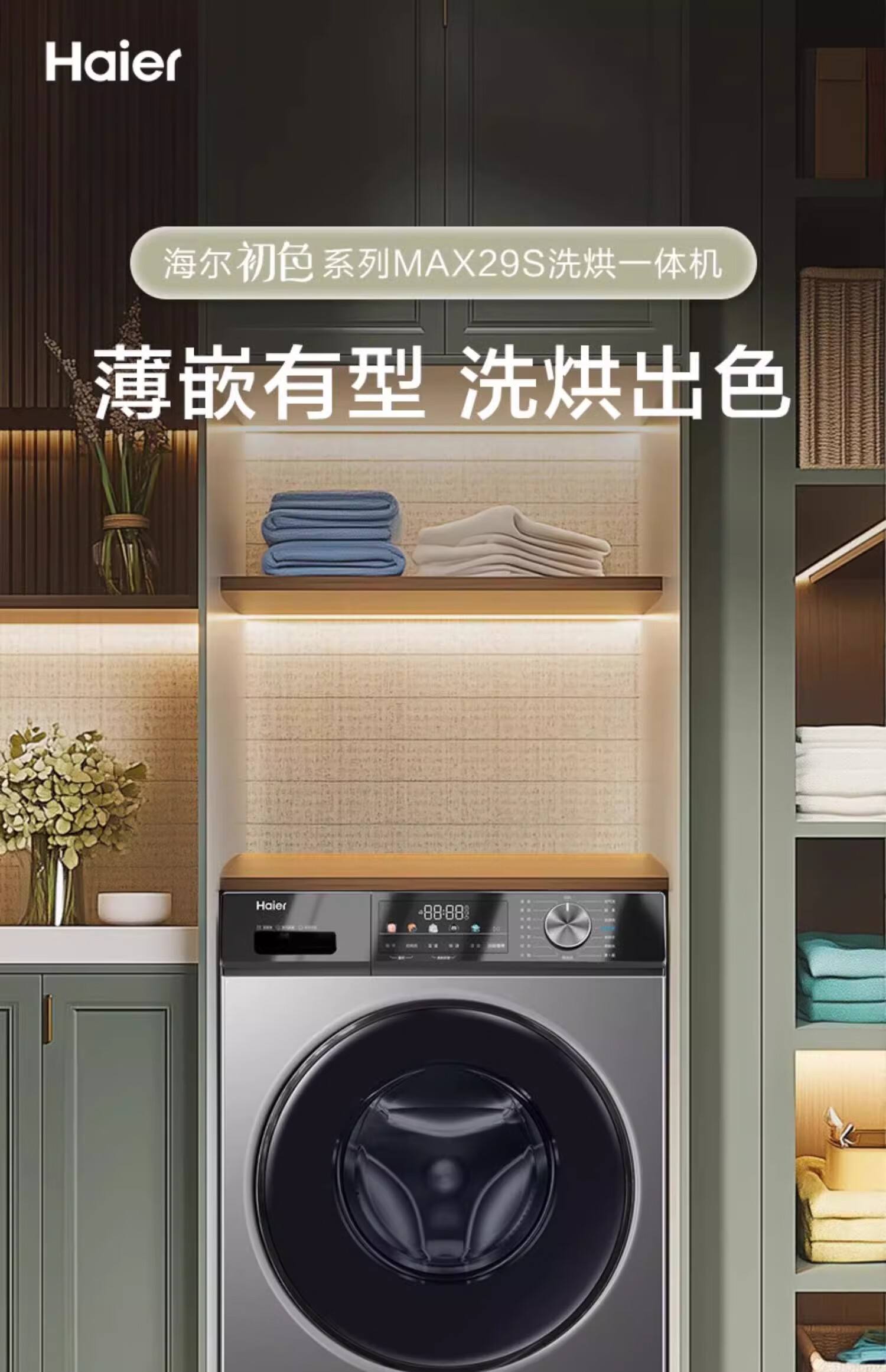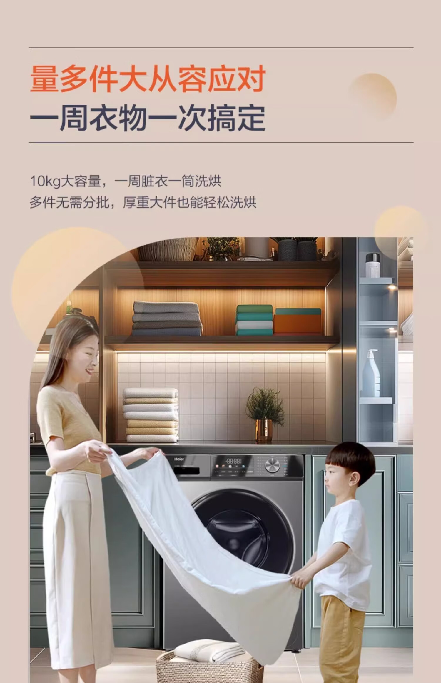 海尔(Haier)全自动滚筒洗衣机 10公斤家用洗烘一体机 初色系列MAX29S 一级能效省电省水 EG100HMAX29S