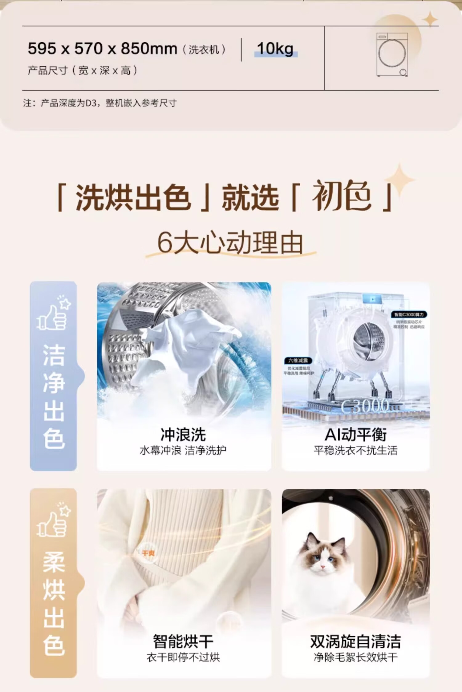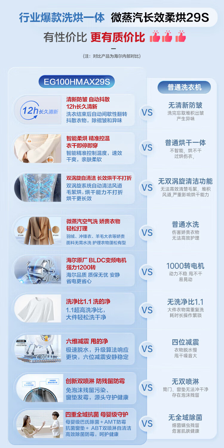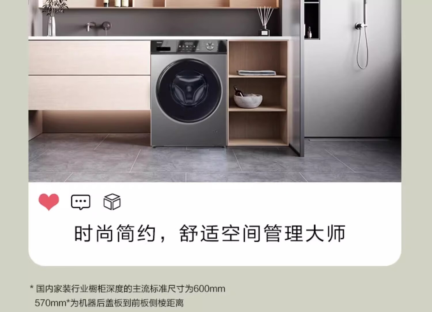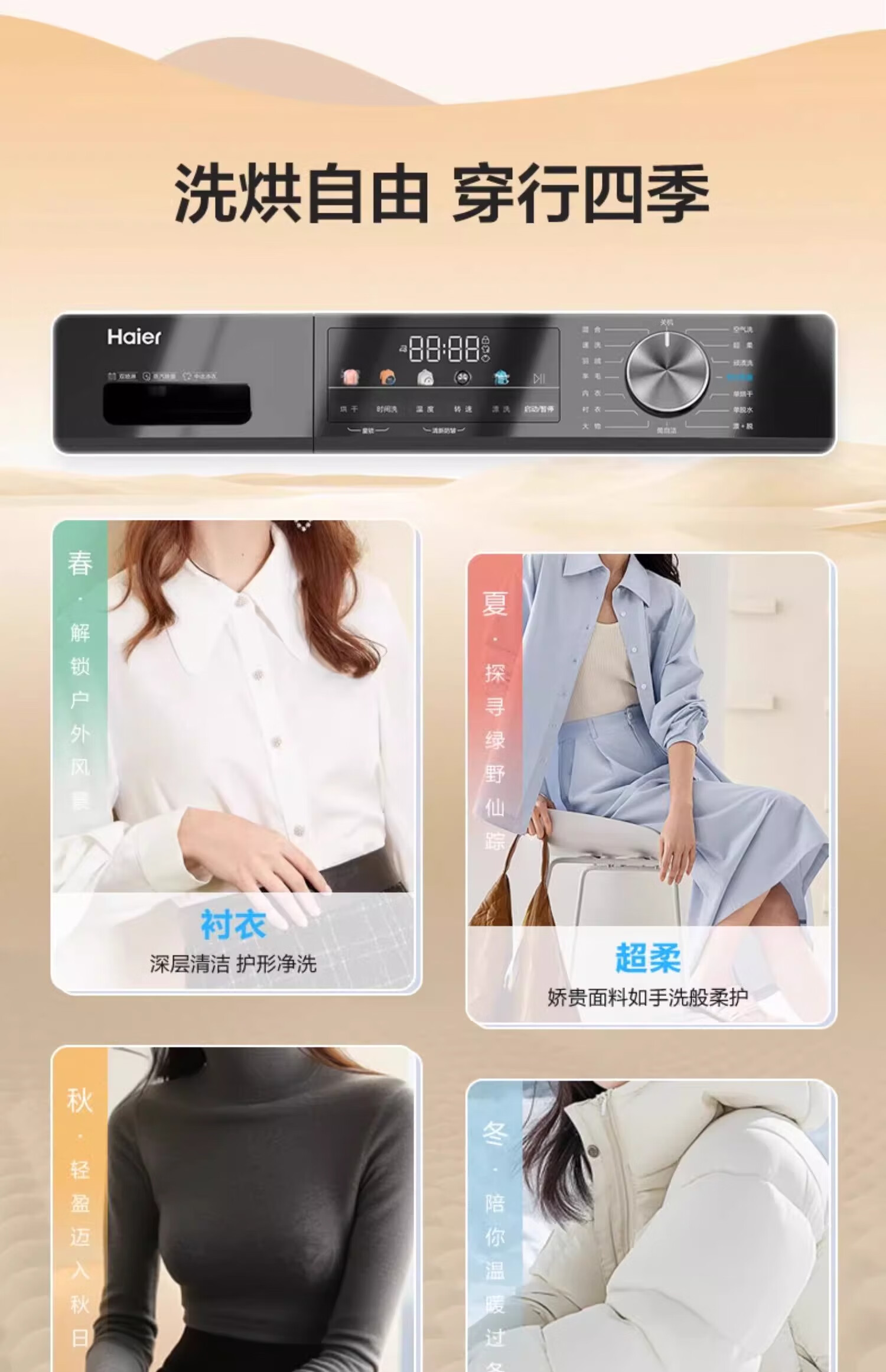 海尔(Haier)全自动滚筒洗衣机 10公斤家用洗烘一体机 初色系列MAX29S 一级能效省电省水 EG100HMAX29S