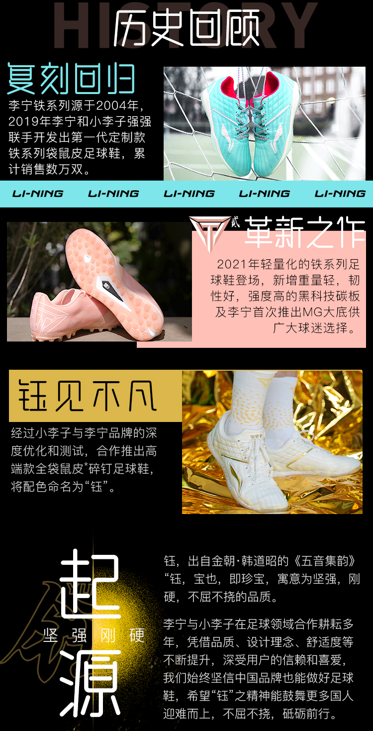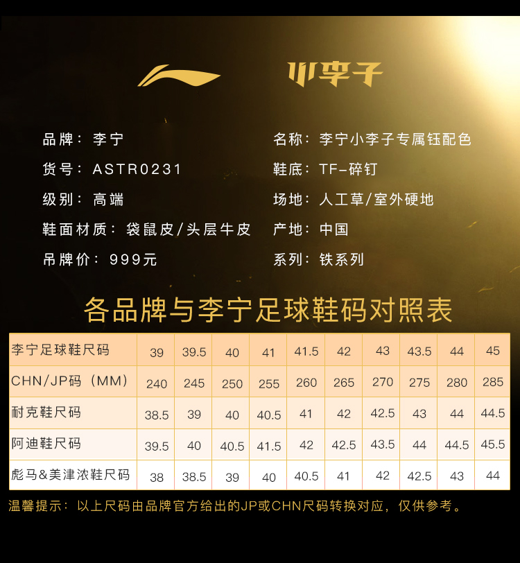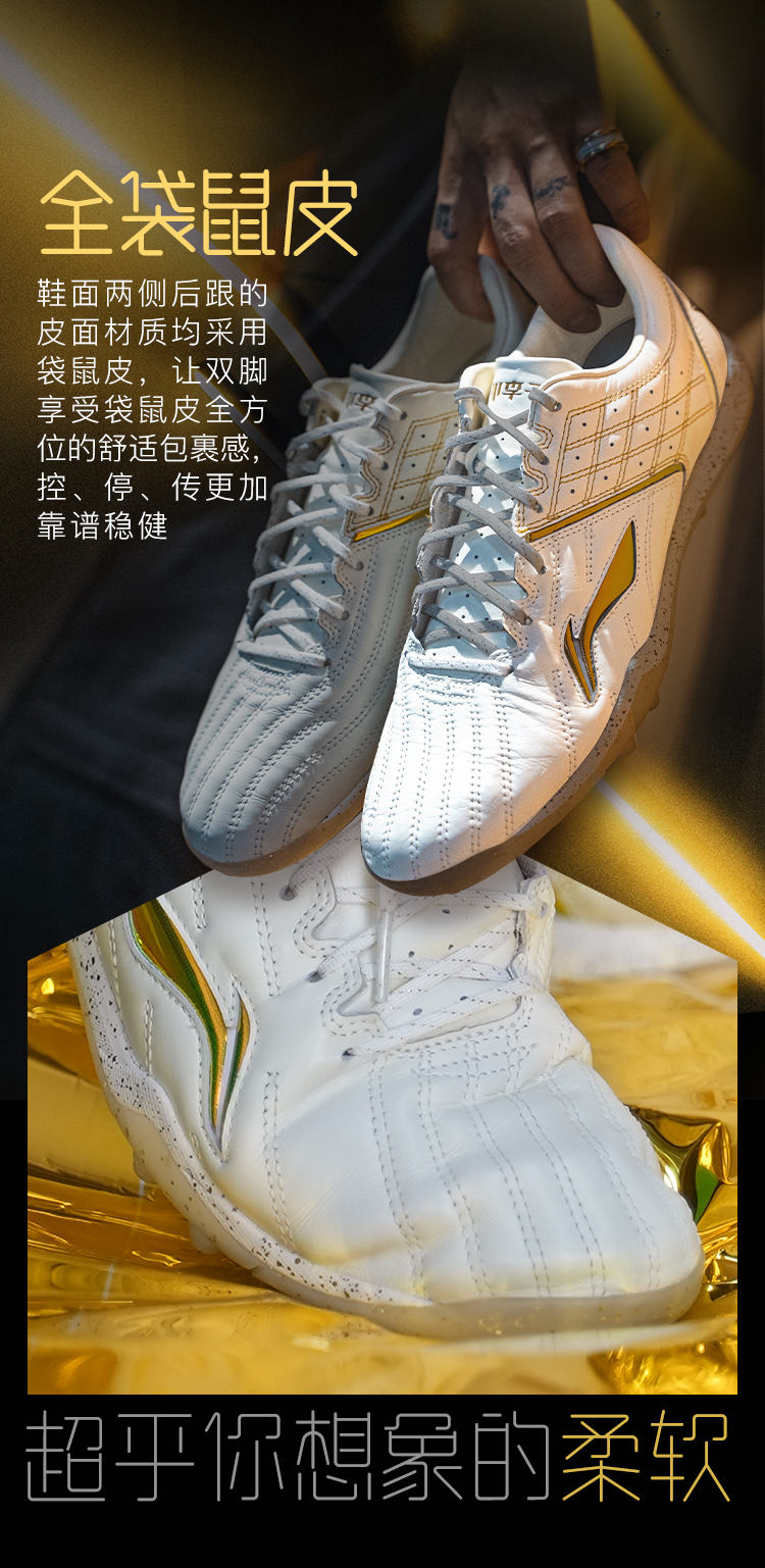 小李子李宁合作款铁系列钰配色高端全袋鼠皮碳板TF碎钉足球鞋男ASTR0231