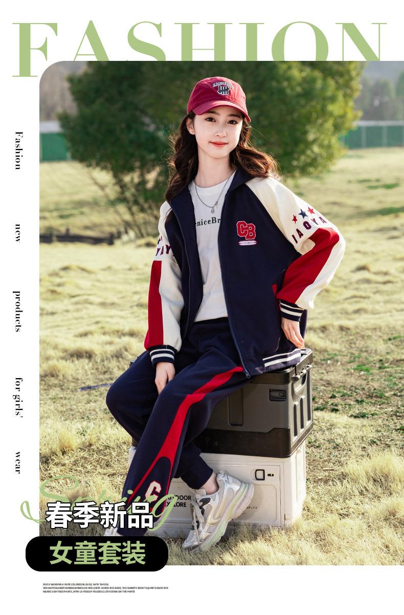 女童春装运动套装洋气中大童2024新款儿童装春秋款休闲针织两件套