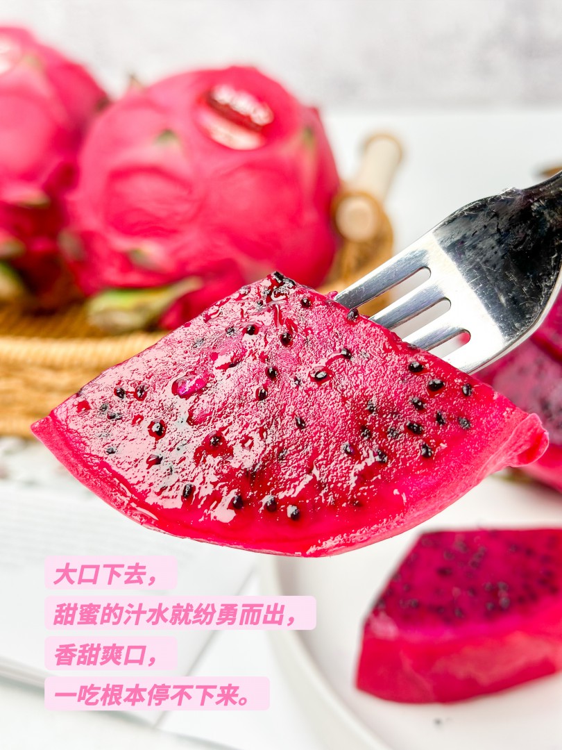 火龙果果酱:将洗净切块的火龙果和白砂糖一起捣成果酱,再加入柠檬,酸酸甜甜的红心火龙果果酱就制成啦,记得要放入冰箱保存哦