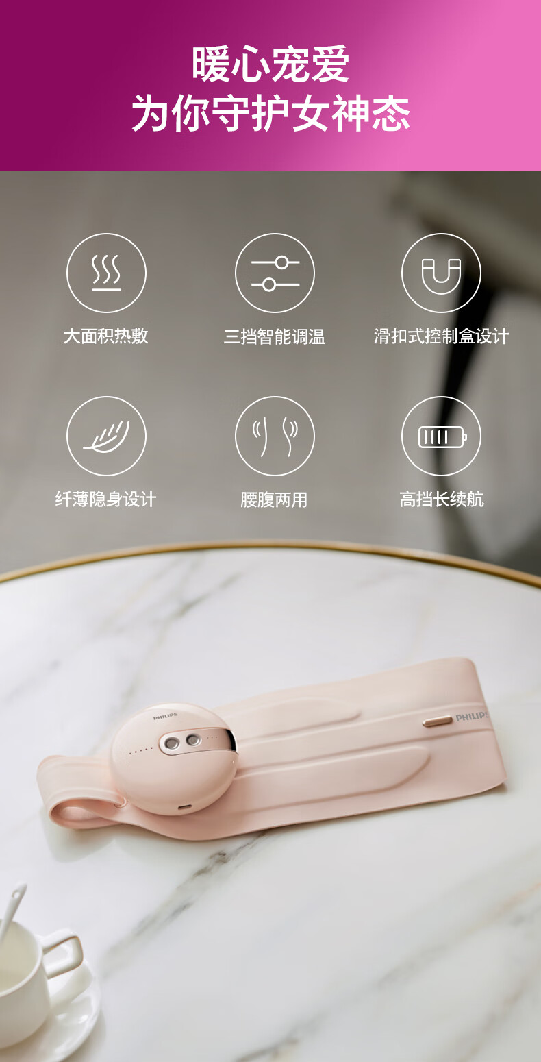 飞利浦(PHILIPS)腰部按摩仪按摩器女生大姨妈神器缓解腰酸保暖暖宫腰带热敷护腰带暖腹仪 生日礼物送女友3205B