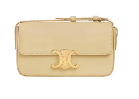 CELINE赛琳 Triomphe 凯旋门金色锁扣肩带可调节 亮面牛皮革 腋下包手提单肩包女款 糖果色/淡黄色