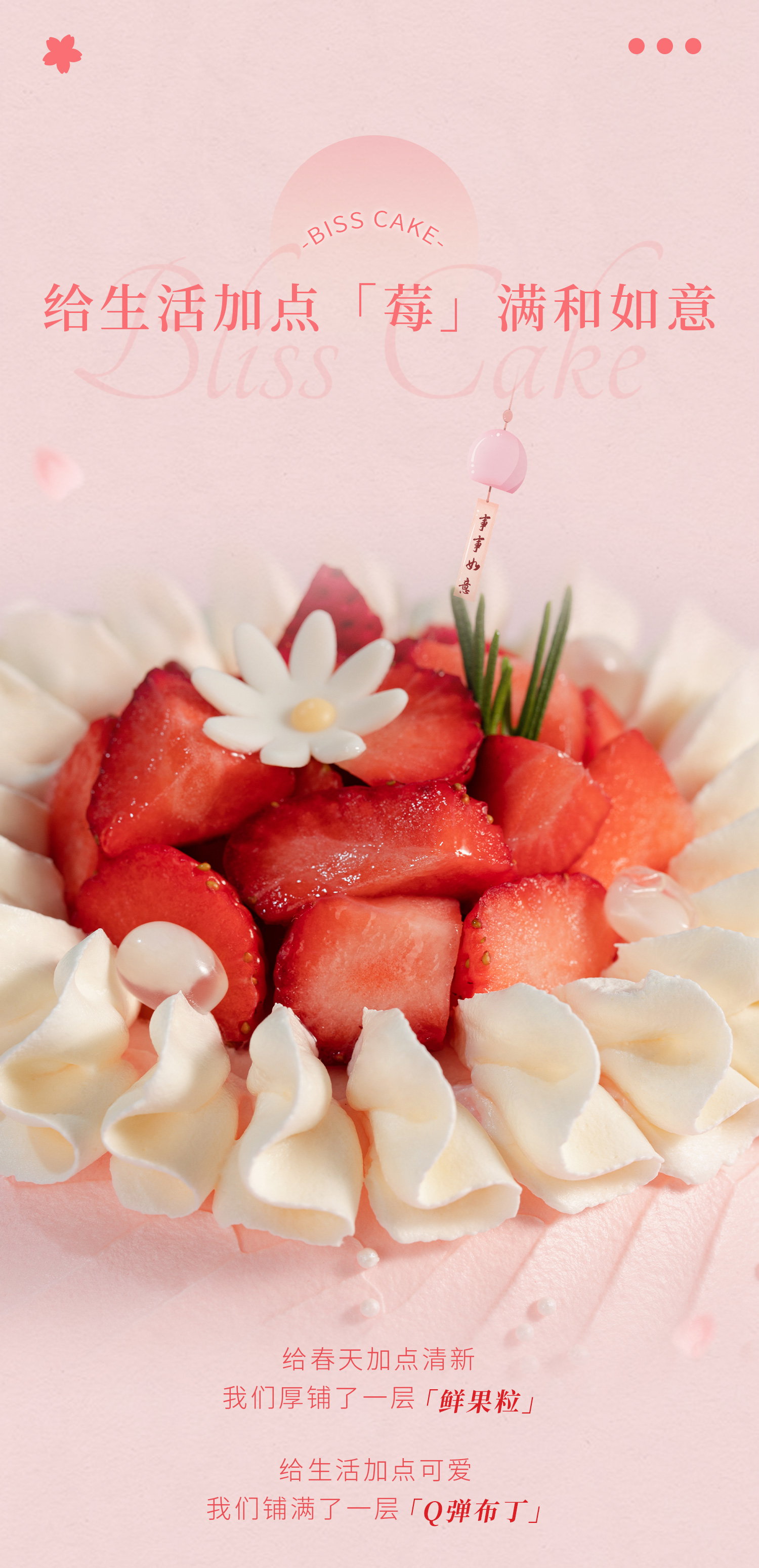 【事事如意】多种清甜鲜果粒搭配上满溢的大块草莓,碰撞出春的清新「莓」满幸福清爽不腻